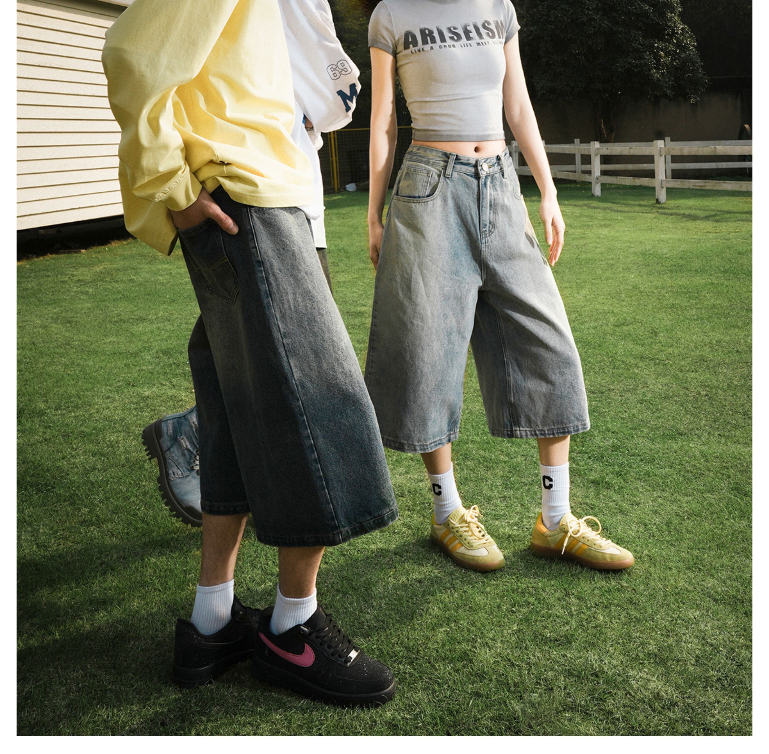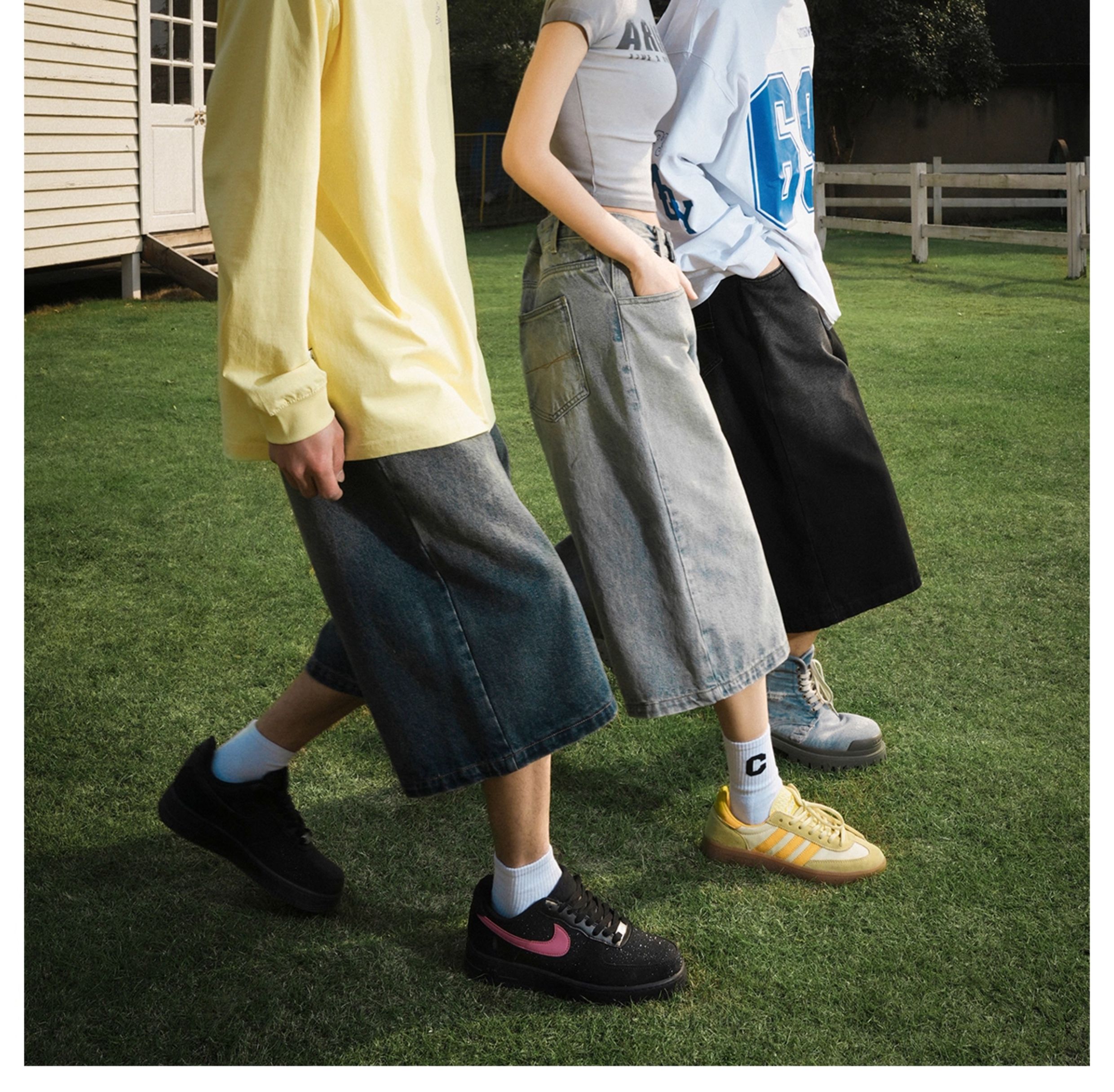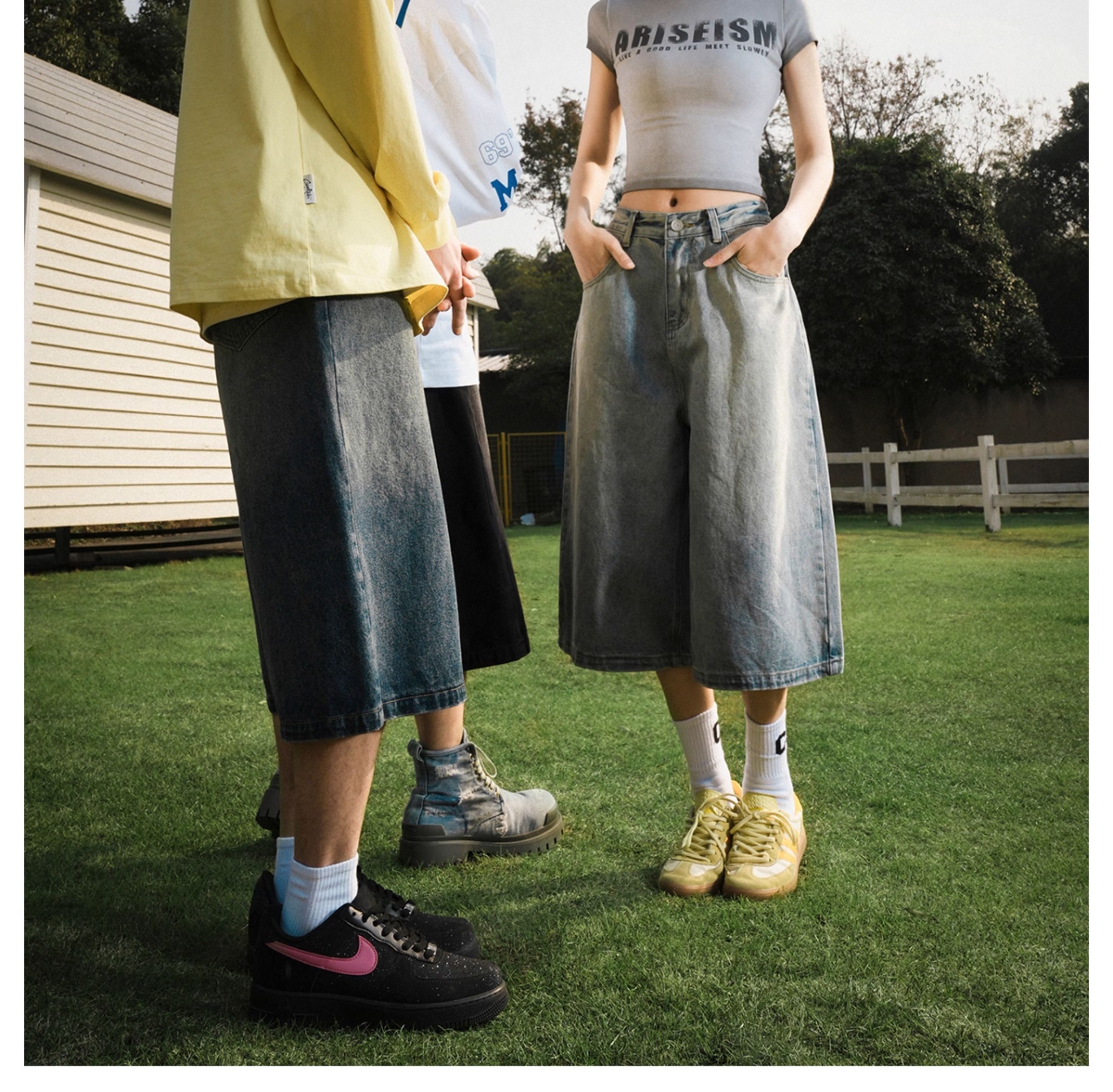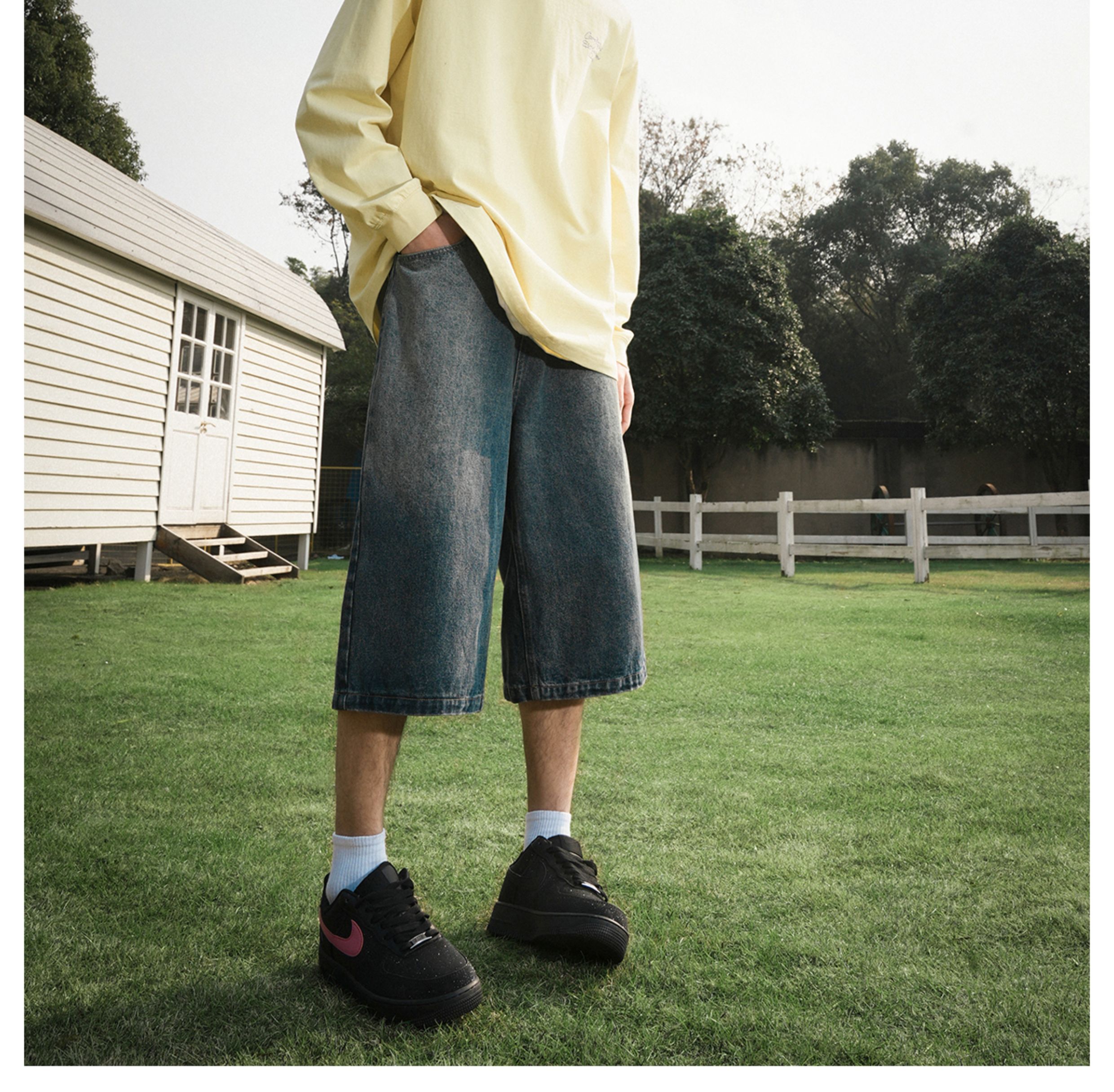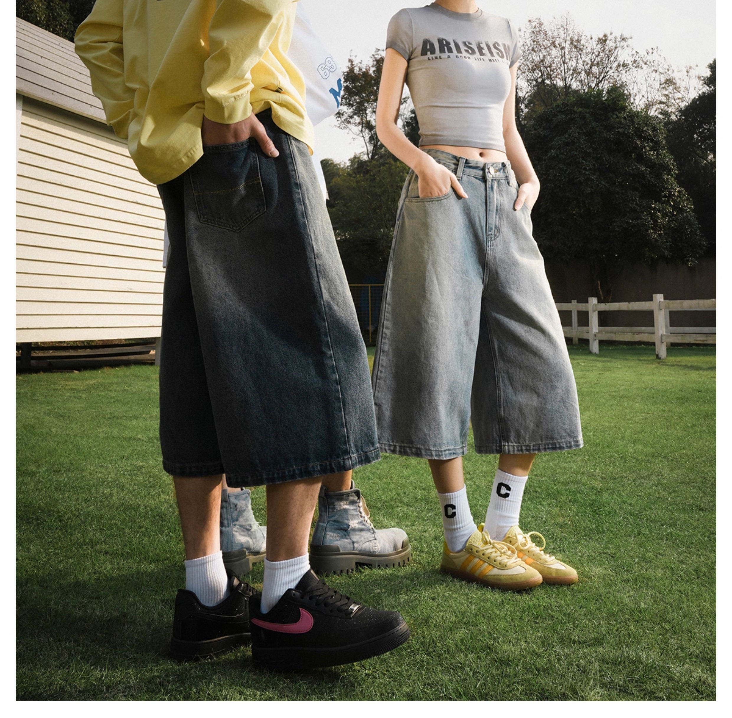Lemanism American-Style Washed Denim Shorts Men's Summer Casual Mid-Length Pants Cropped Pants Trendy Brand Couple Straight-Leg Pants