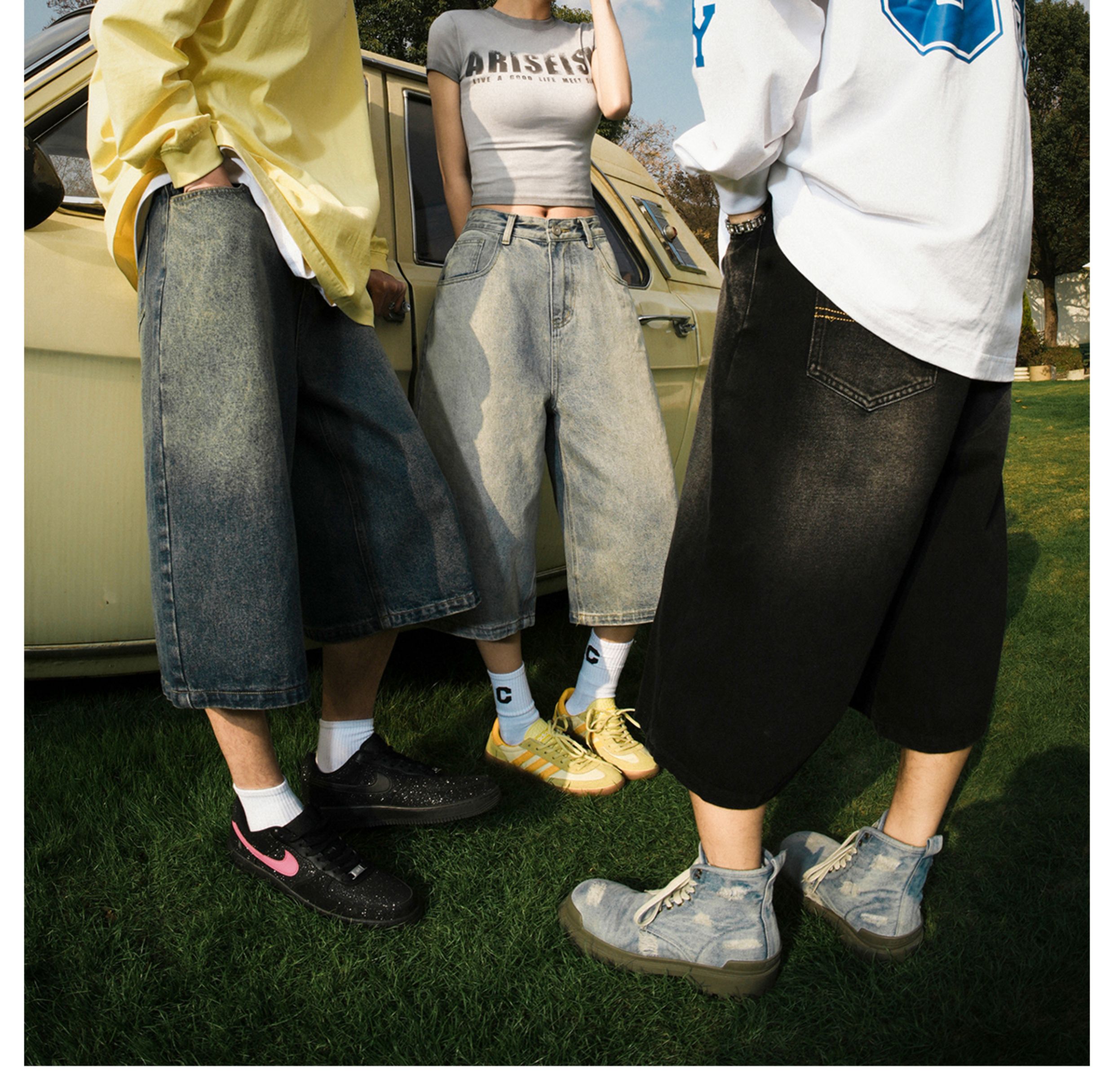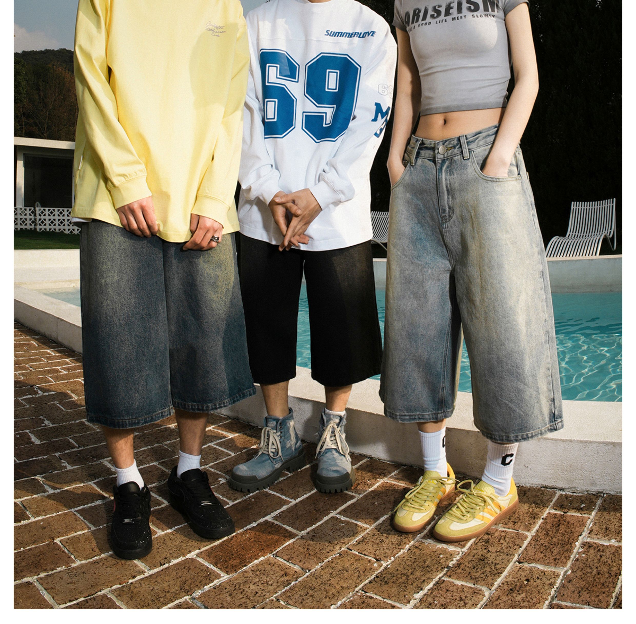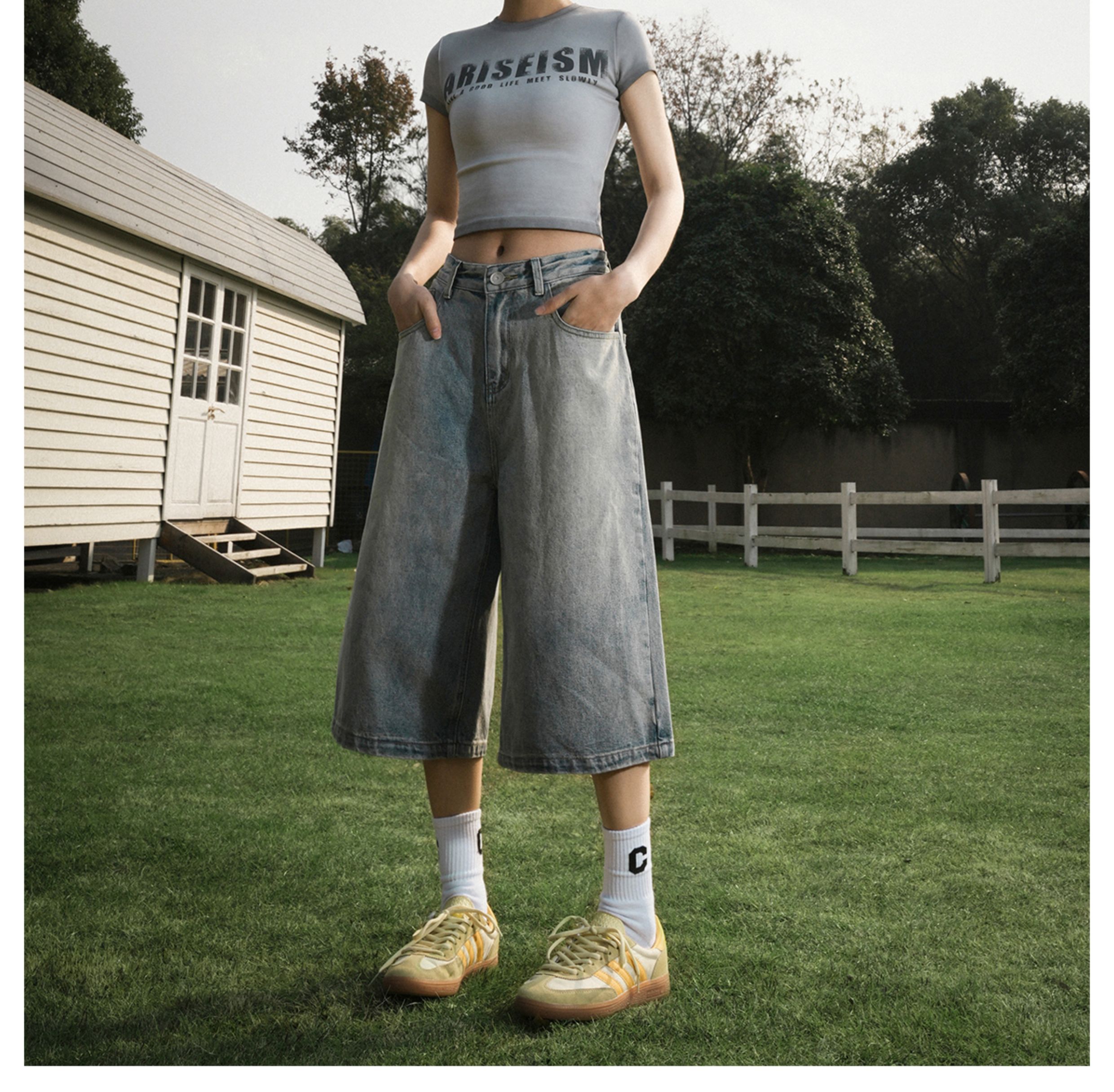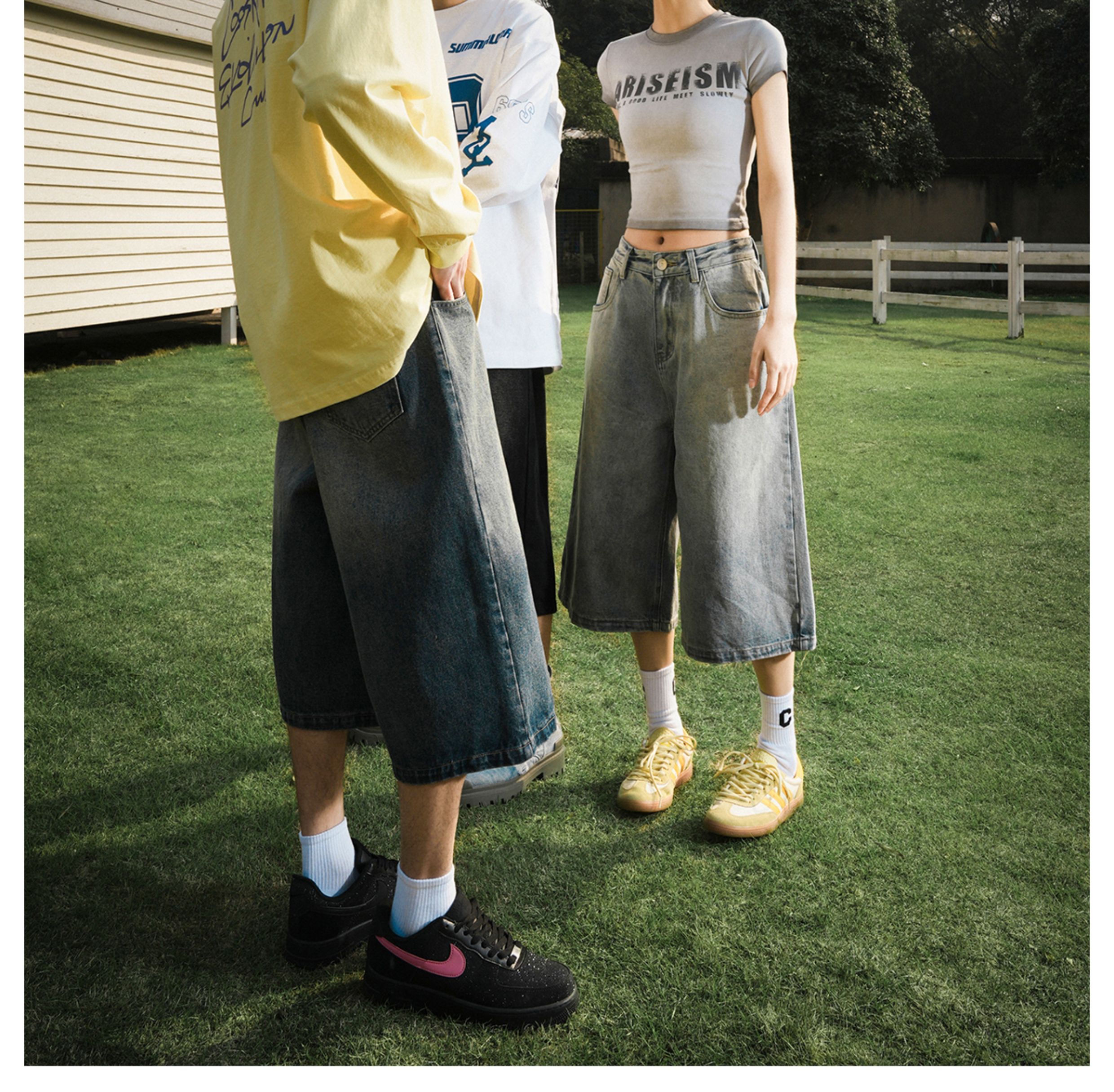 Lemanism American-Style Washed Denim Shorts Men's Summer Casual Mid-Length Pants Cropped Pants Trendy Brand Couple Straight-Leg Pants