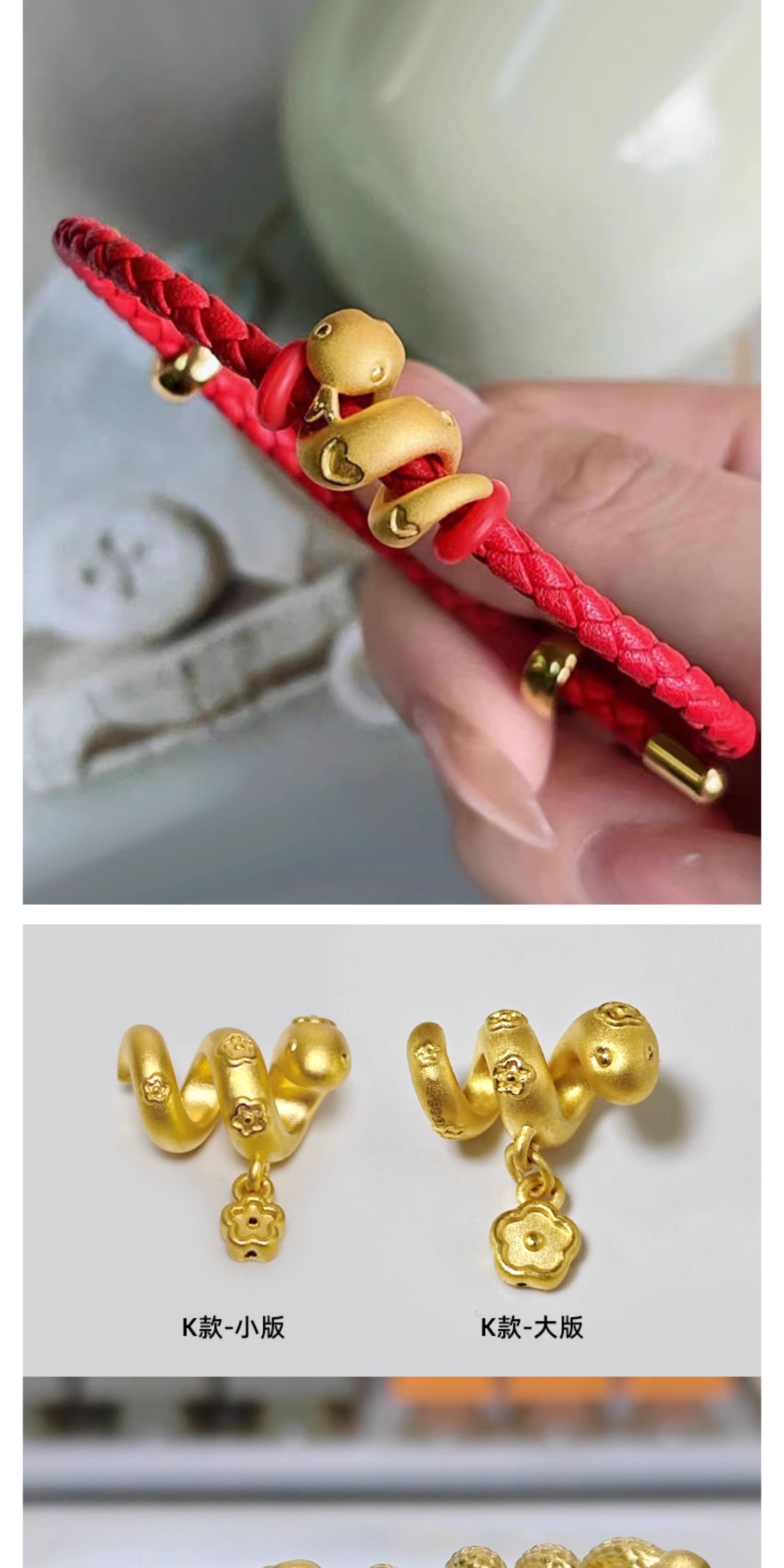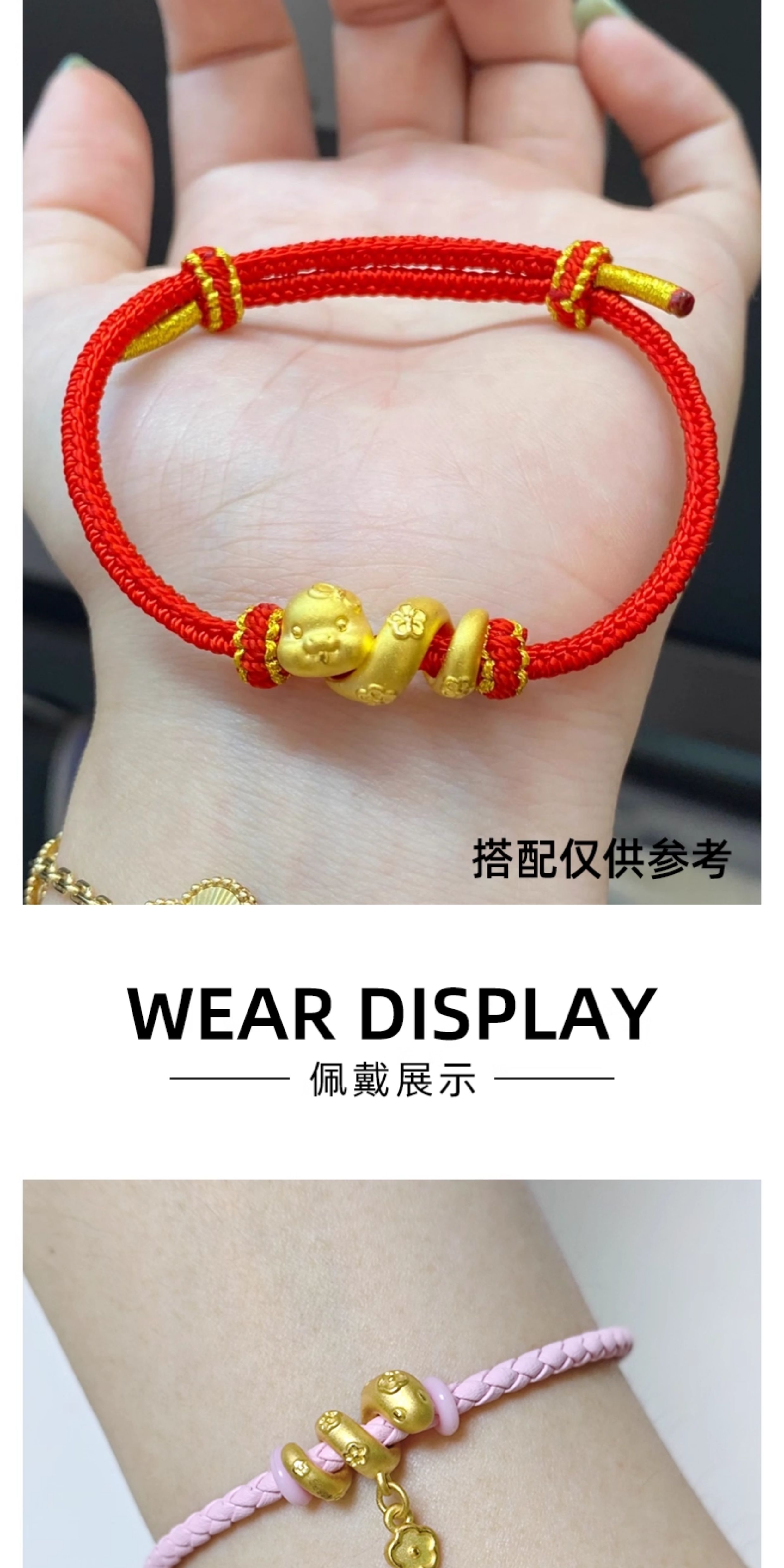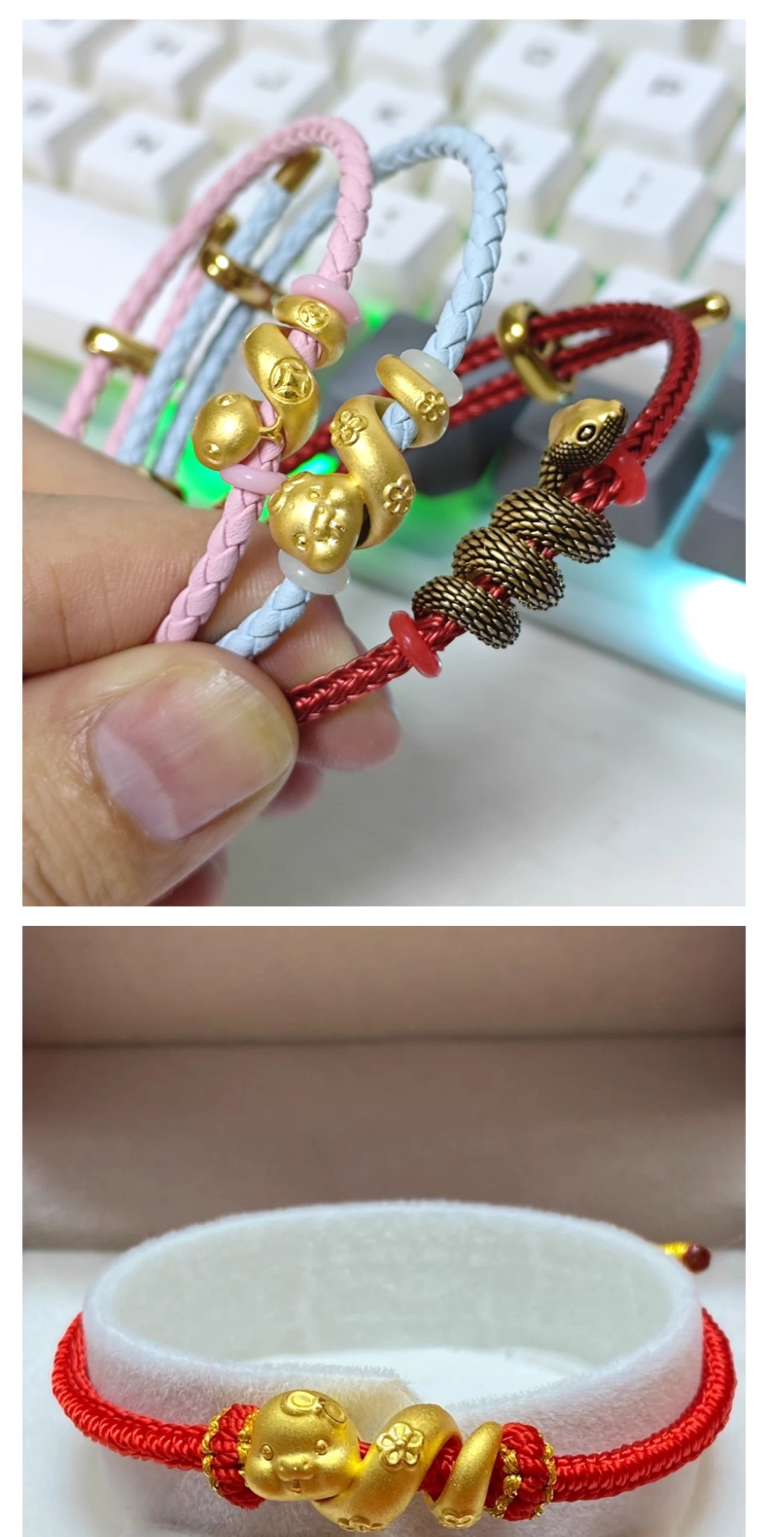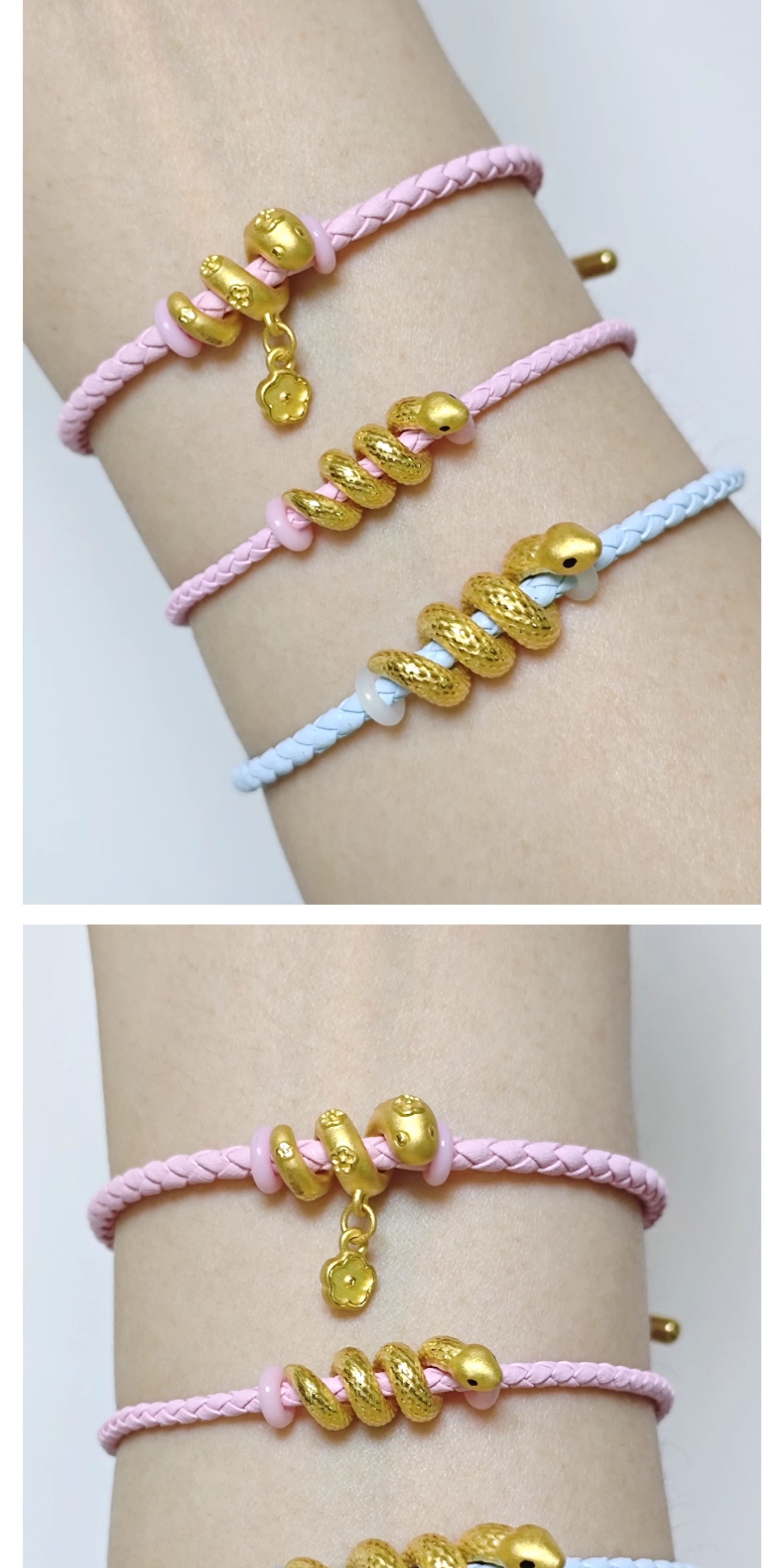 999 Gold Snake Bracelet 3D Hard Gold Fortune Bead String Bead Pure Gold Small Gold Snake Zodiac Year Bracelet for Women