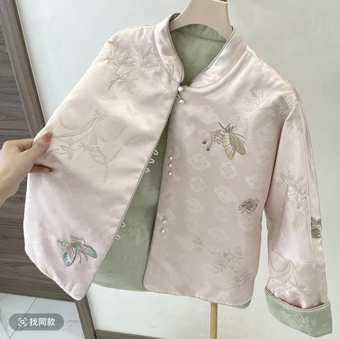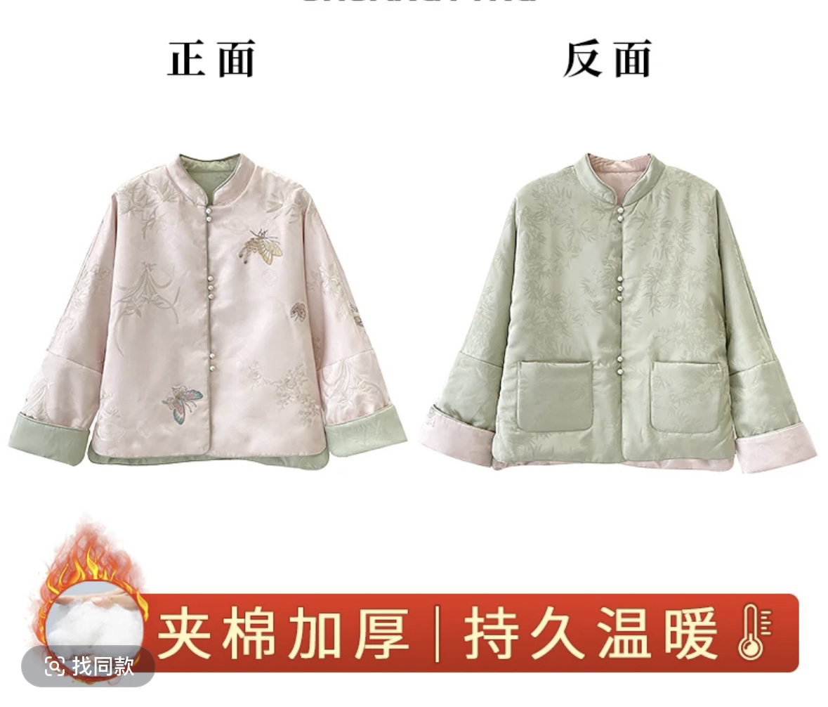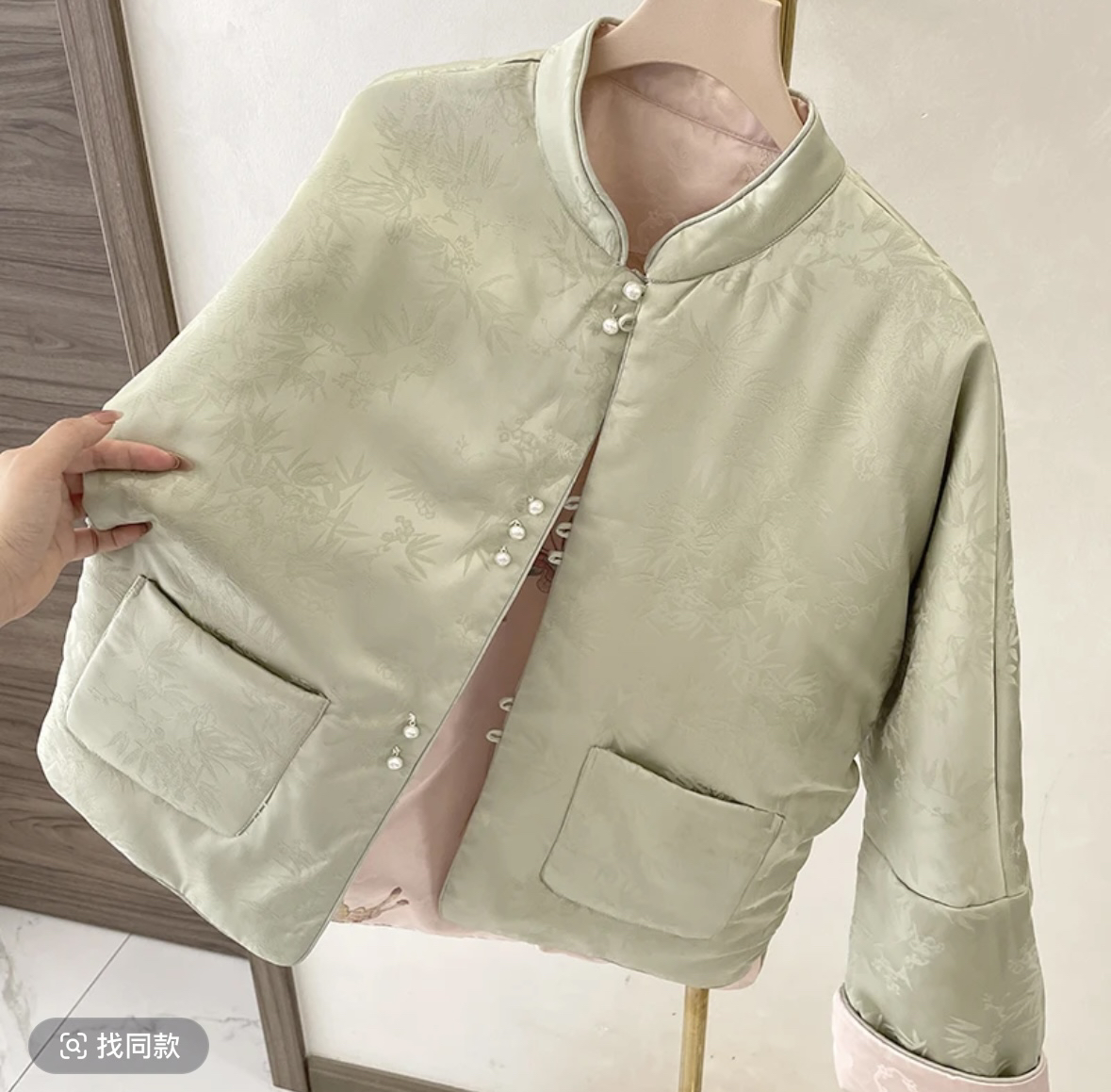Winter Padded and Thickened New Chinese-Style National Wind Top for Women, Loose Stand-Up Collar Jacquard Embroidered Coat, Versatile and Elegant Cotton Clothing