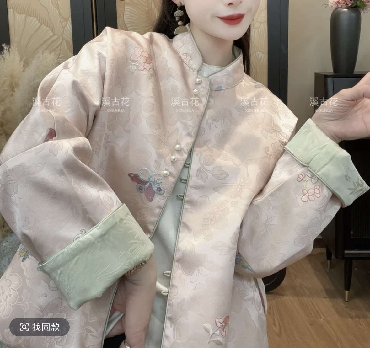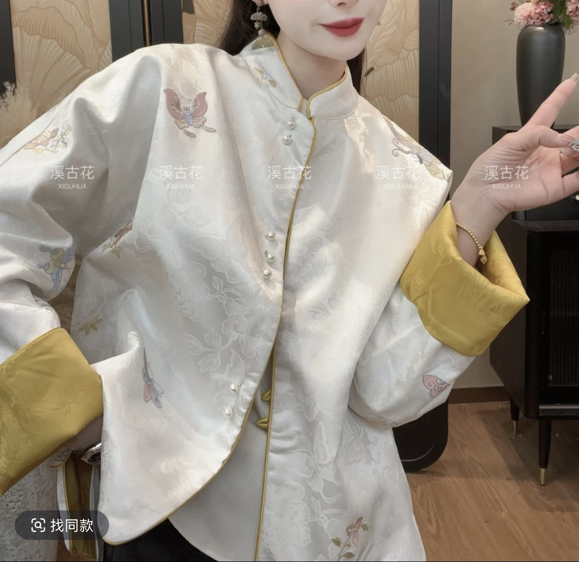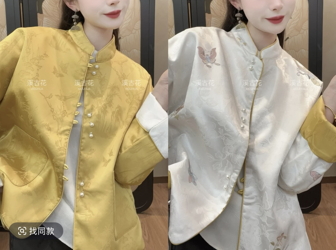 Winter Padded and Thickened New Chinese-Style National Wind Top for Women, Loose Stand-Up Collar Jacquard Embroidered Coat, Versatile and Elegant Cotton Clothing