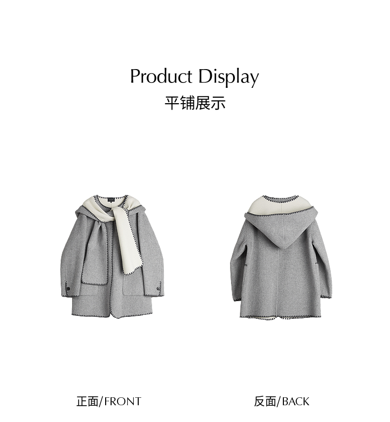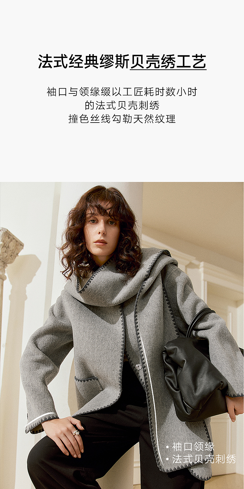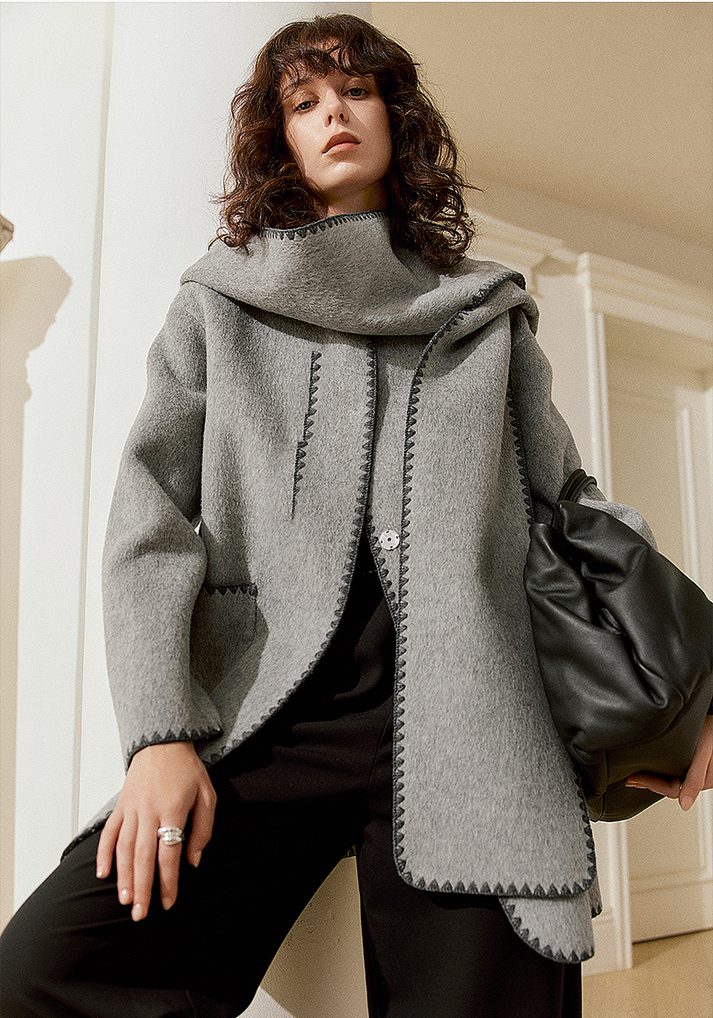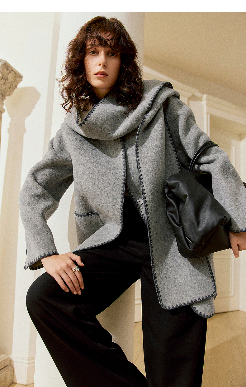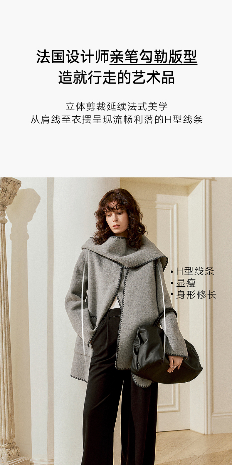 [Paris Series] Elle Gray Sheep Wool Double-Sided Woolen Coat for Women 25 Winter New Soft Woolen Jacket