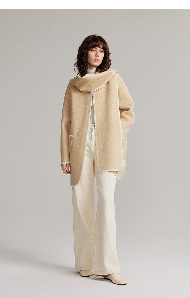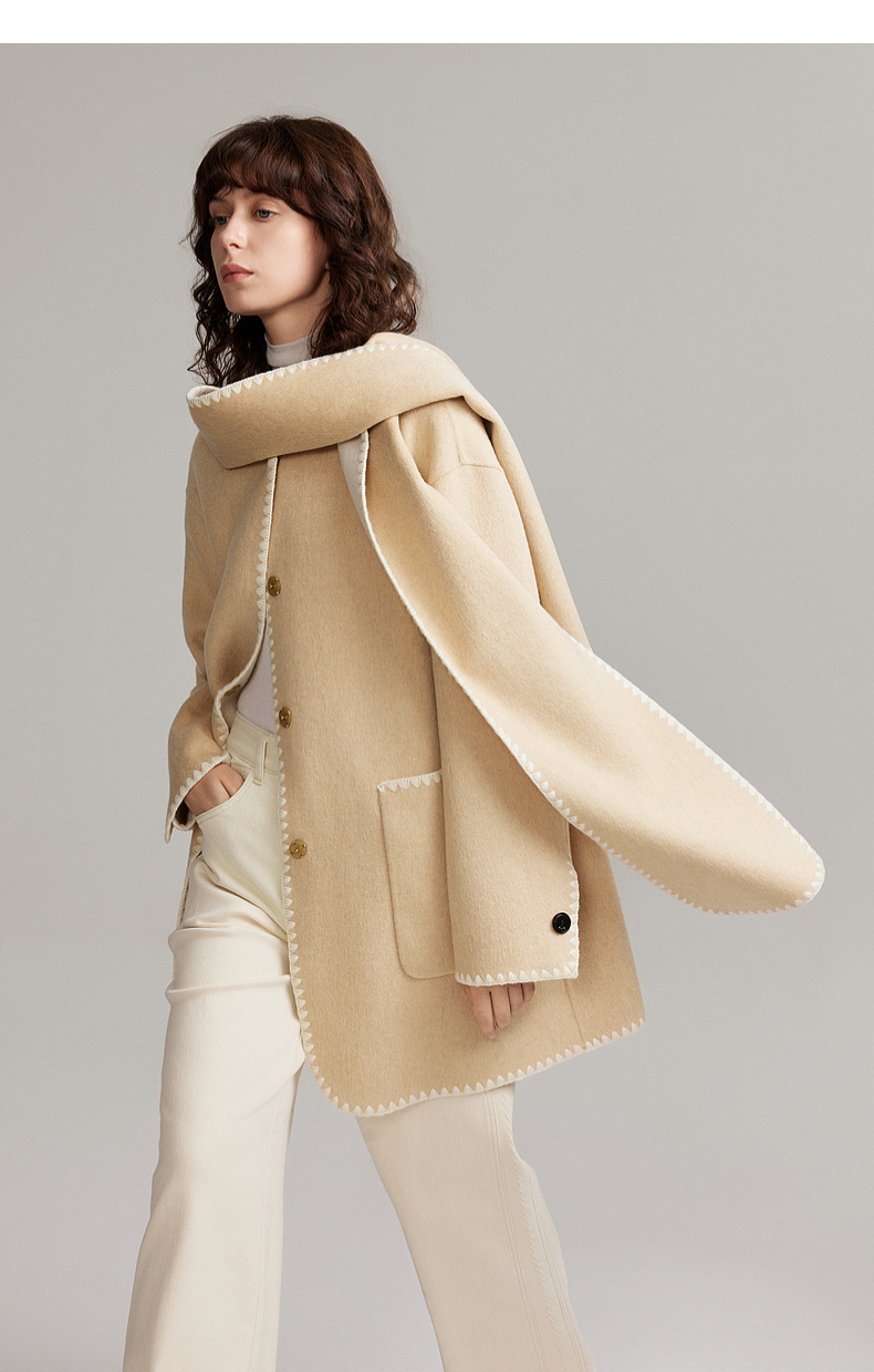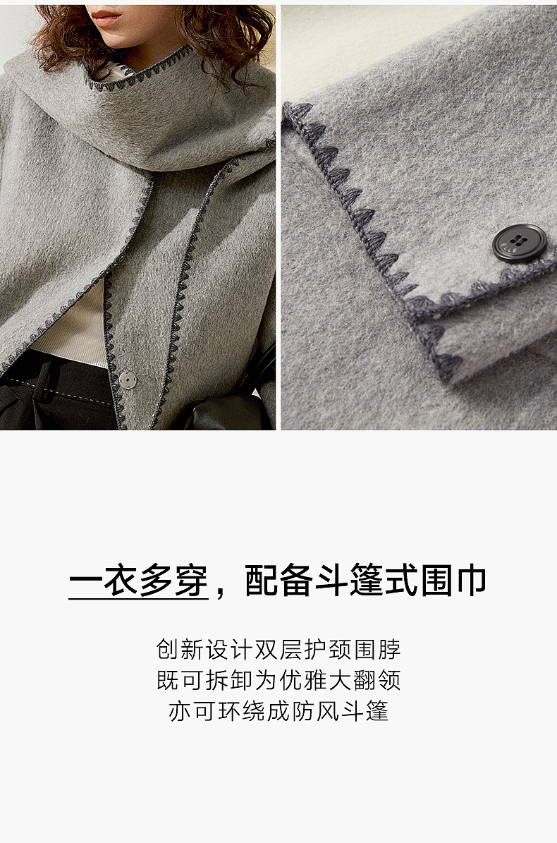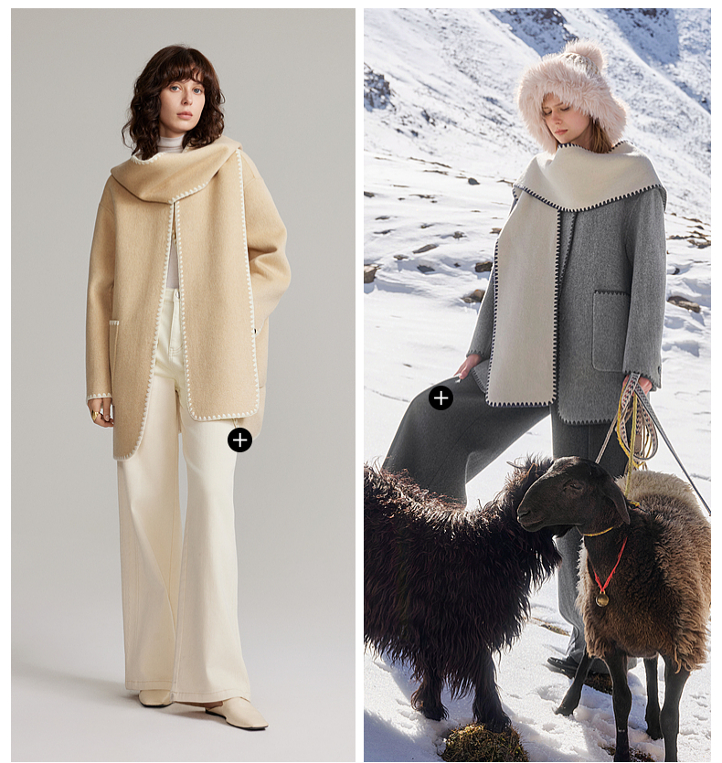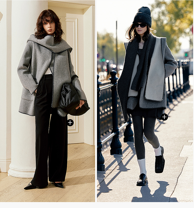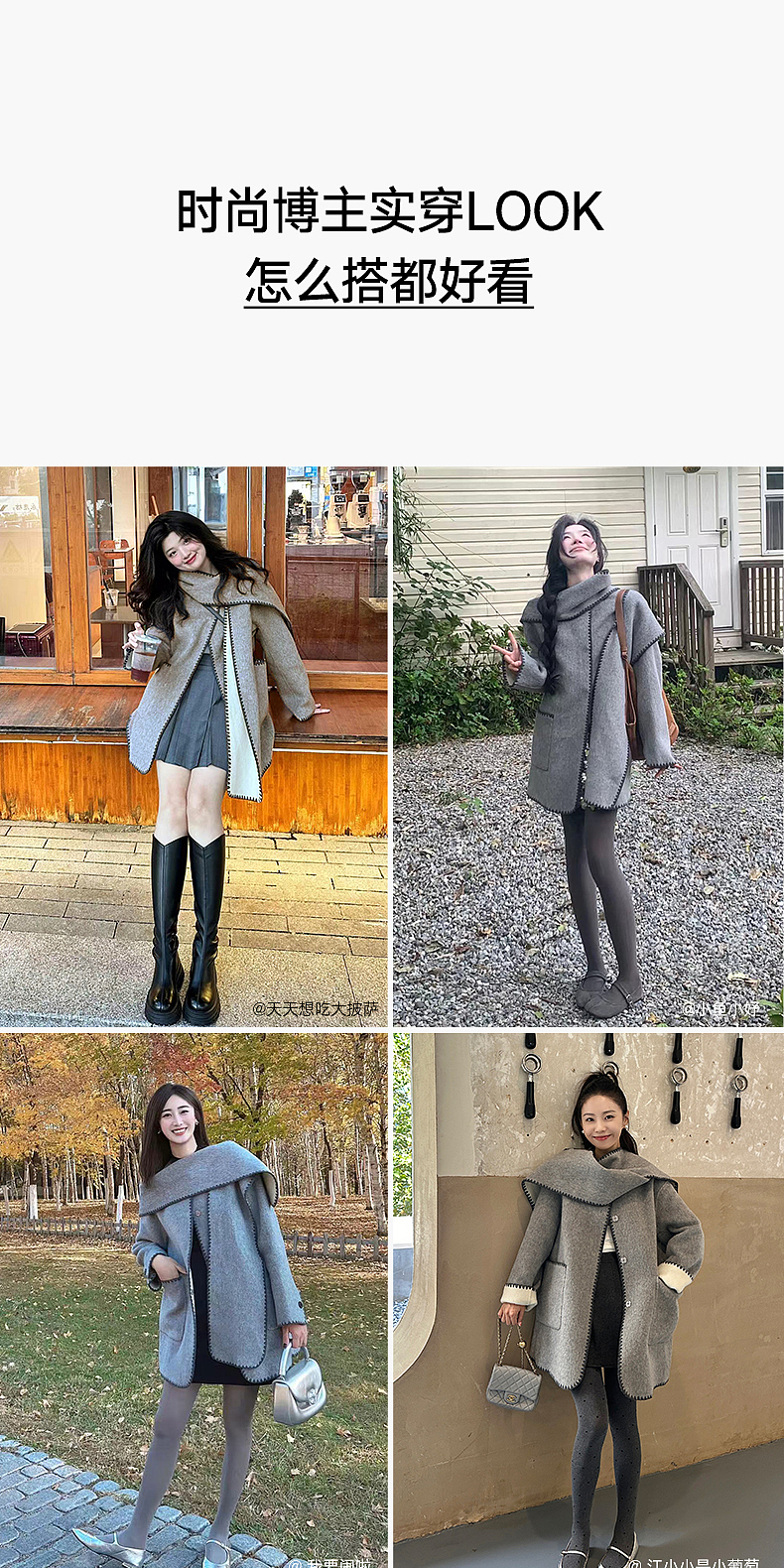 [Paris Series] Elle Gray Sheep Wool Double-Sided Woolen Coat for Women 25 Winter New Soft Woolen Jacket