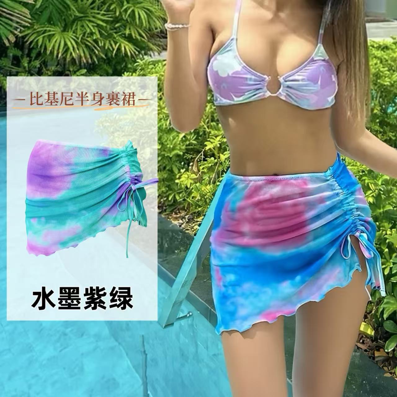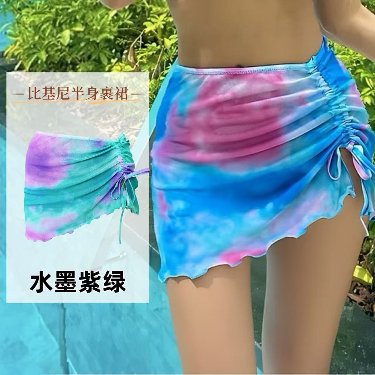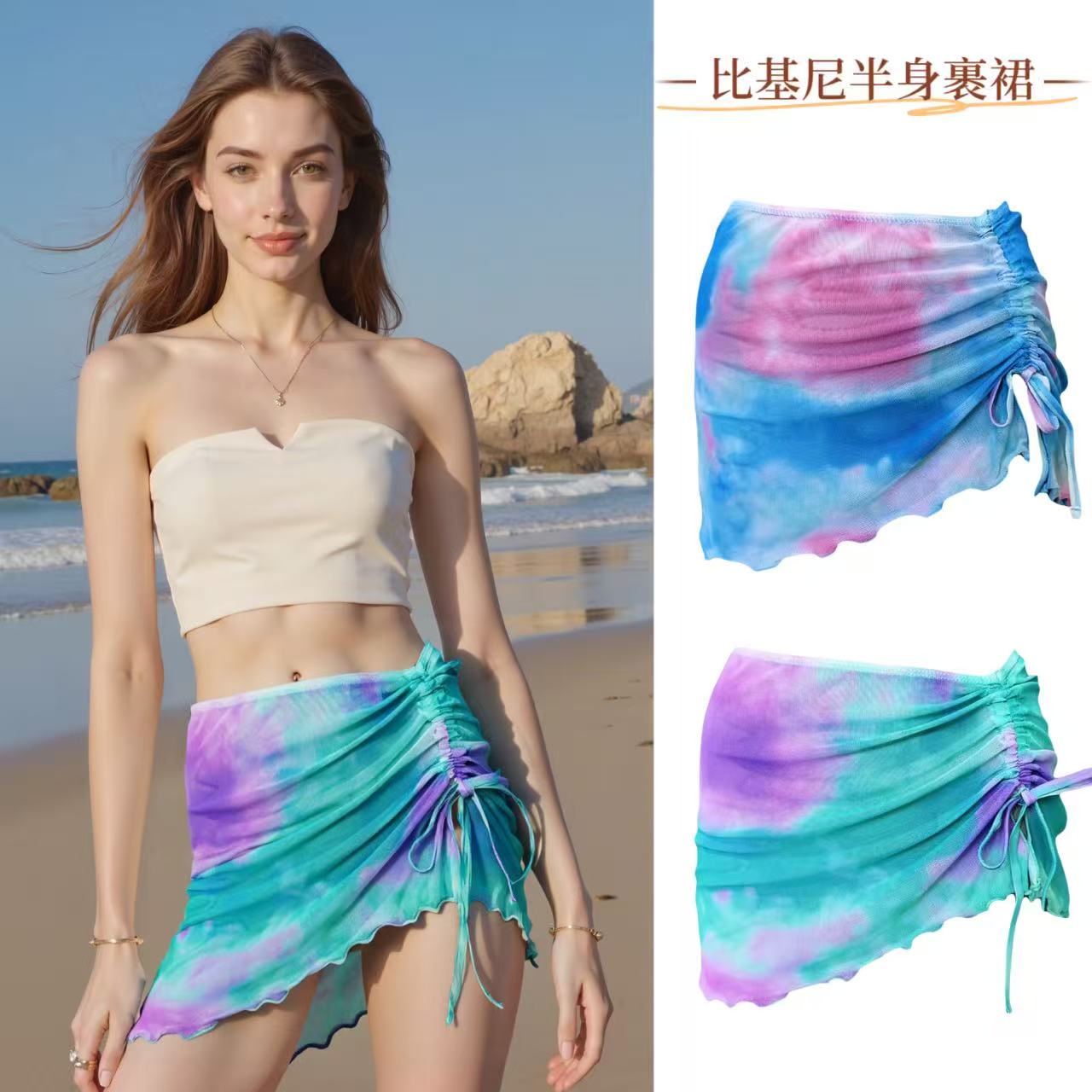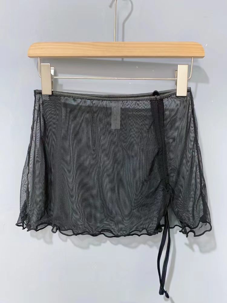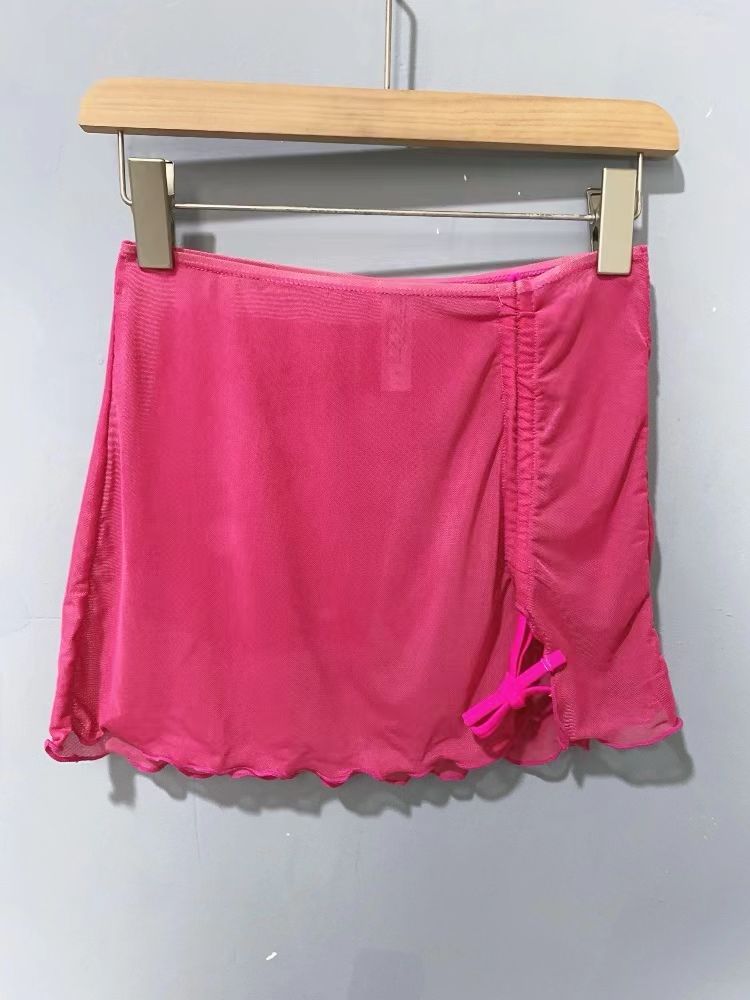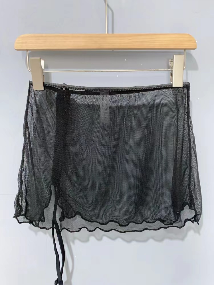 Amber Women's Sexy Mesh See-Through Conservative Sun-Protective Half-Length Swim Skirt Solid Color Tie-Up Skirt Wrap Skirt Pants