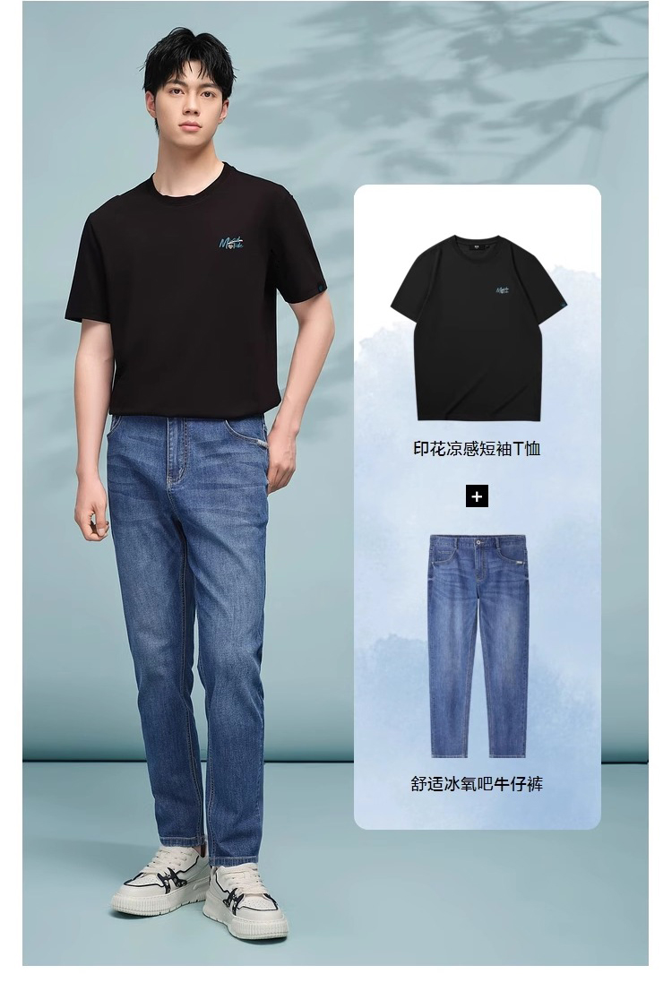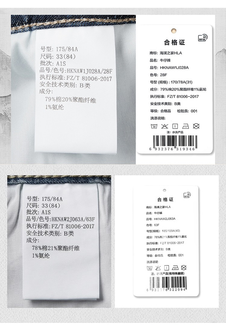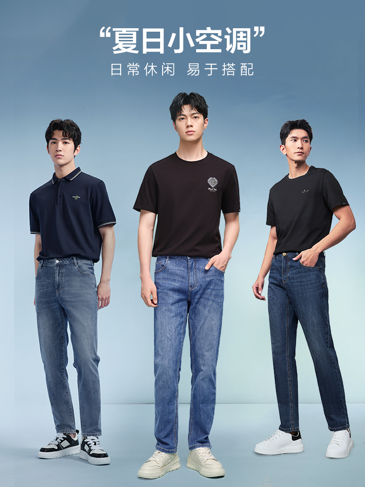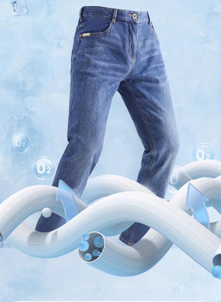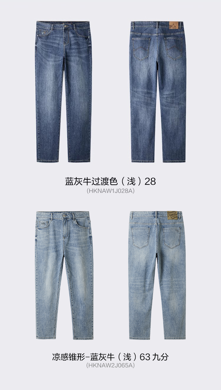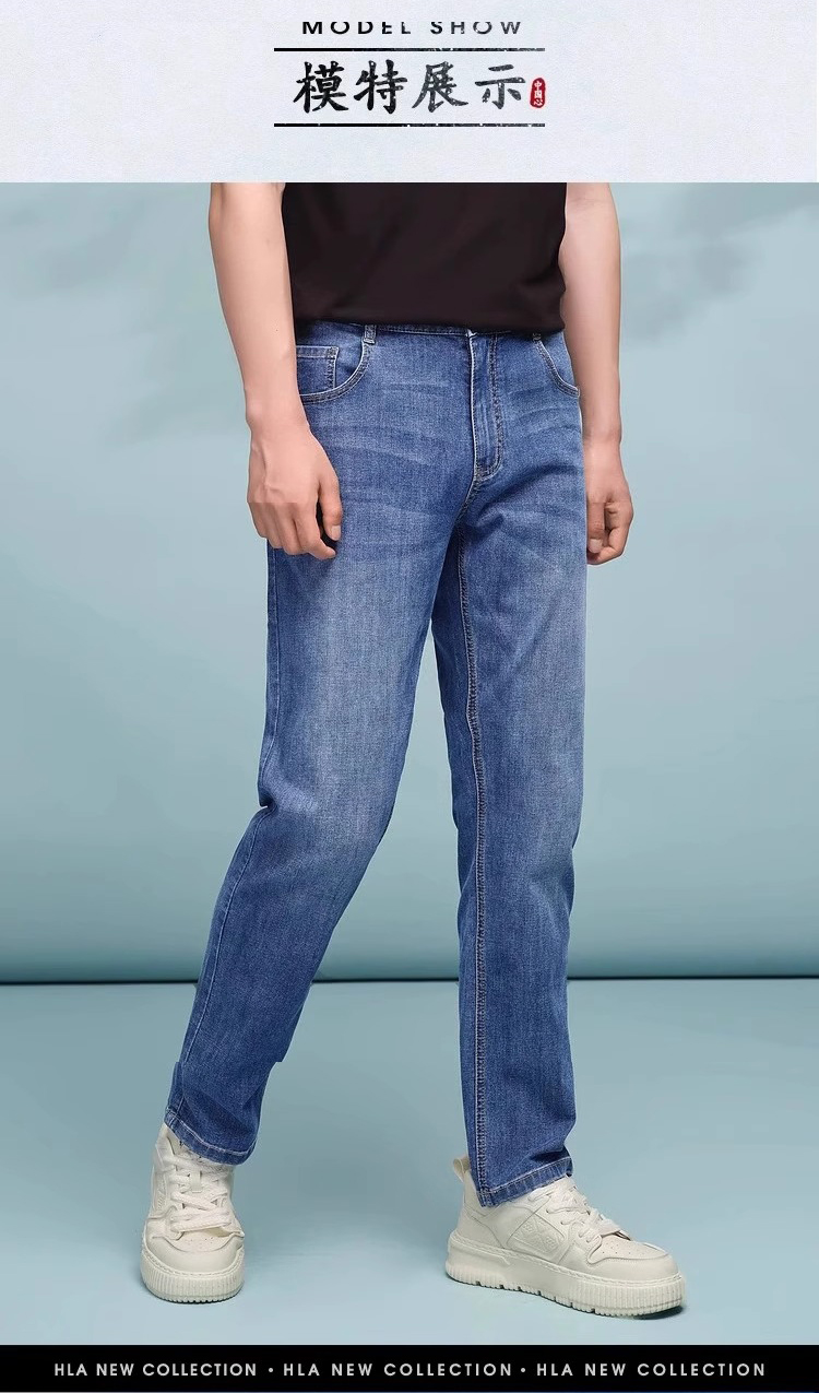 Hla/Hailan House Cool and Lightweight Denim Pants for Spring and Summer, New Micro-Washed, Stretchy, Breathable Casual Pants for Men