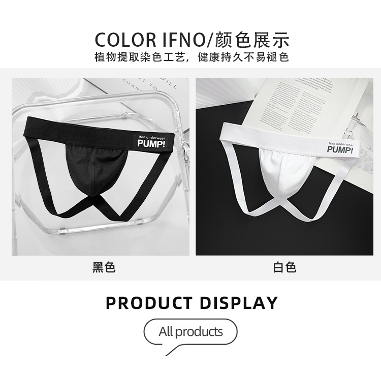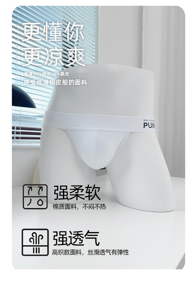 2-Pack Men's Thong Underwear, Low-Rise, Cotton, Sexy U-Convex, Comfortable, Hip-Lifting, Trendy, Solid Color Thong Briefs