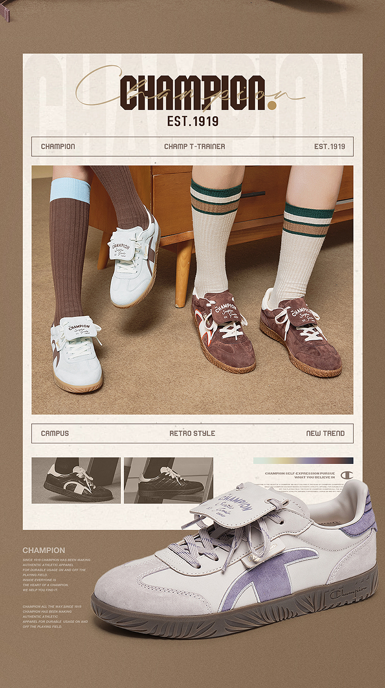Champion Champion Training Shoes 25 Autumn and Winter New Classic Versatile Casual Shoes for Women Commuting Retro Sneakers for Men