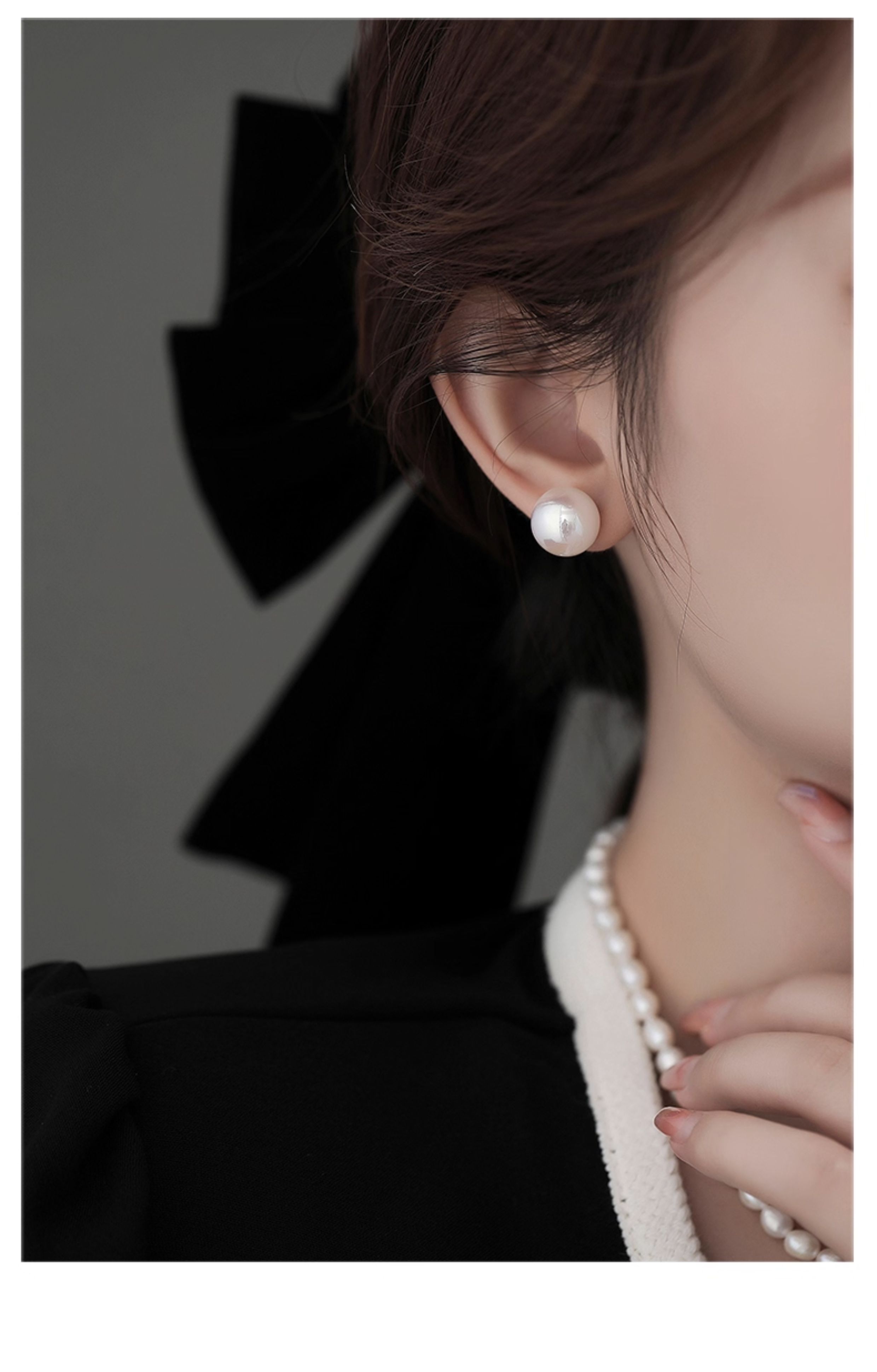 Korean Fever-Style Shijia Pearl Earrings for Women, 999 Pure Silver, Socialite Australian White Cultured Earrings, Popular Ear Accessories