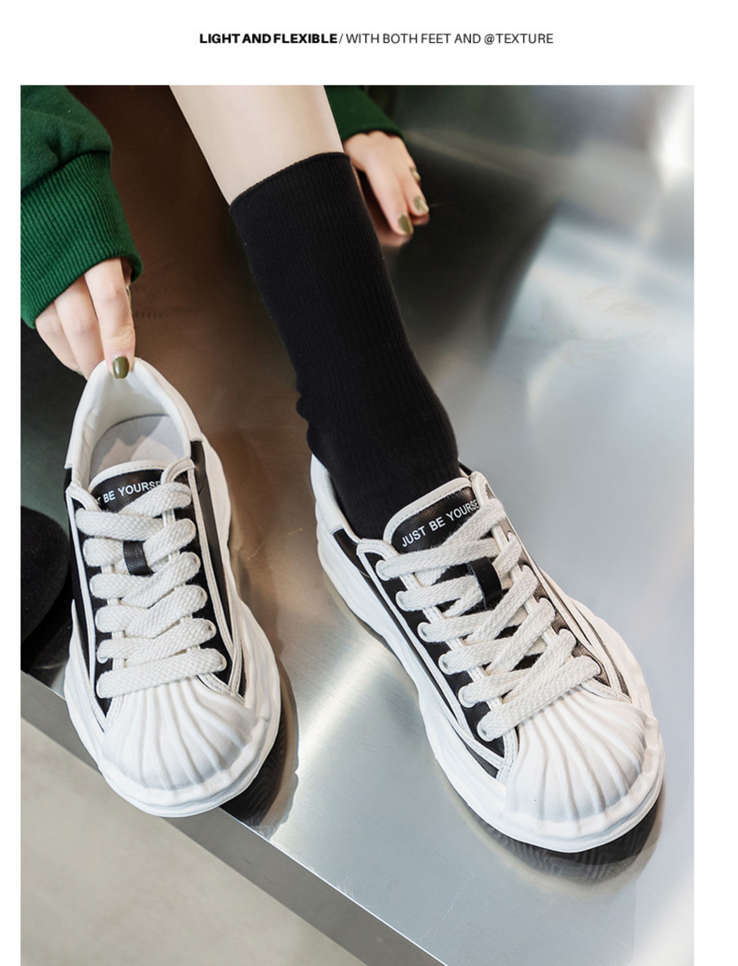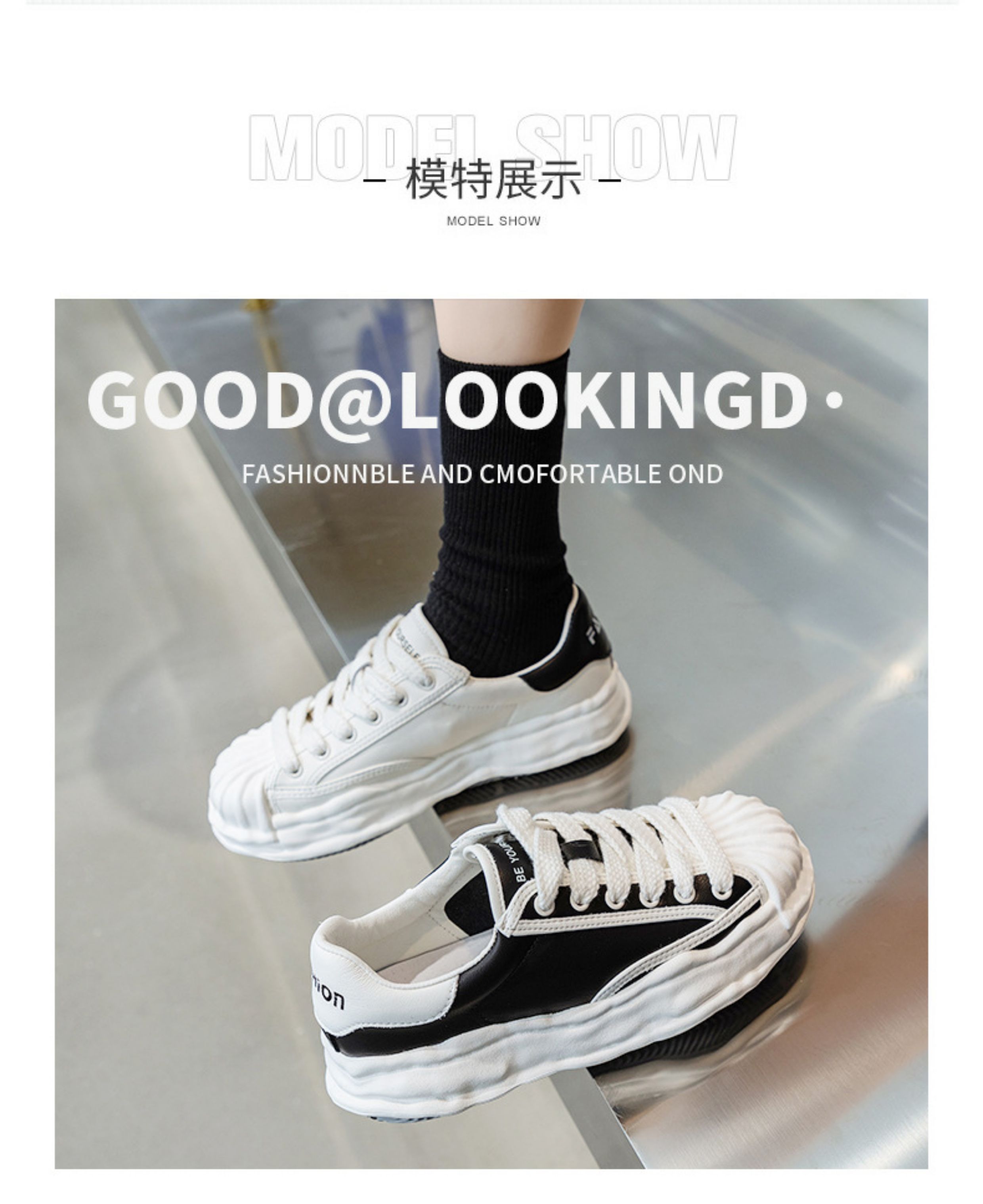 Hong Kong White Sneakers for Women, Thick-Soled Platform Shoes, ins Internet Celebrity Design, Genuine Leather, 2025 Spring Casual Sports Sneakers for Women
