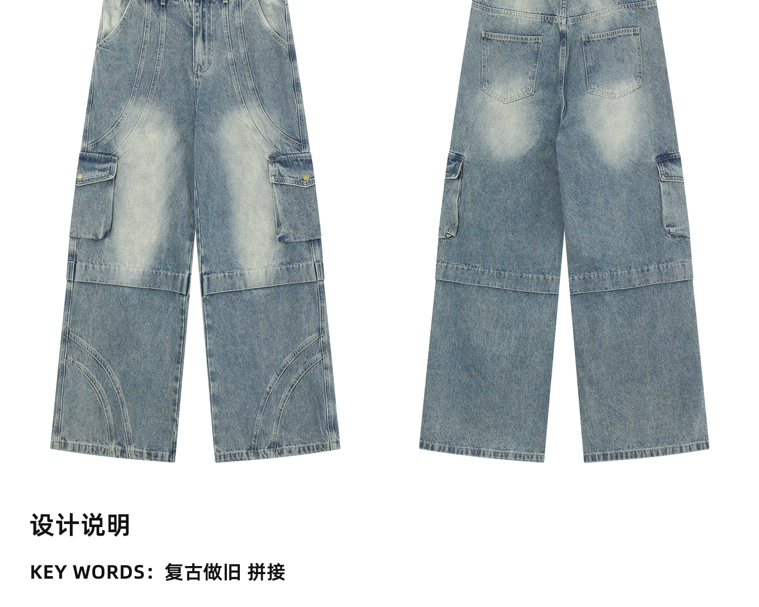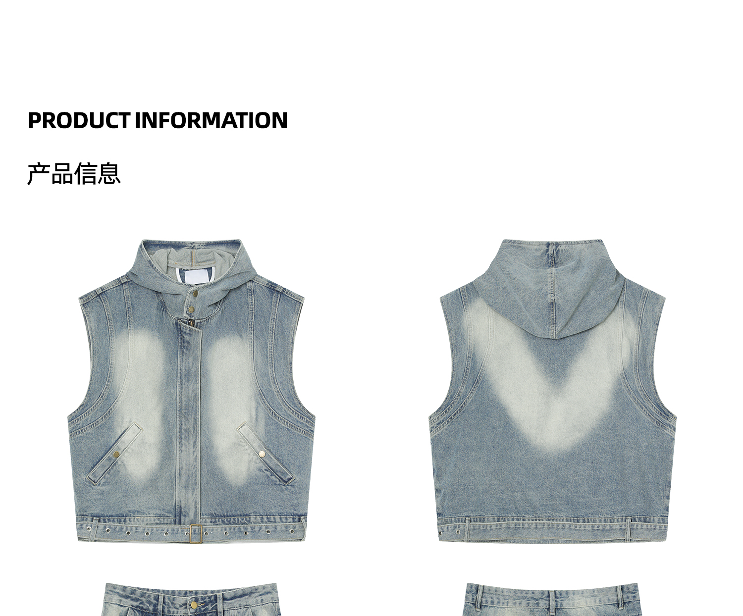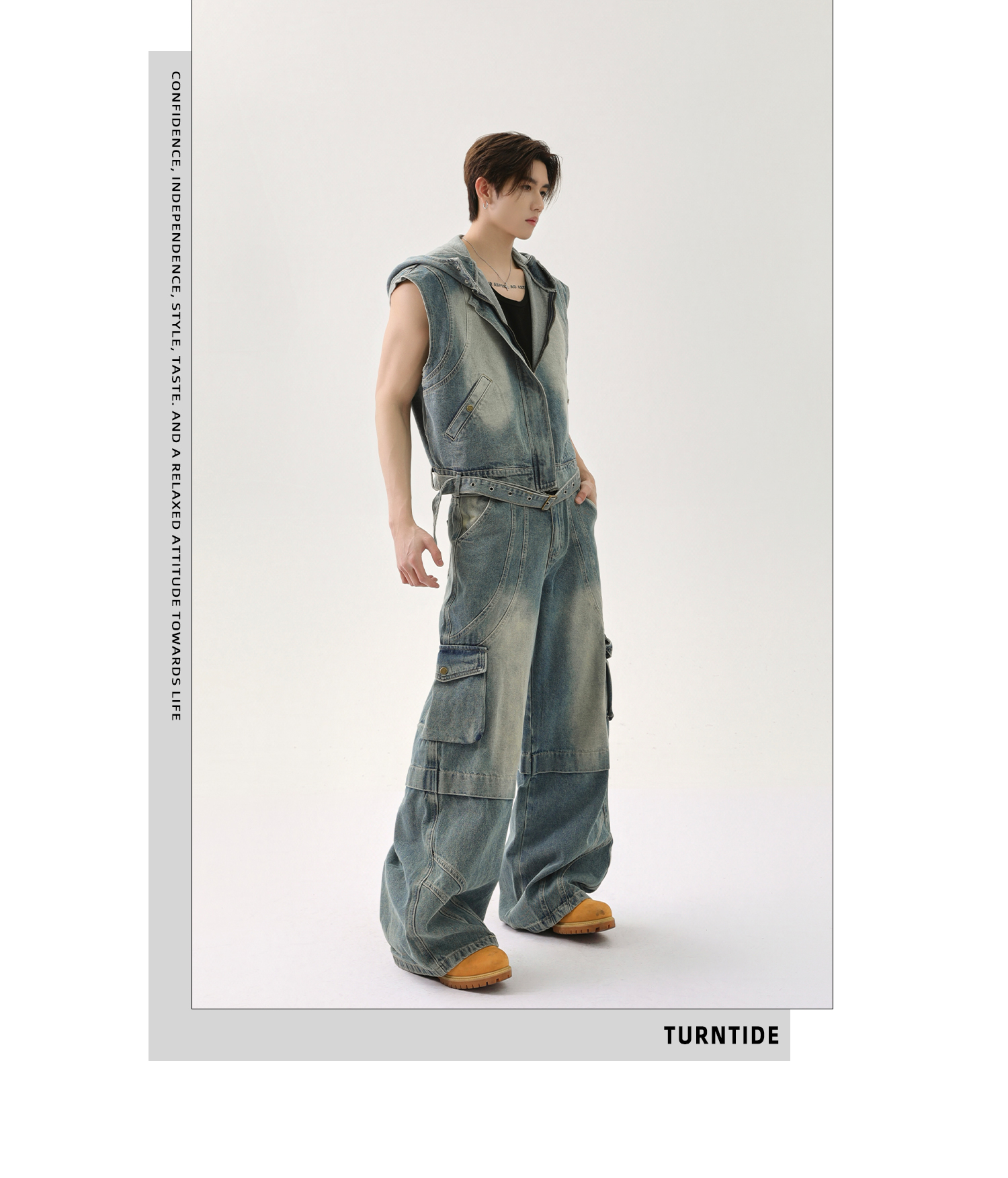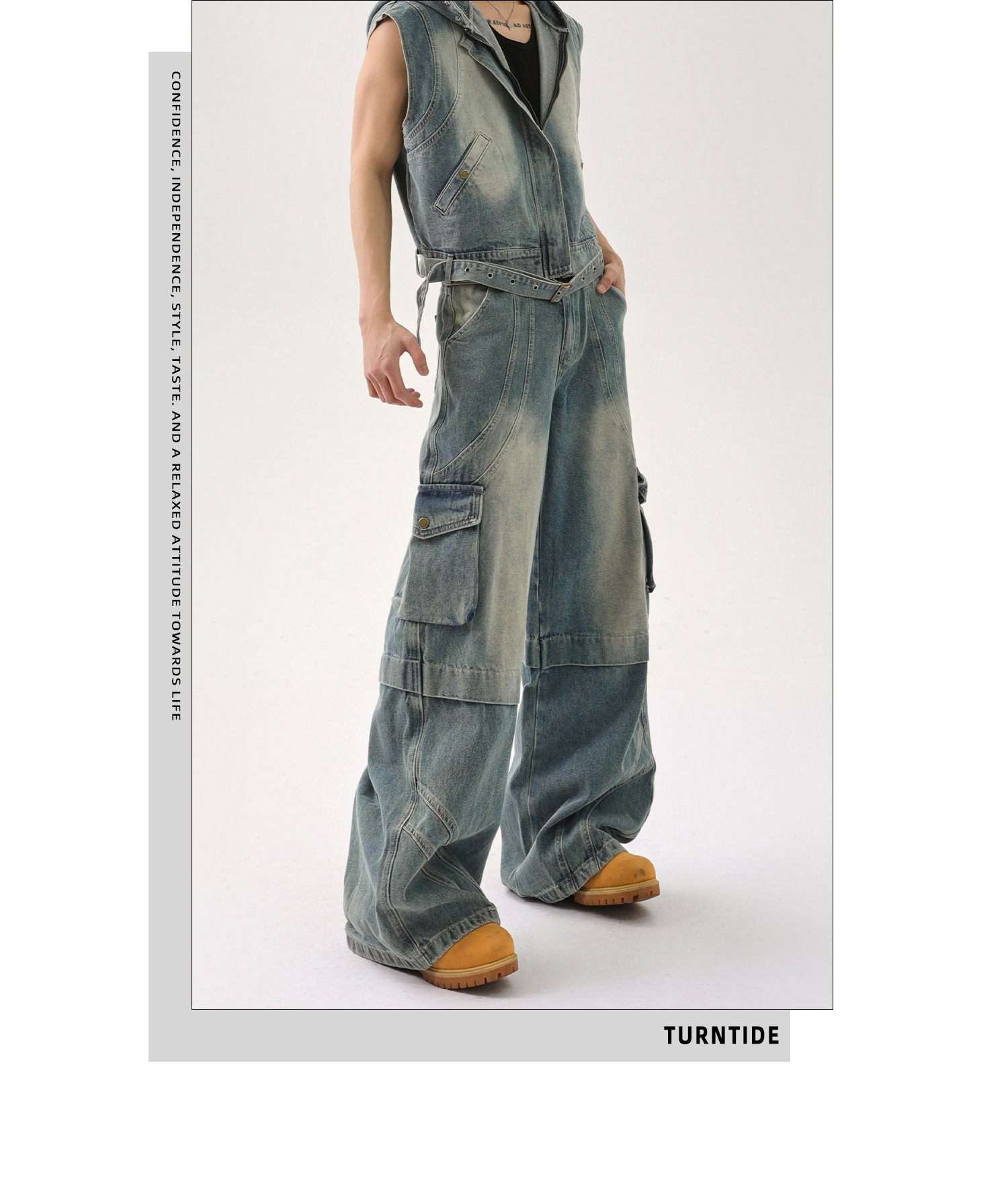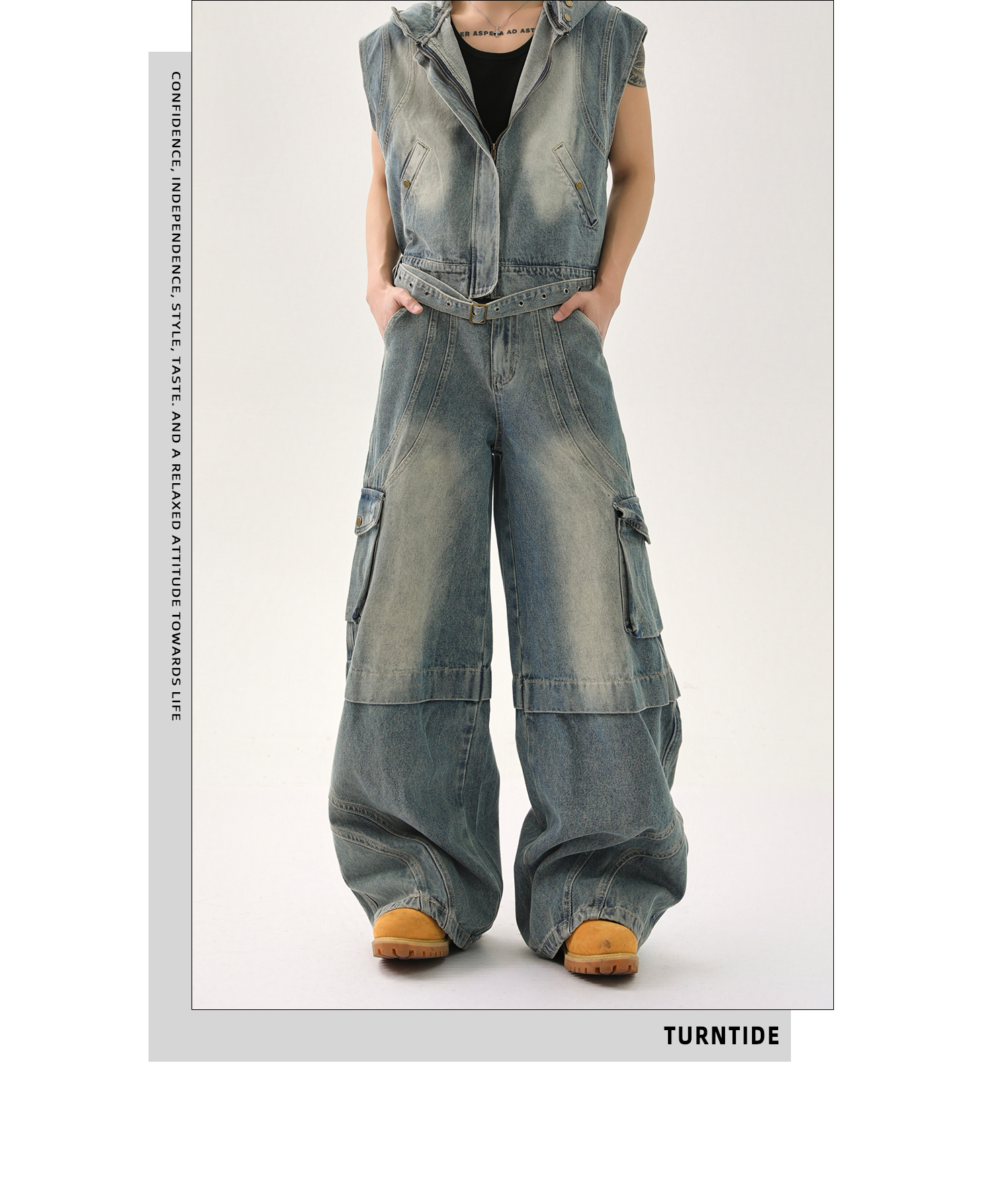 Turntide American Retro Distressed Denim Sleeveless Vest Jacket Versatile Patchwork Long Pants Casual Suit