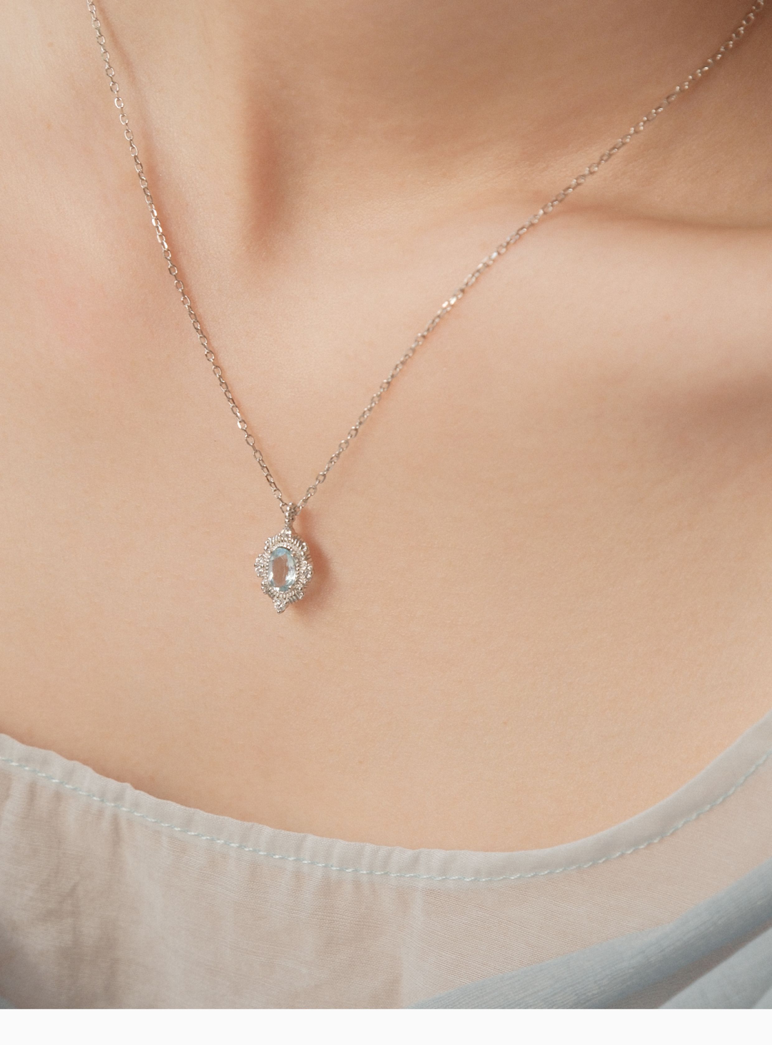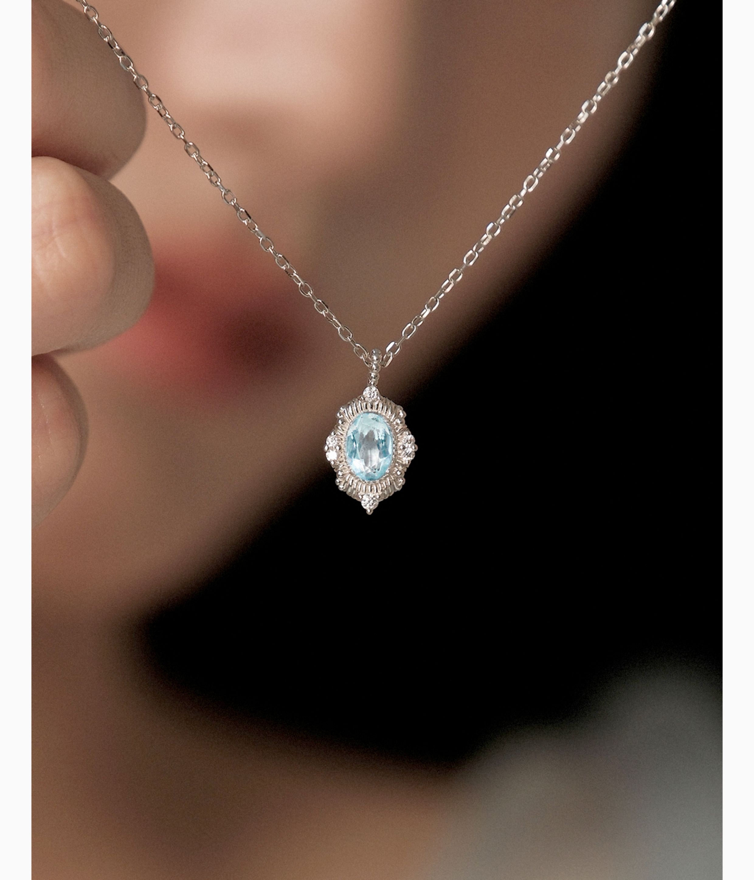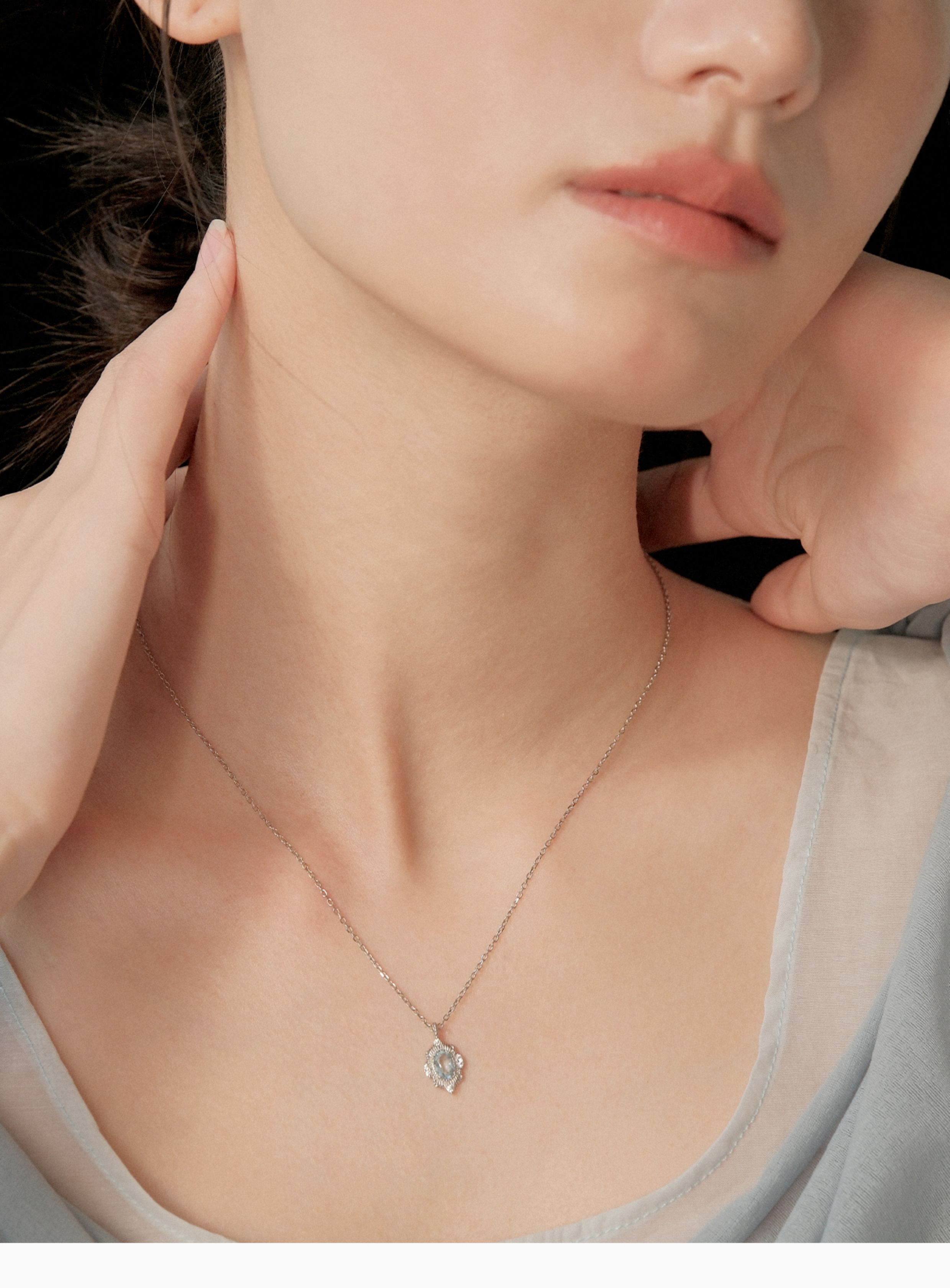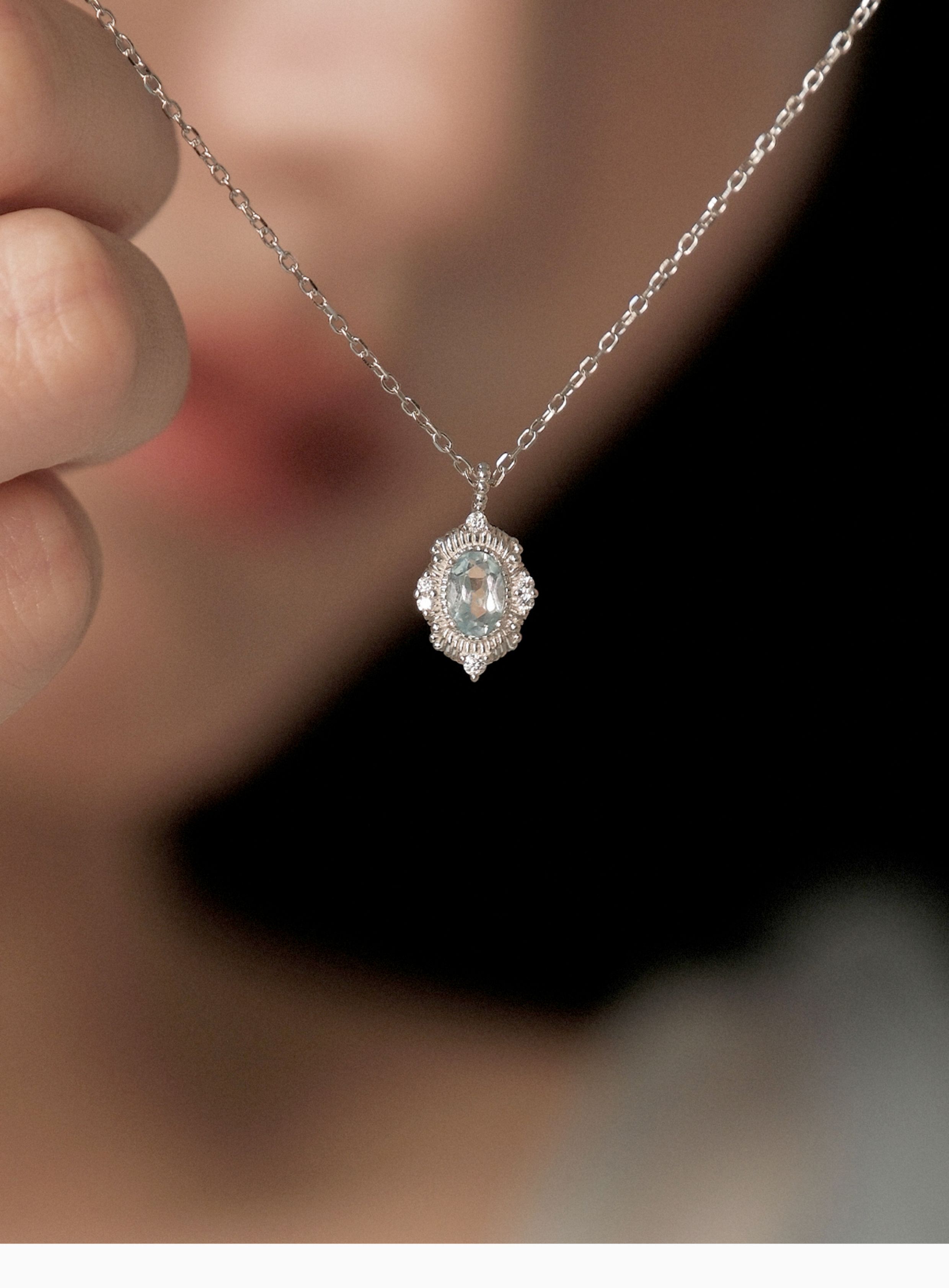 Sanswood's "Haixian" Dreamy Aquamarine Necklace for Women, with a Cool and Sophisticated Aura, Clavicle Chain
