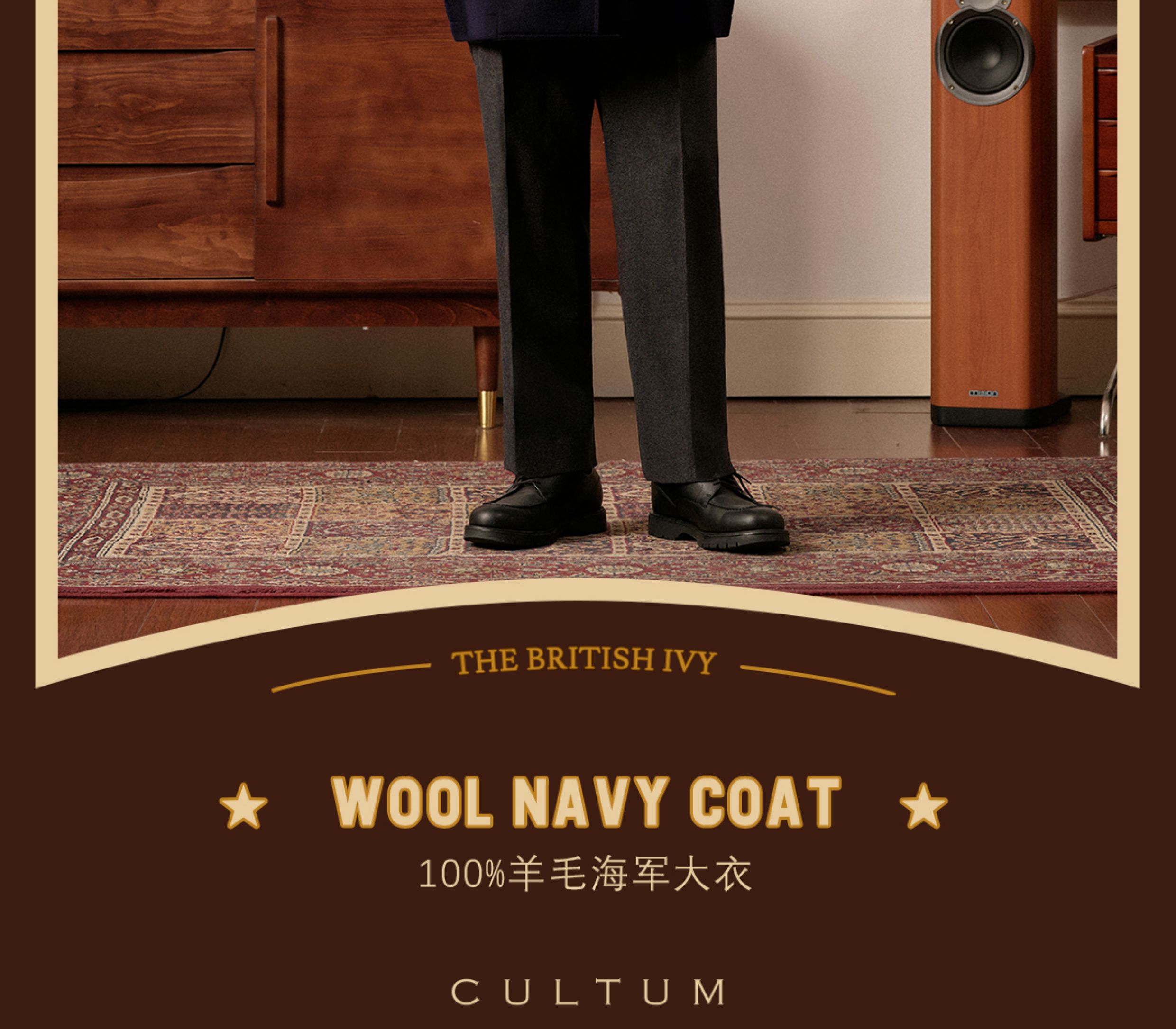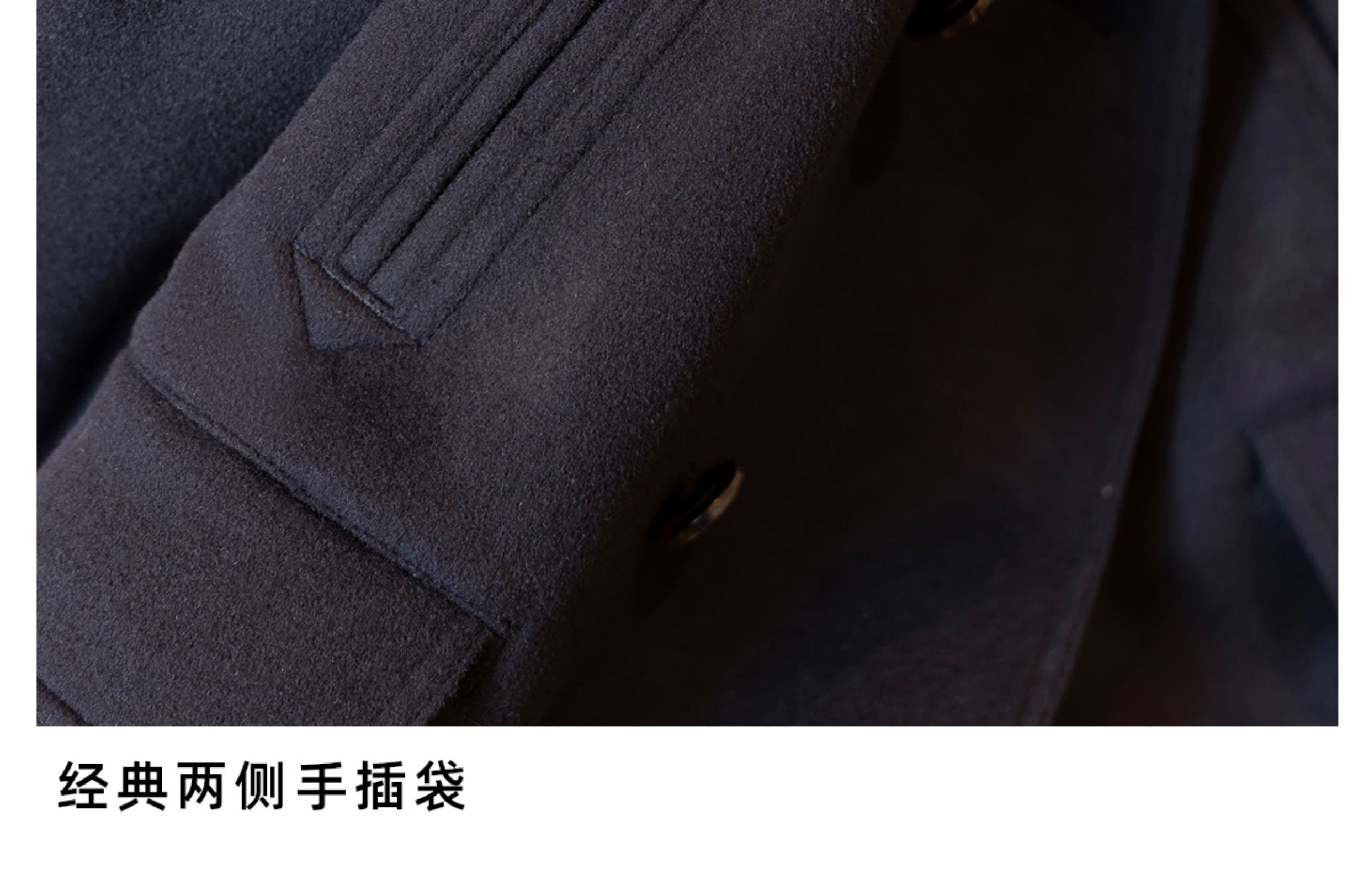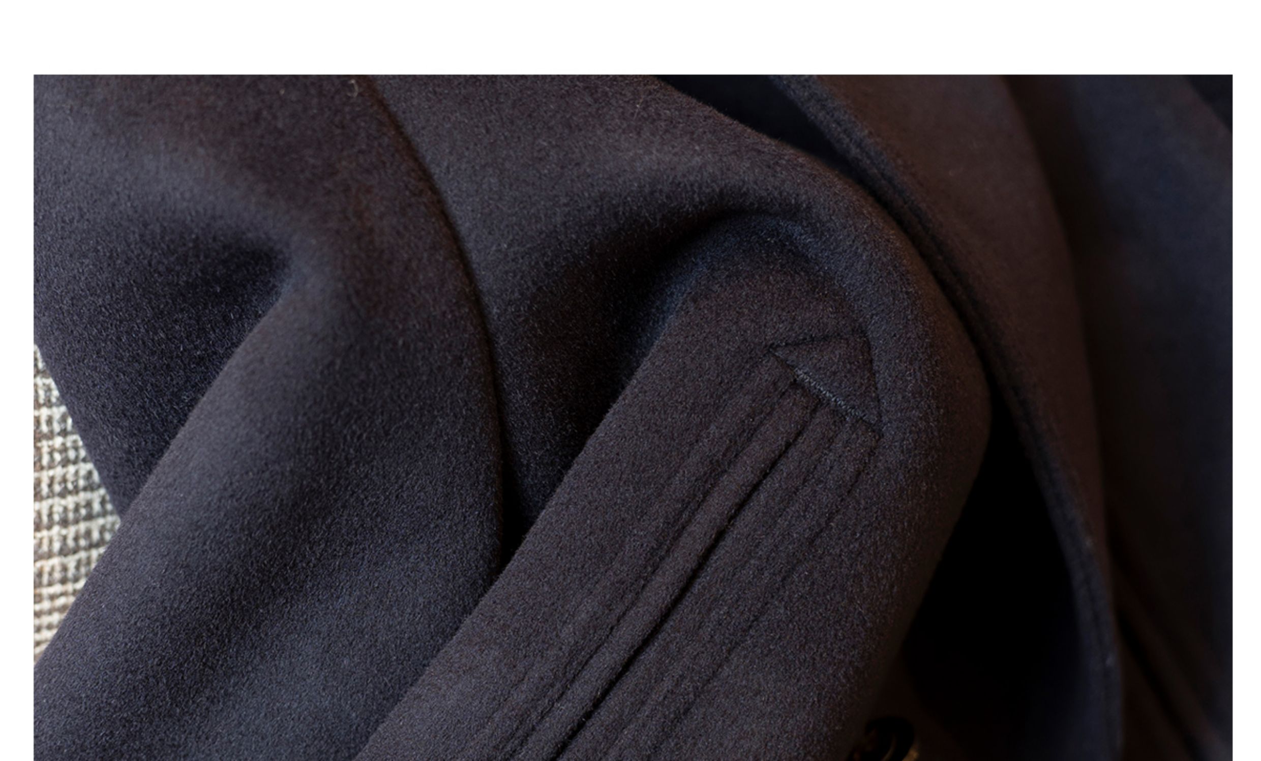 Cultum Heavyweight 880g 100% Wool Vintage Navy Coat for Men, Double-Breasted, Thickened Woolen Overcoat for Winter