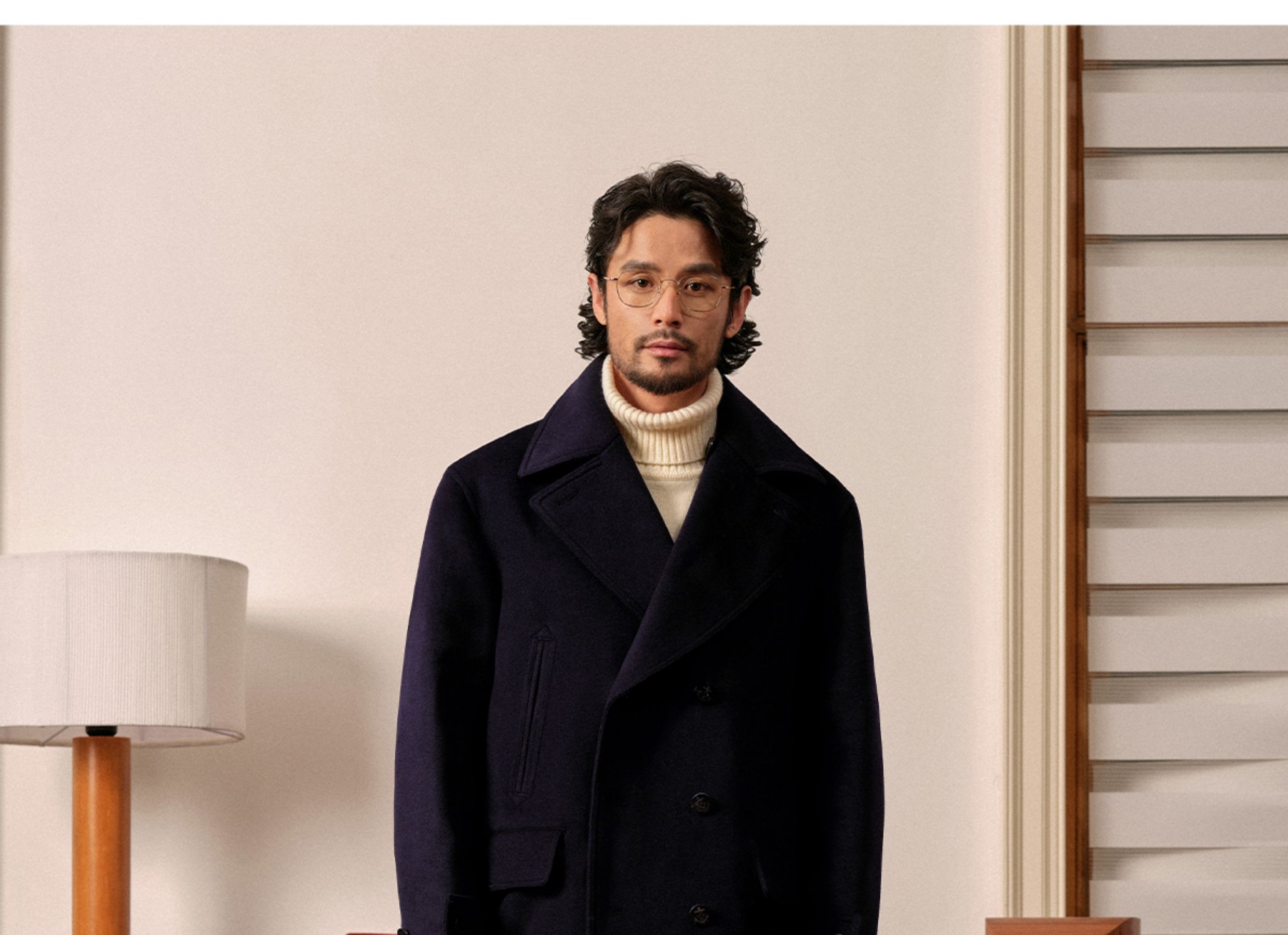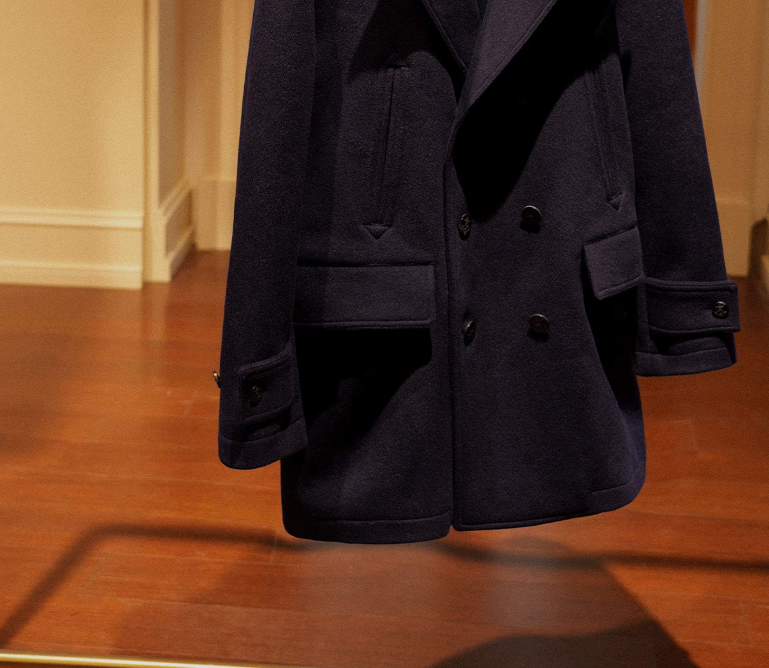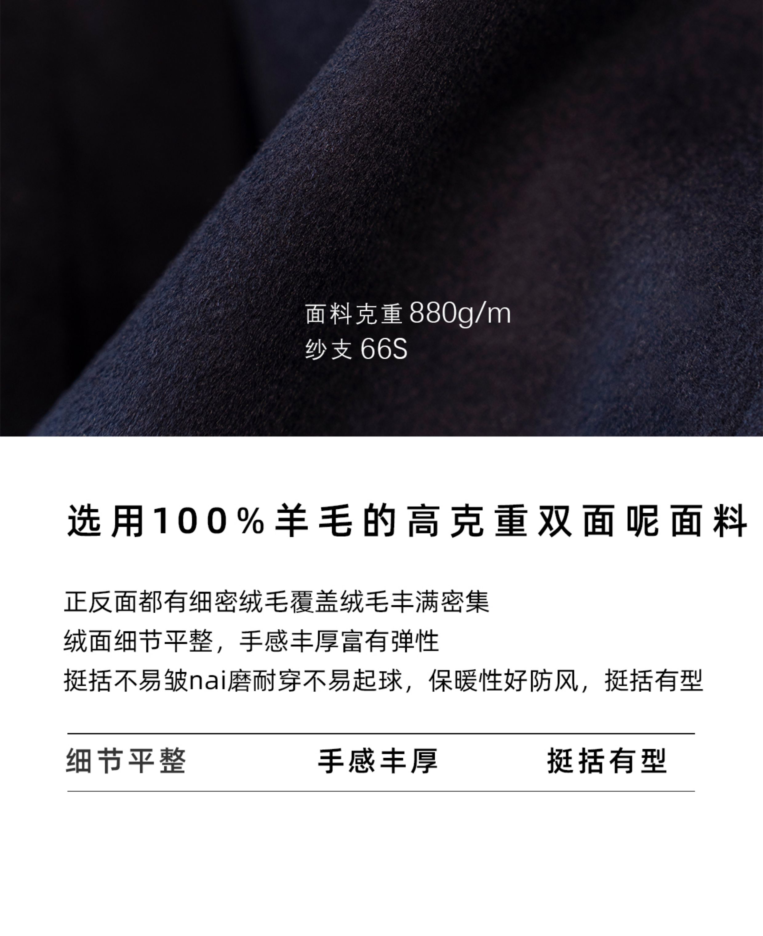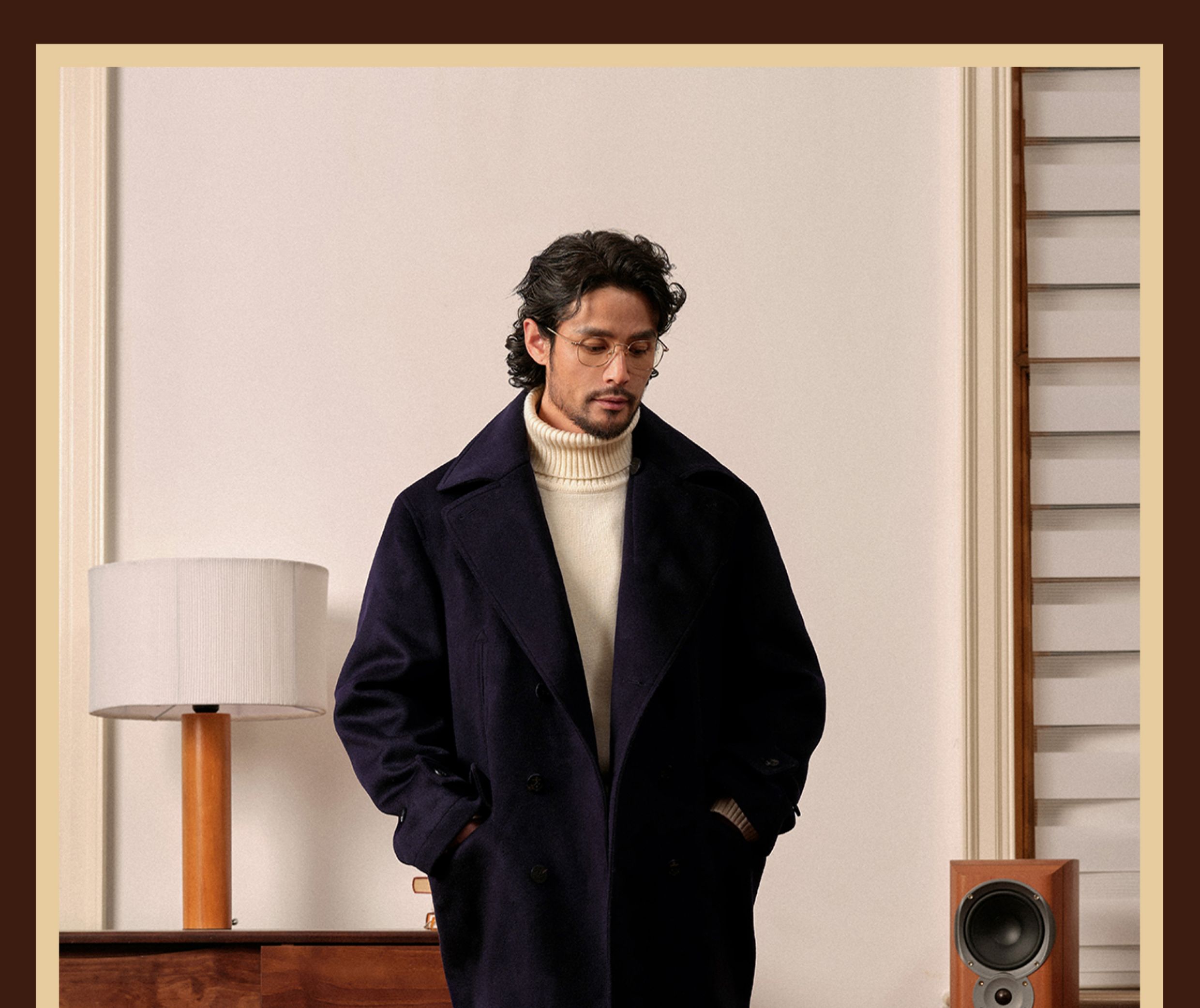 Cultum Heavyweight 880g 100% Wool Vintage Navy Coat for Men, Double-Breasted, Thickened Woolen Overcoat for Winter