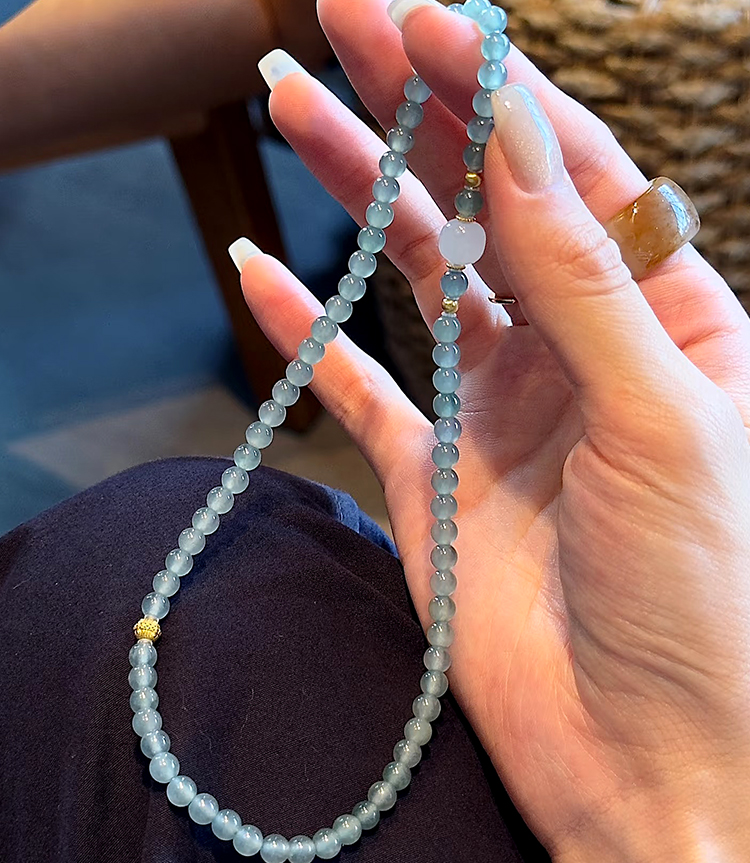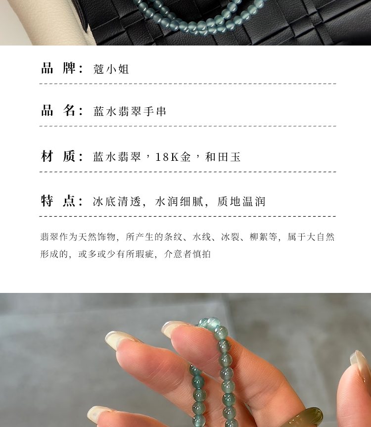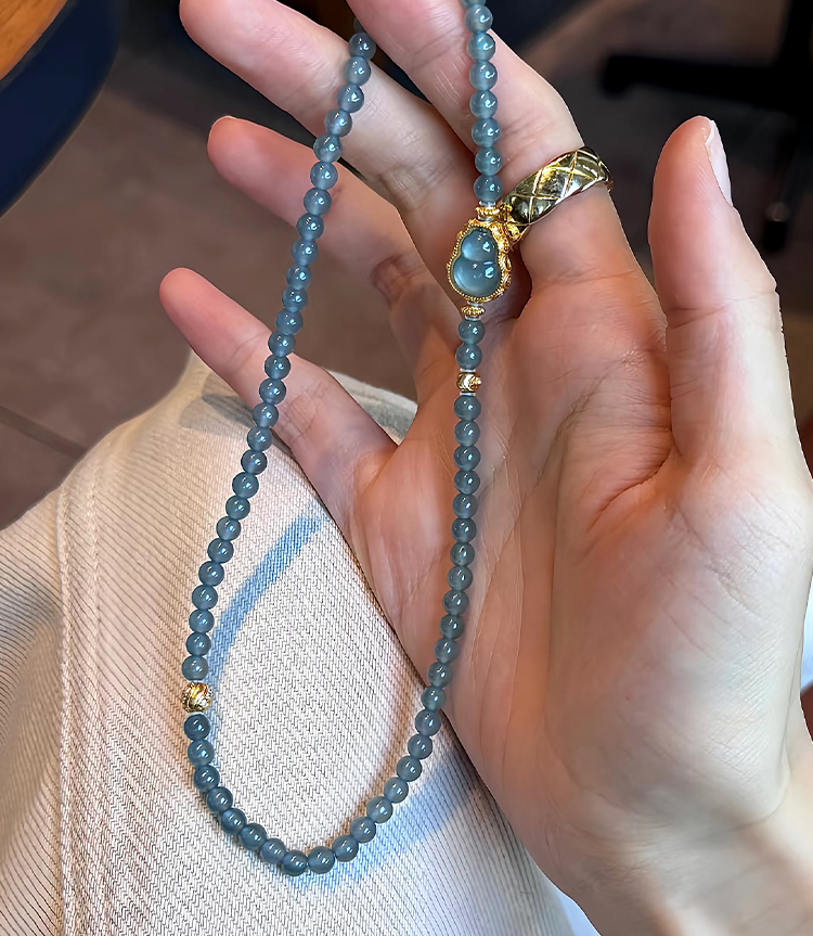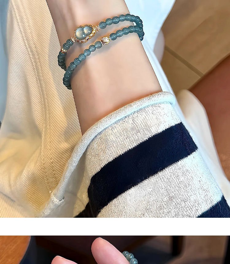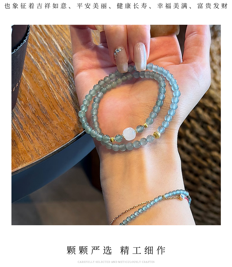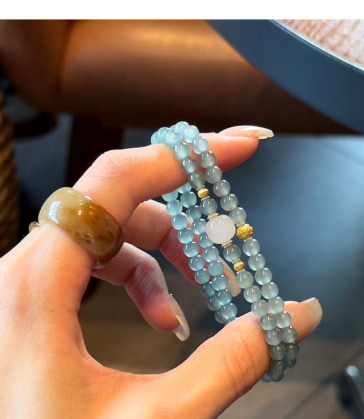 Authentic Natural High Ice Transparency A-Grade Blue Water Jade Double-Circle Bracelet, Ice-Type Hetian Jade, Collectible Grade, New Chinese Style Gift