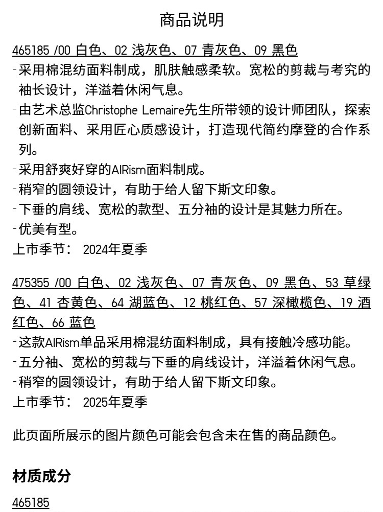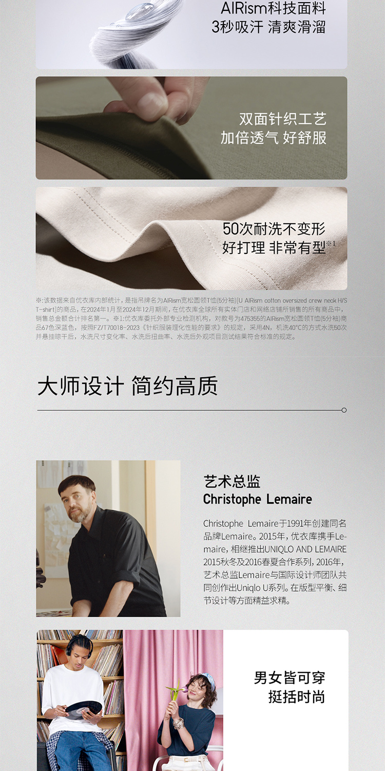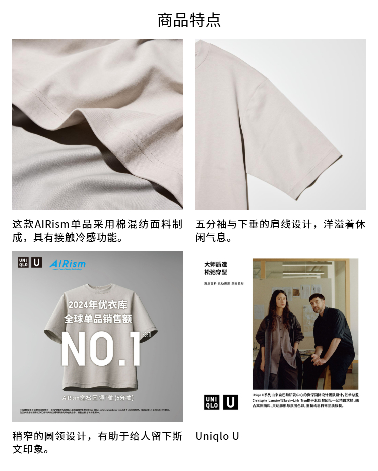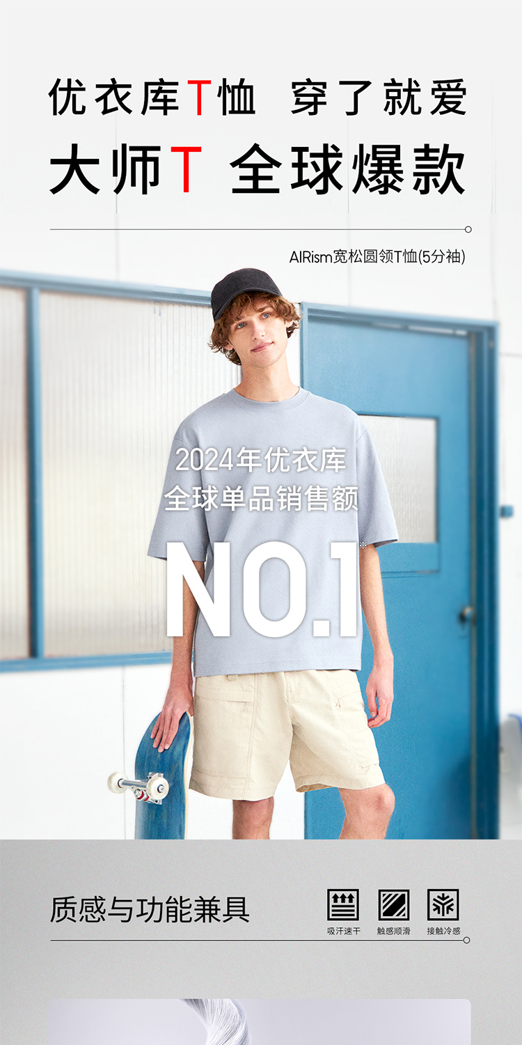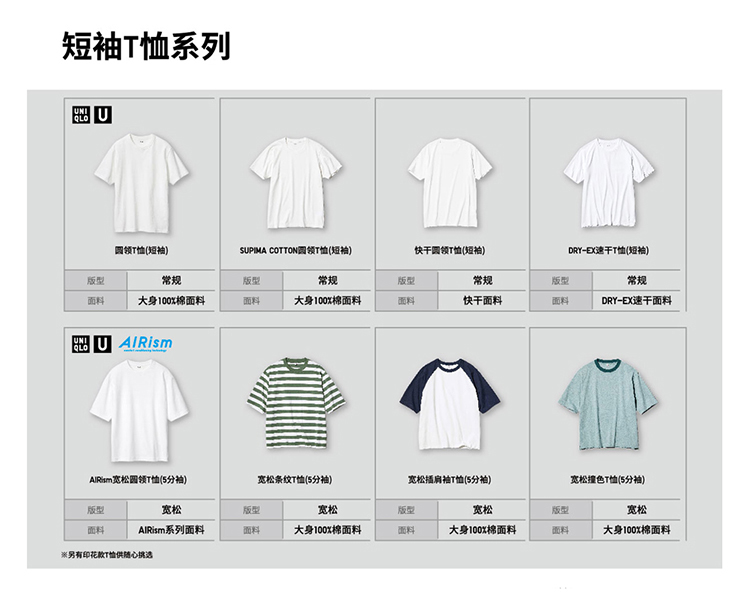 Uniqlo Men's and Women's Master t Airism Loose Round Neck T-Shirt Five-Quarter Sleeve Short Sleeve 475355 465185