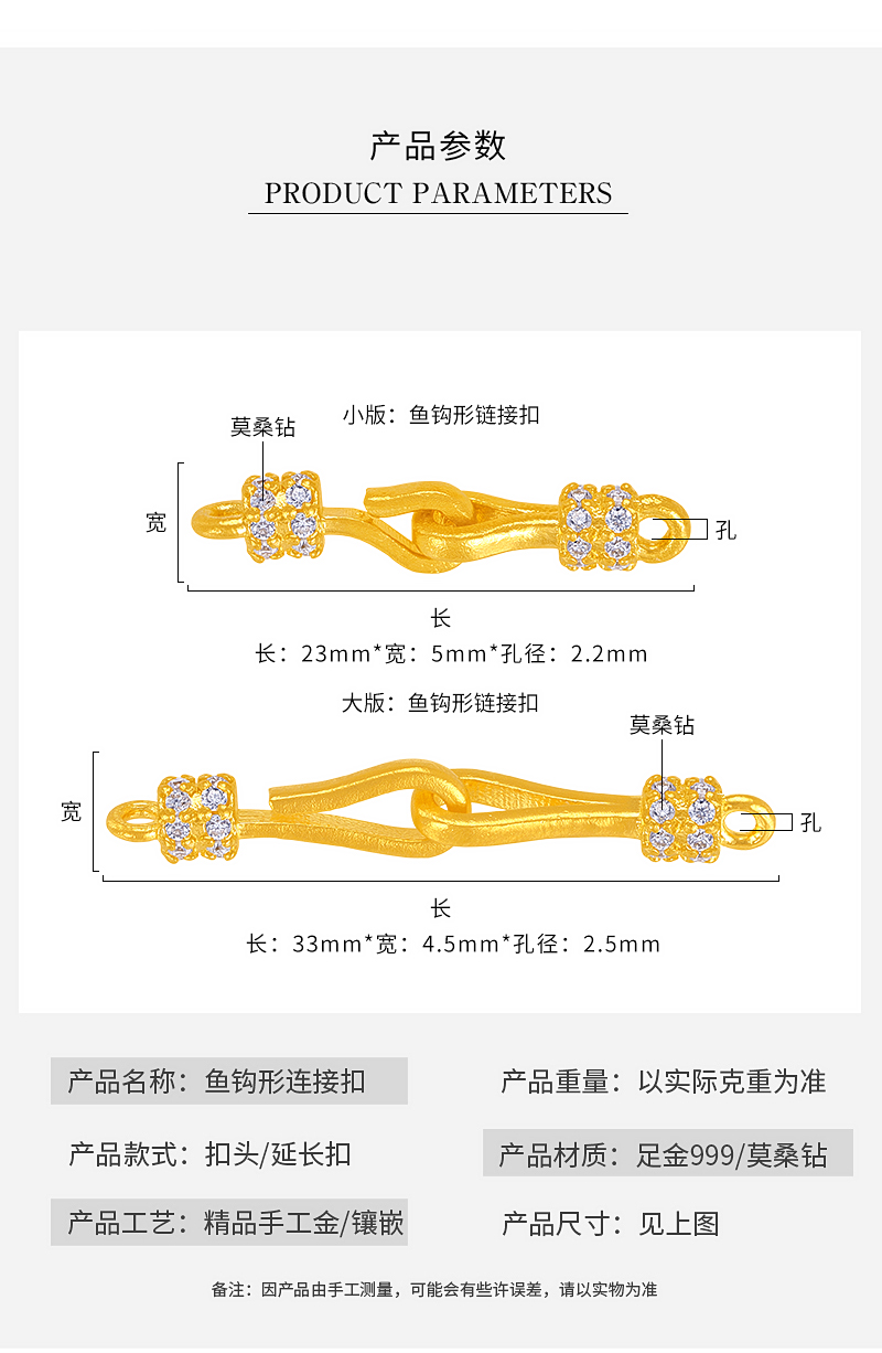 Fuxinglong Gold Fish Hook-Shaped Connector Pure Gold Figure-Eight Connector Accessory DIY Necklace Bracelet G2175