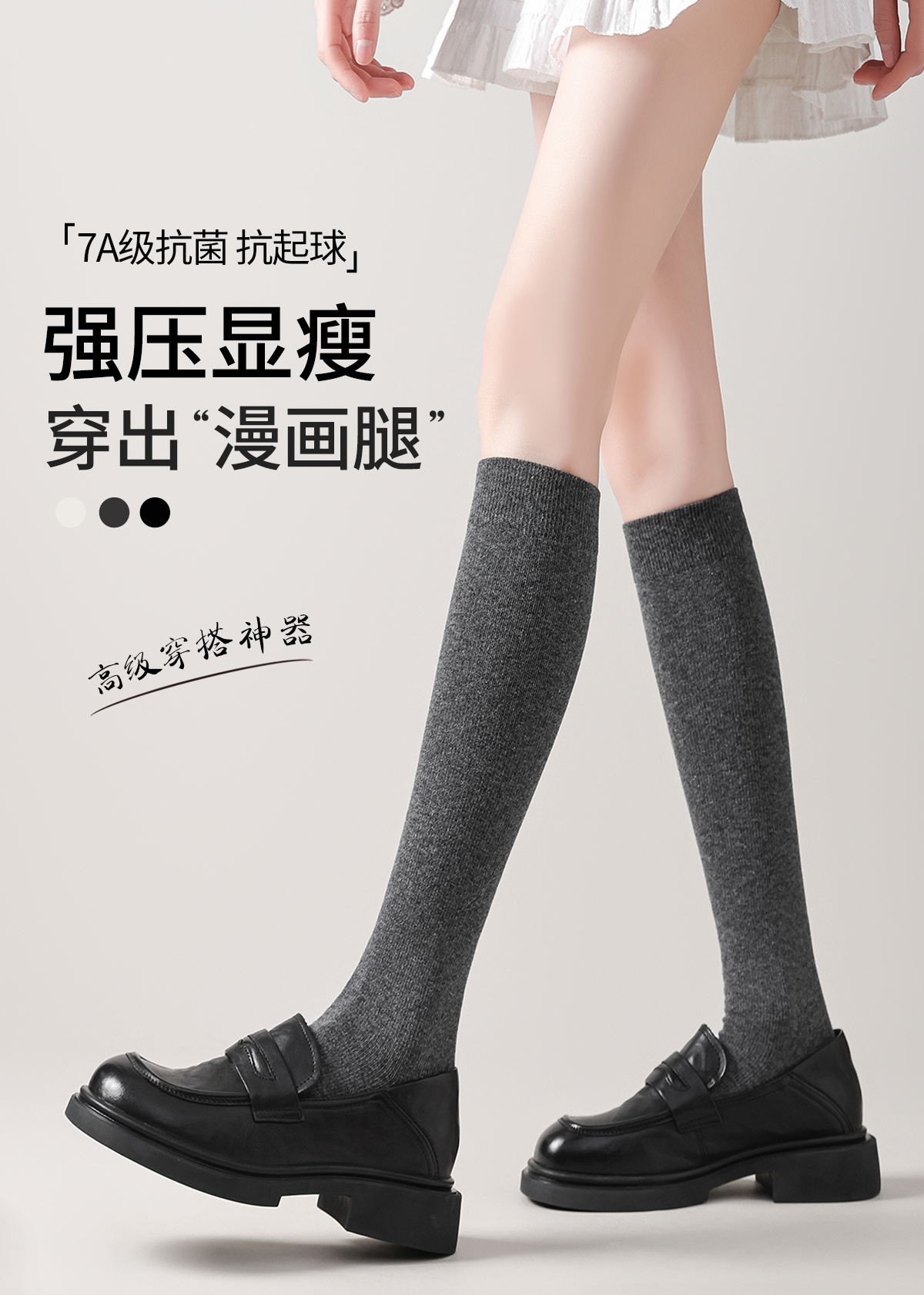 Gray Calf Socks for Women, Autumn Thin Pressure Stockings, Strong Compression Slimming Leg Socks, Jk Socks, Mid-Calf, High-Calf, Dark Gray Long Socks