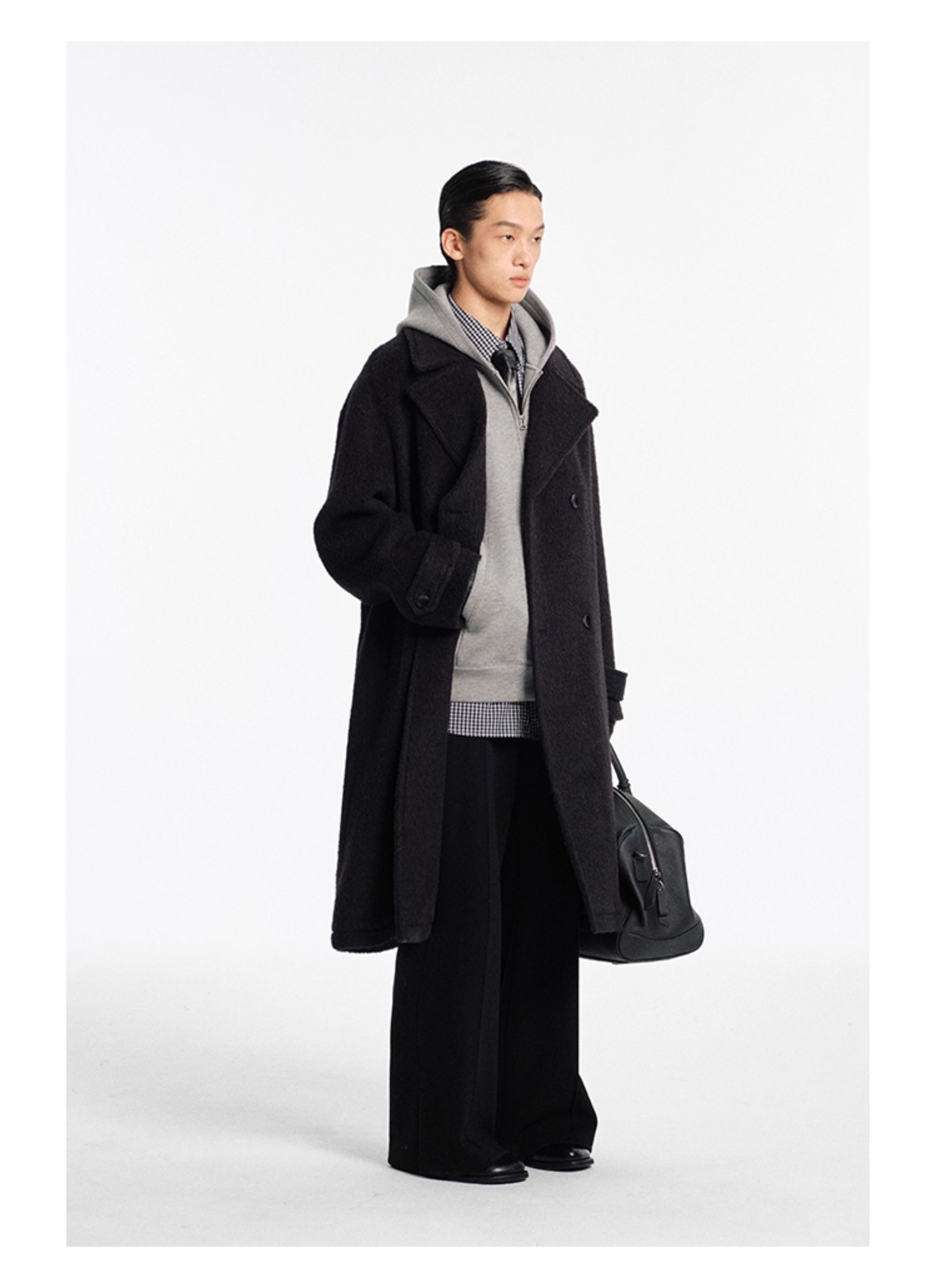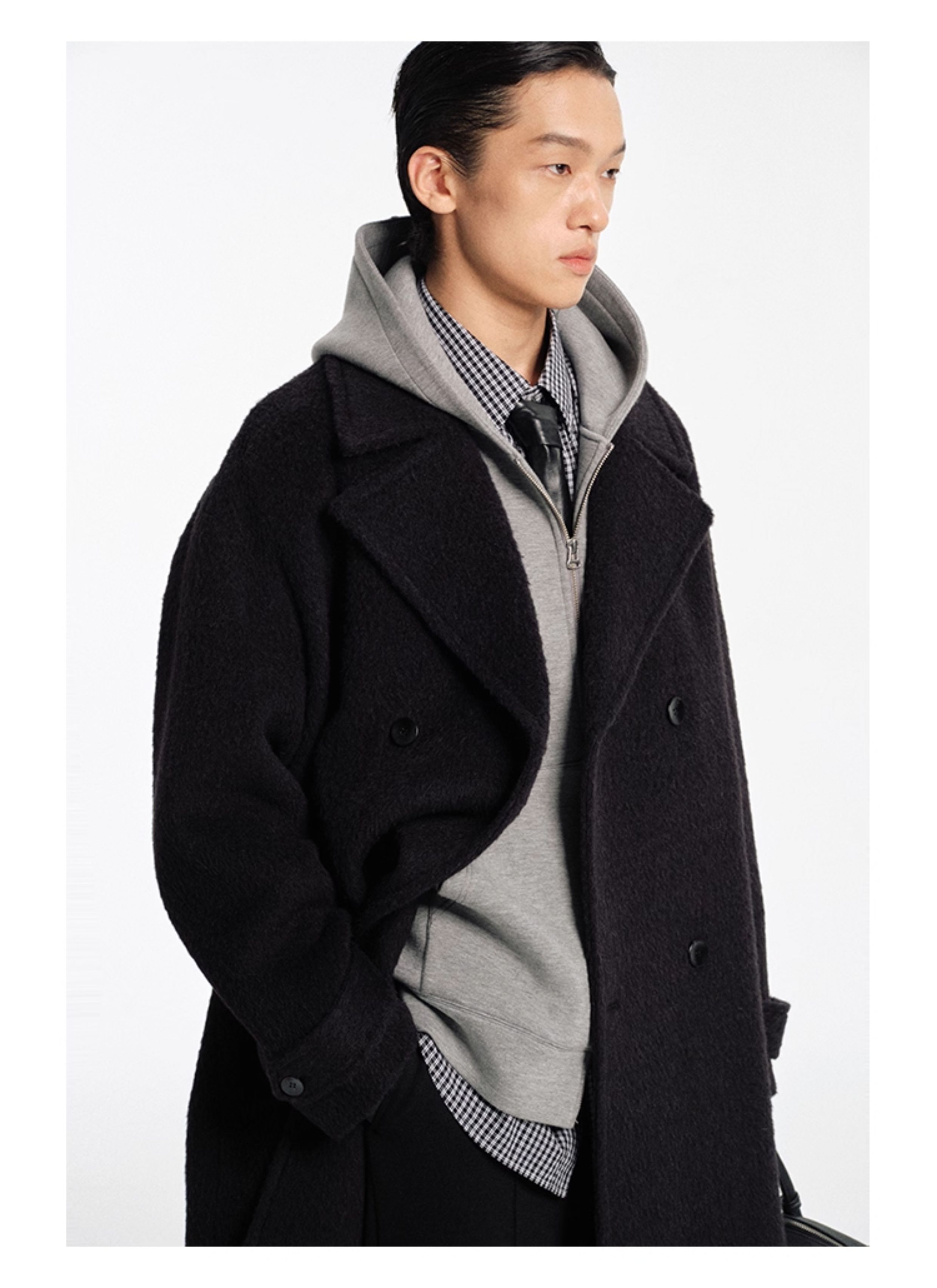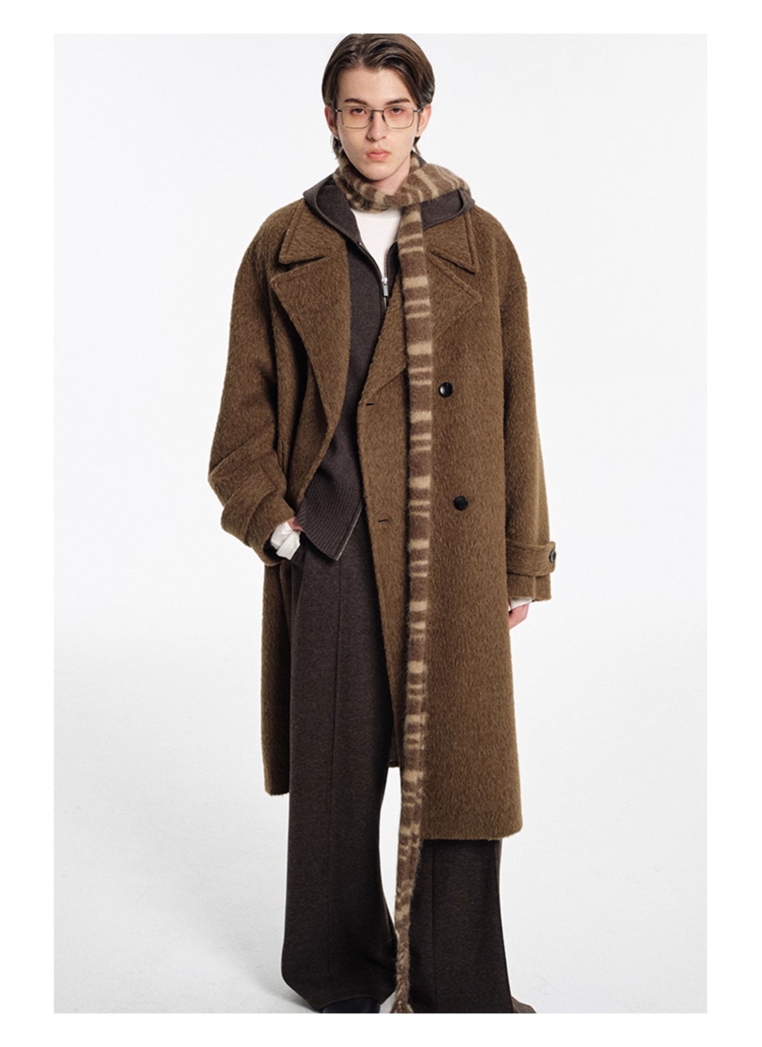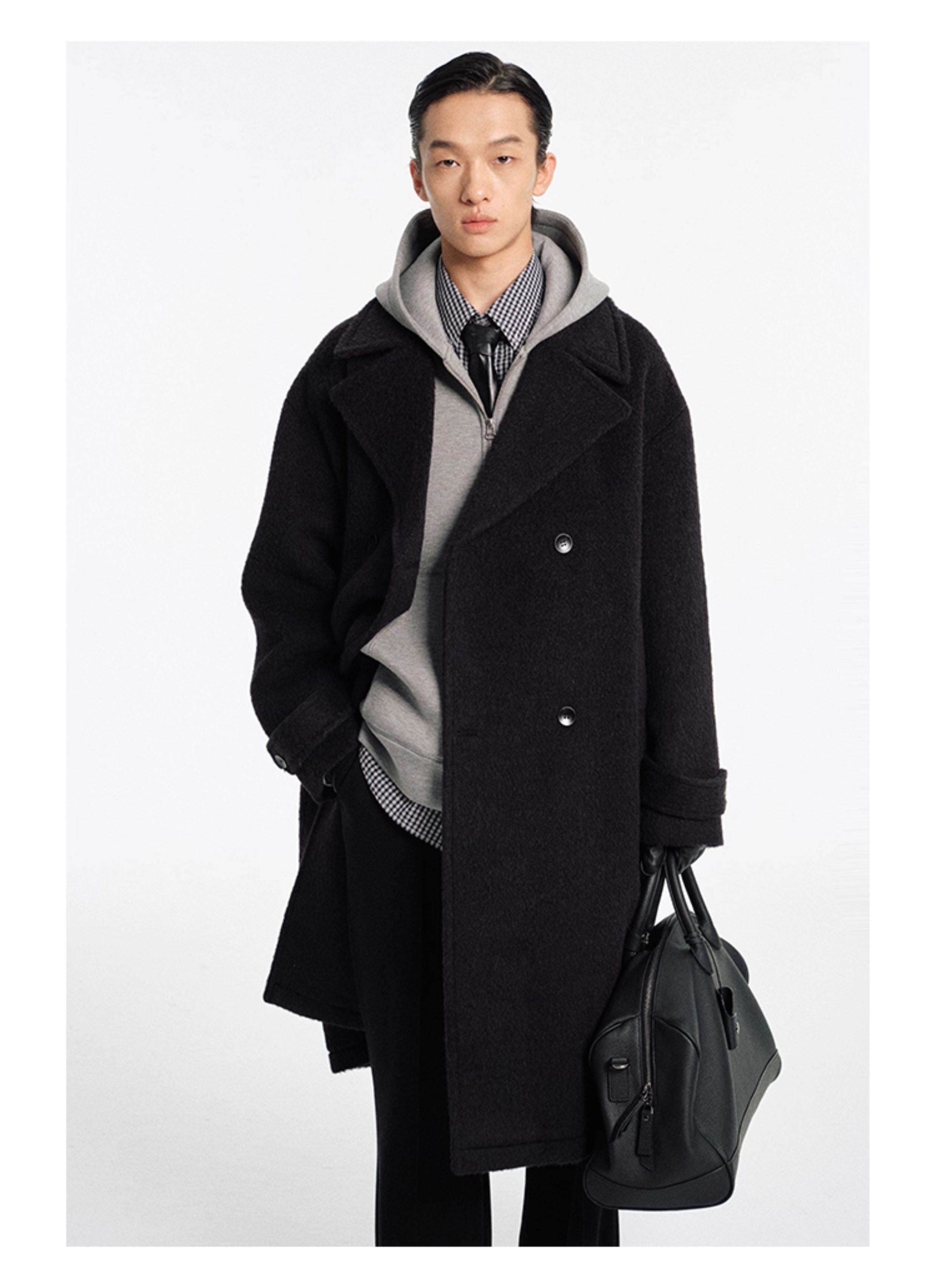 Nans Heavy Alpaca Wool Blend Long-Staple Classic Double-Breasted Lapel Single-Sided Woolen Coat Ns8L01