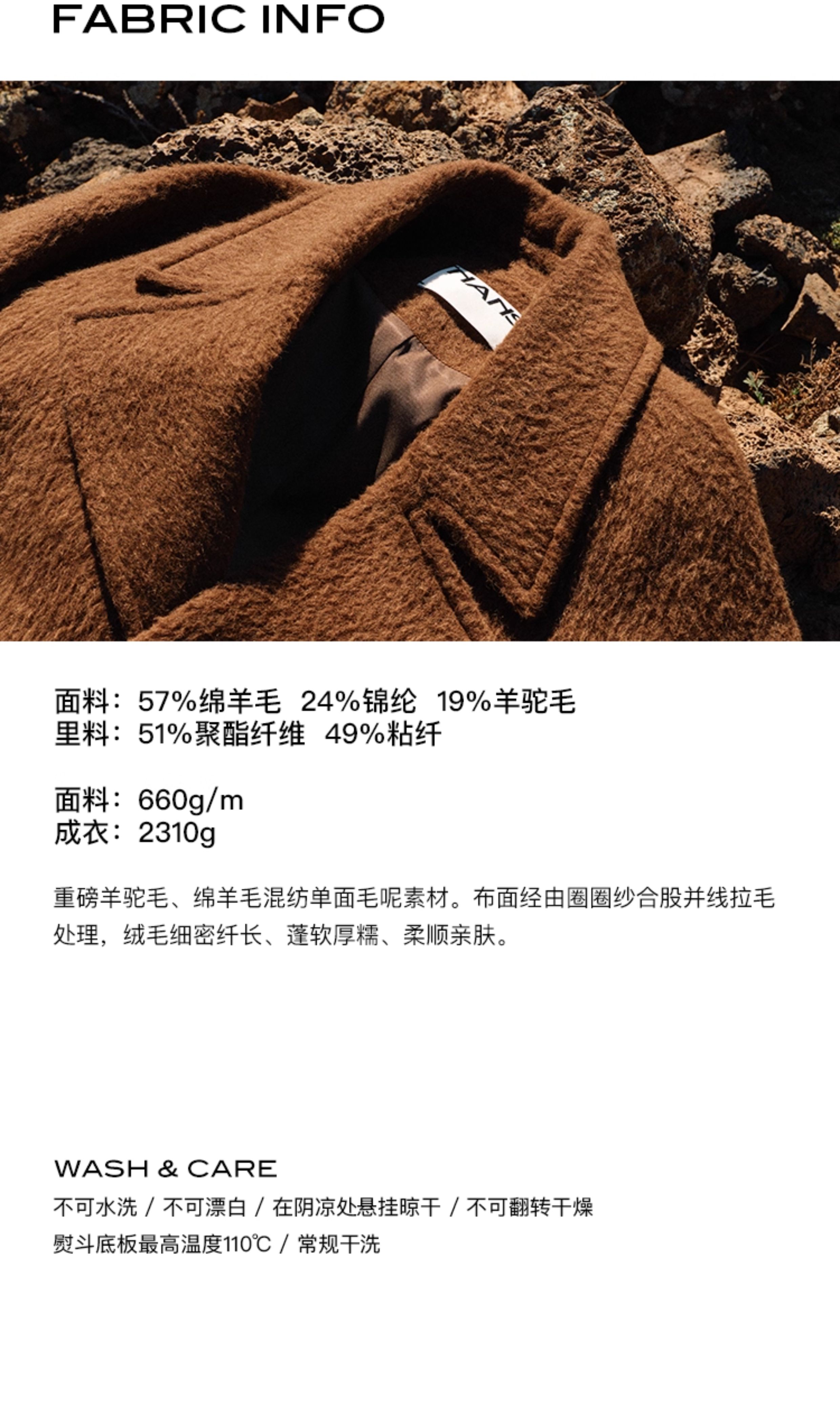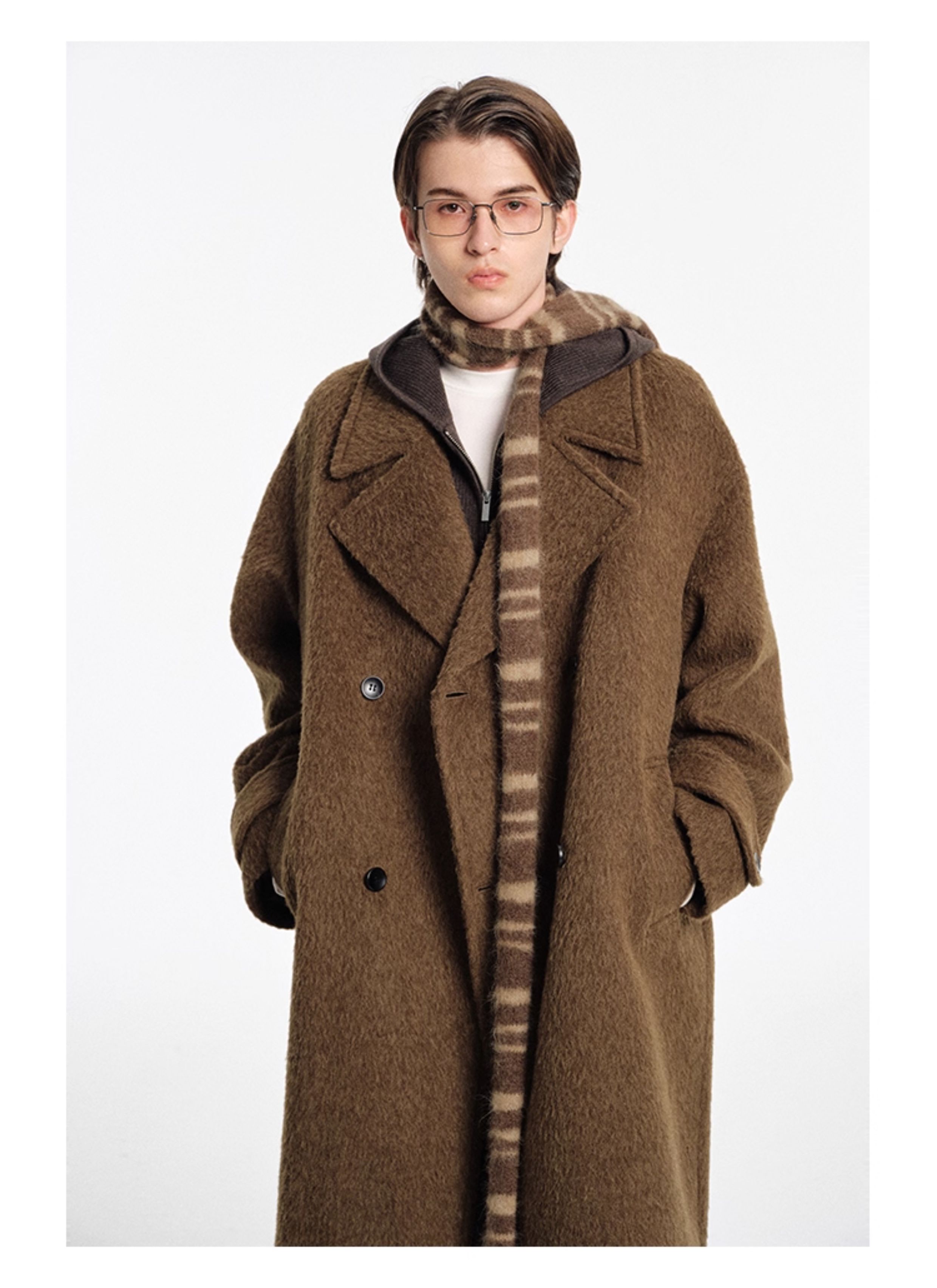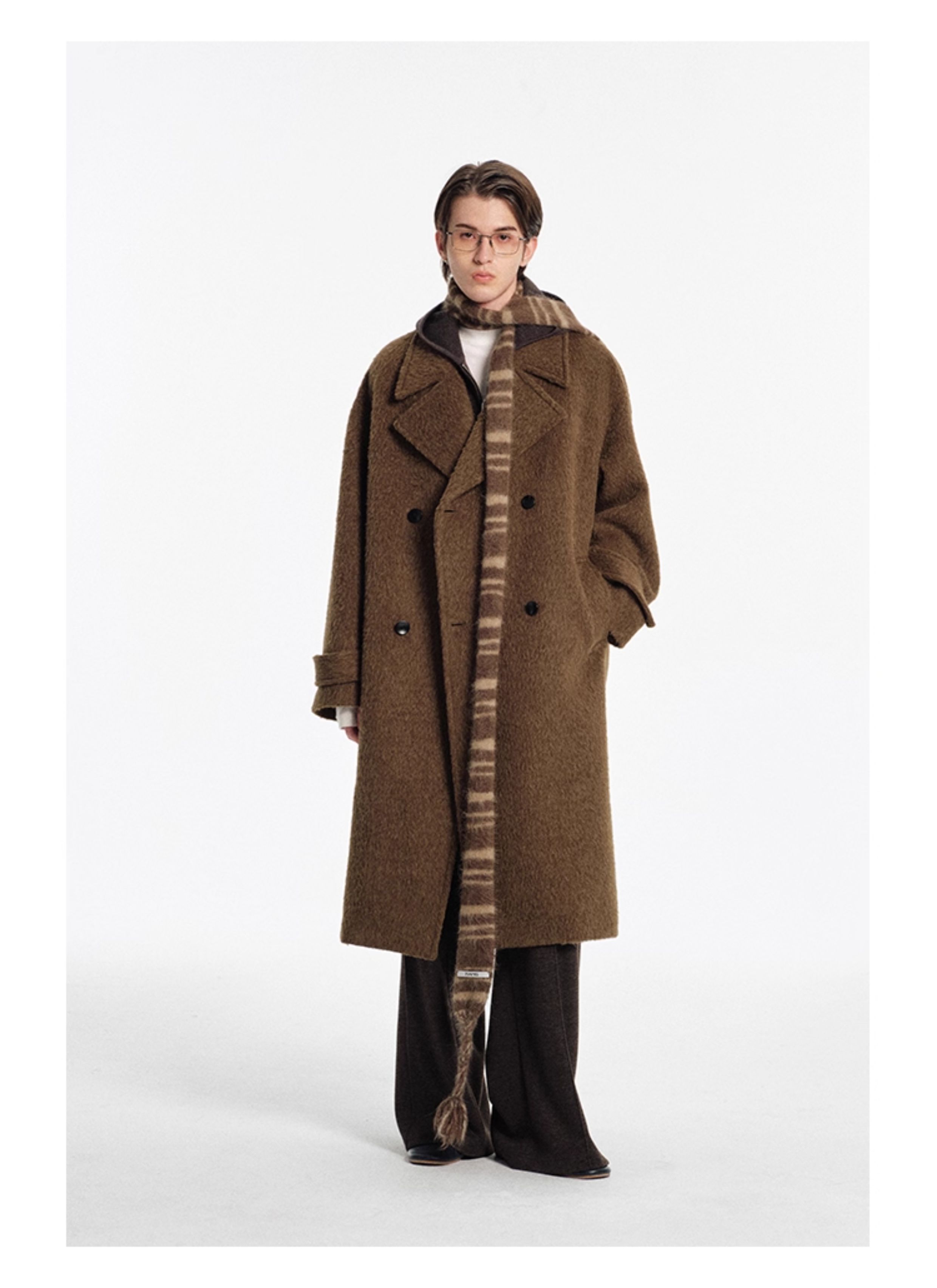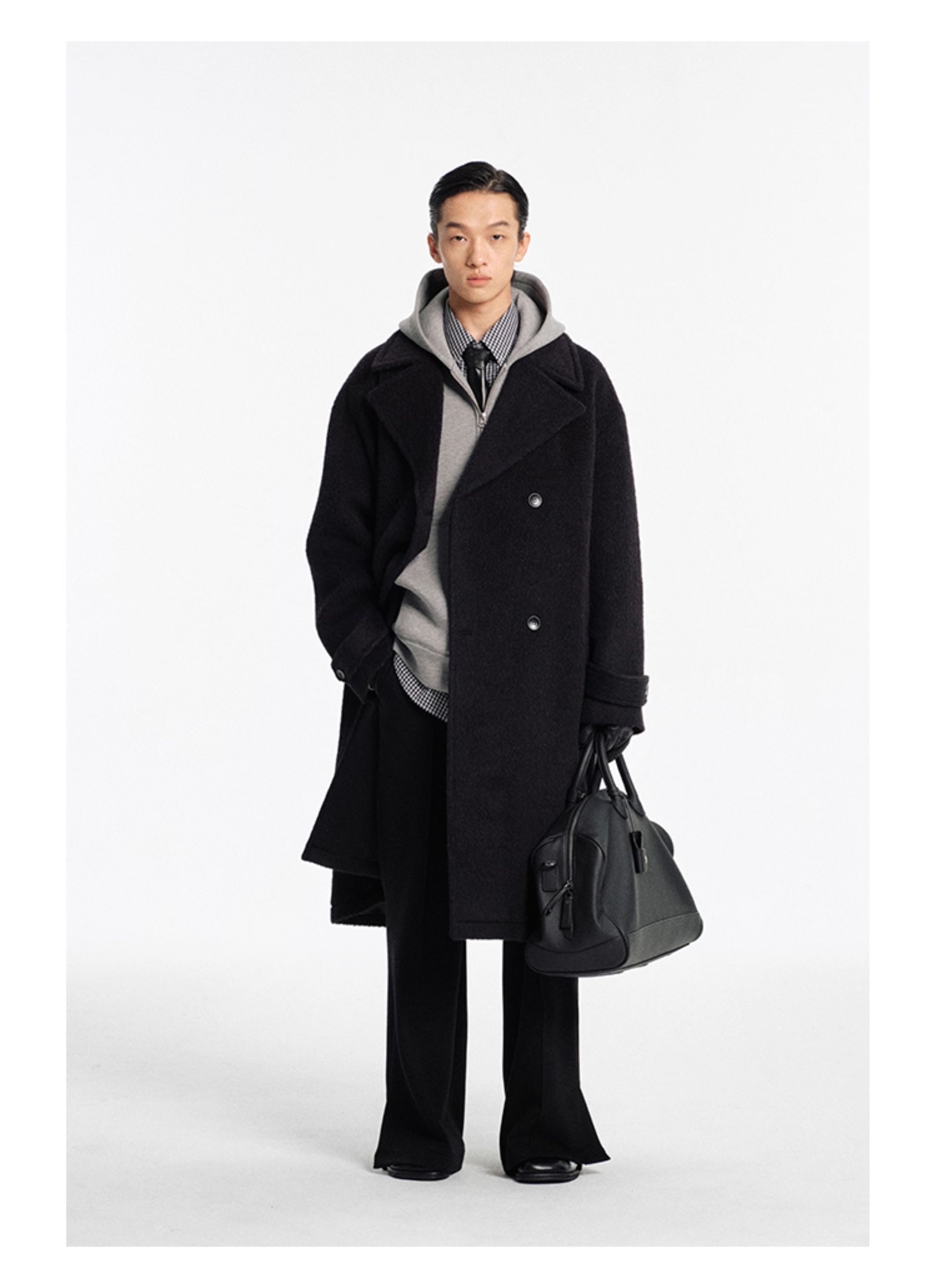 Nans Heavy Alpaca Wool Blend Long-Staple Classic Double-Breasted Lapel Single-Sided Woolen Coat Ns8L01