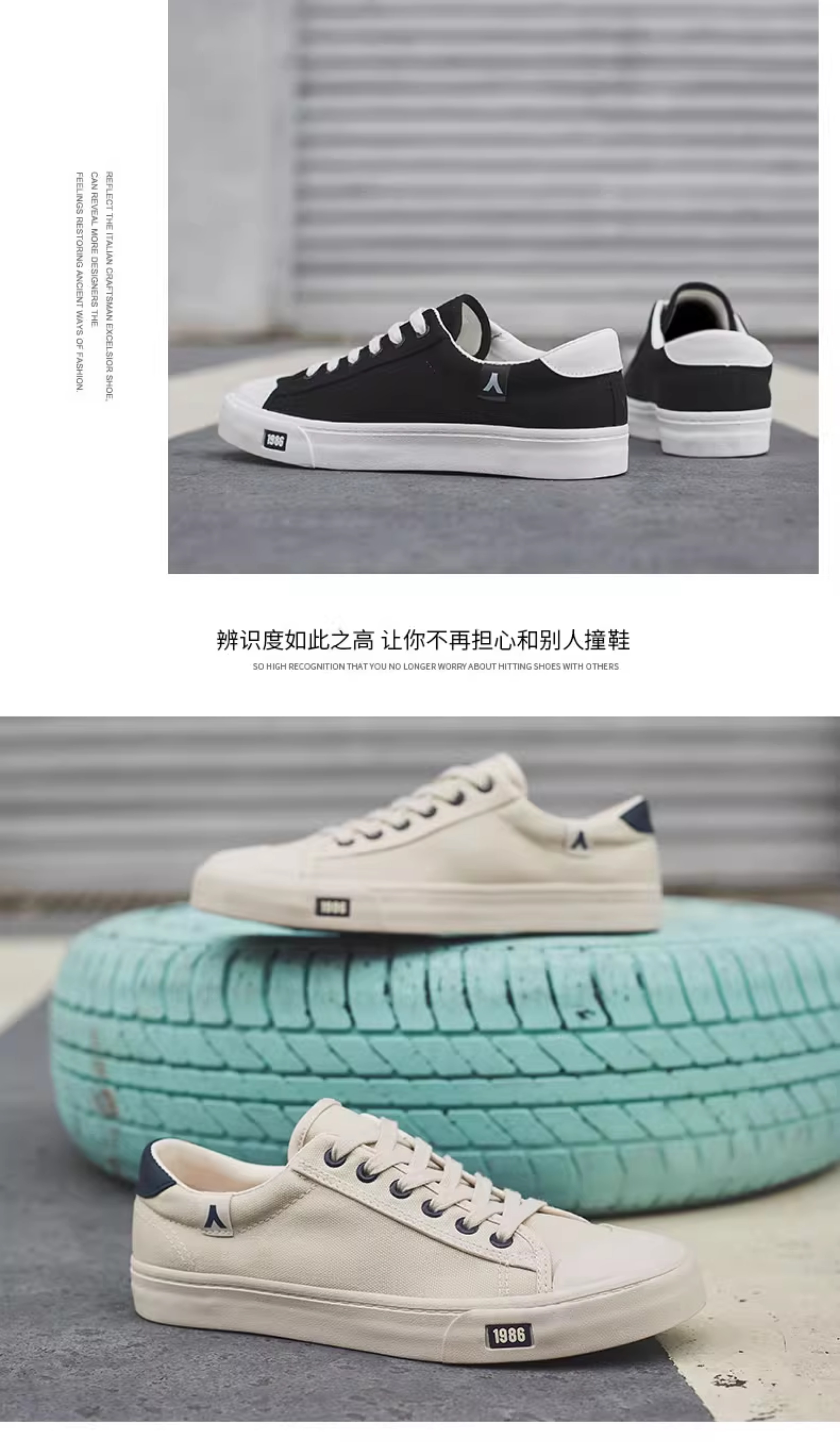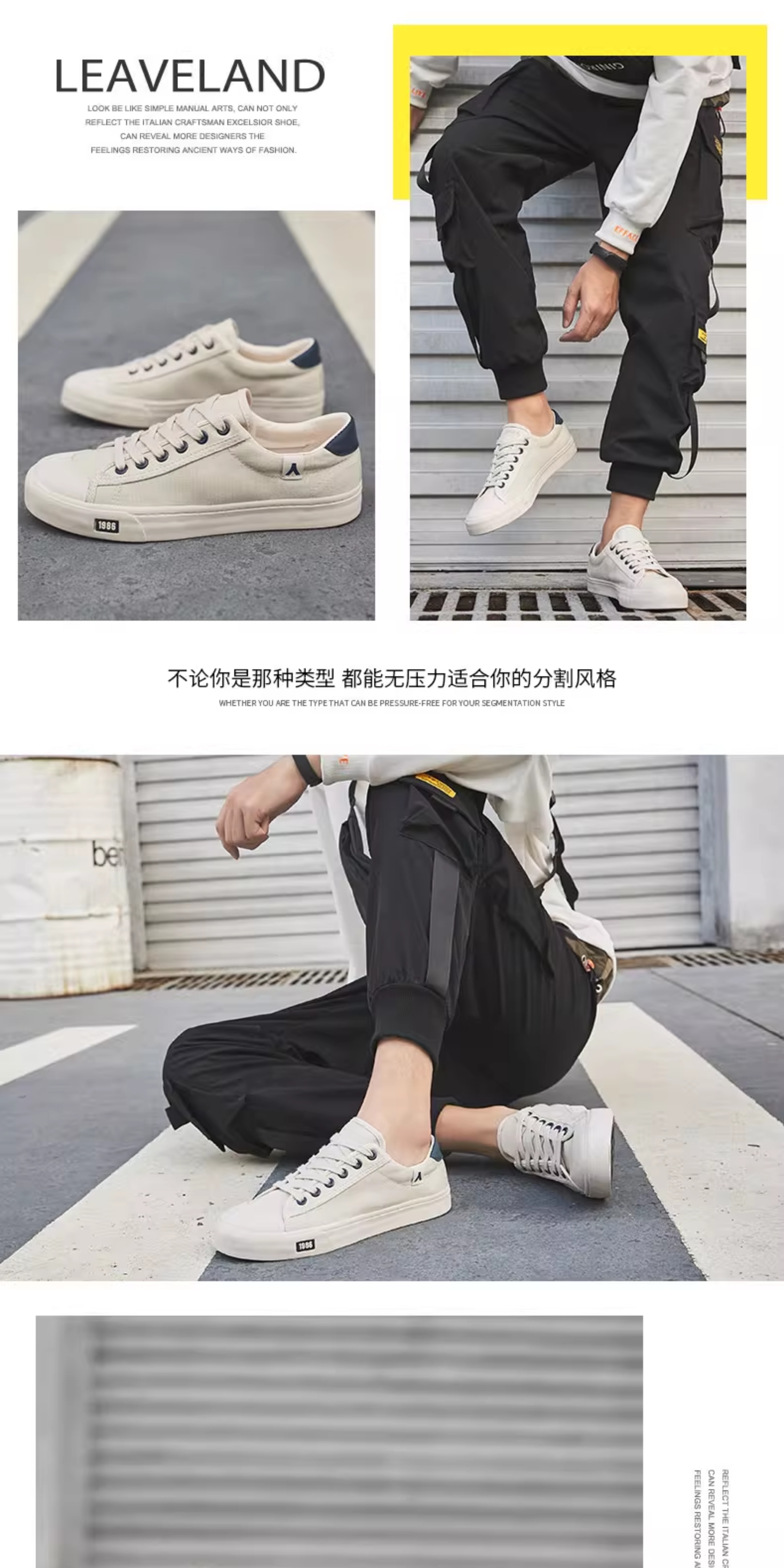 Renben Canvas Shoes Men's Shoes 2025 New Beige Sports Casual Shoes Spring and Autumn Breathable Men's Low-Top Sneakers