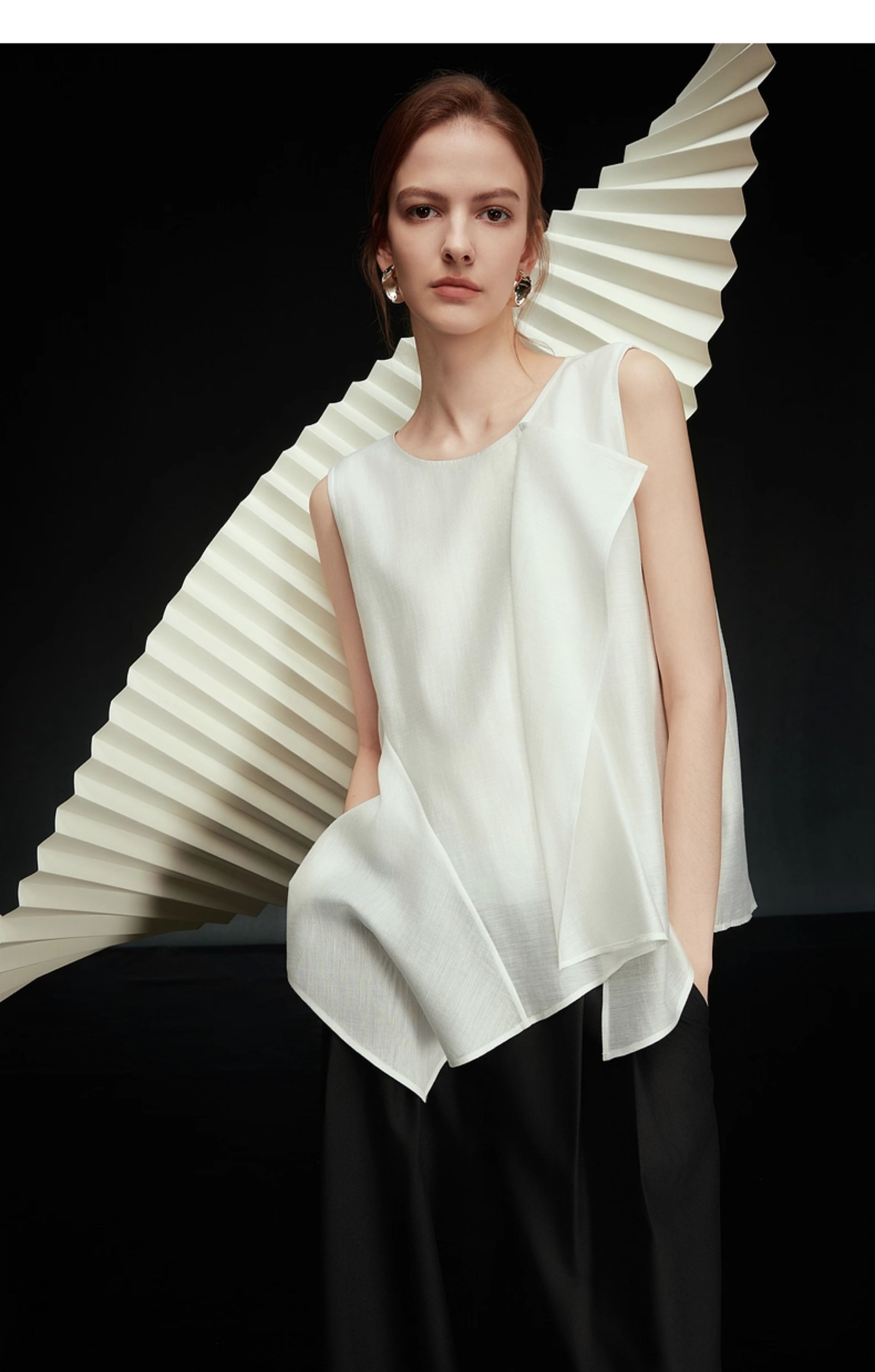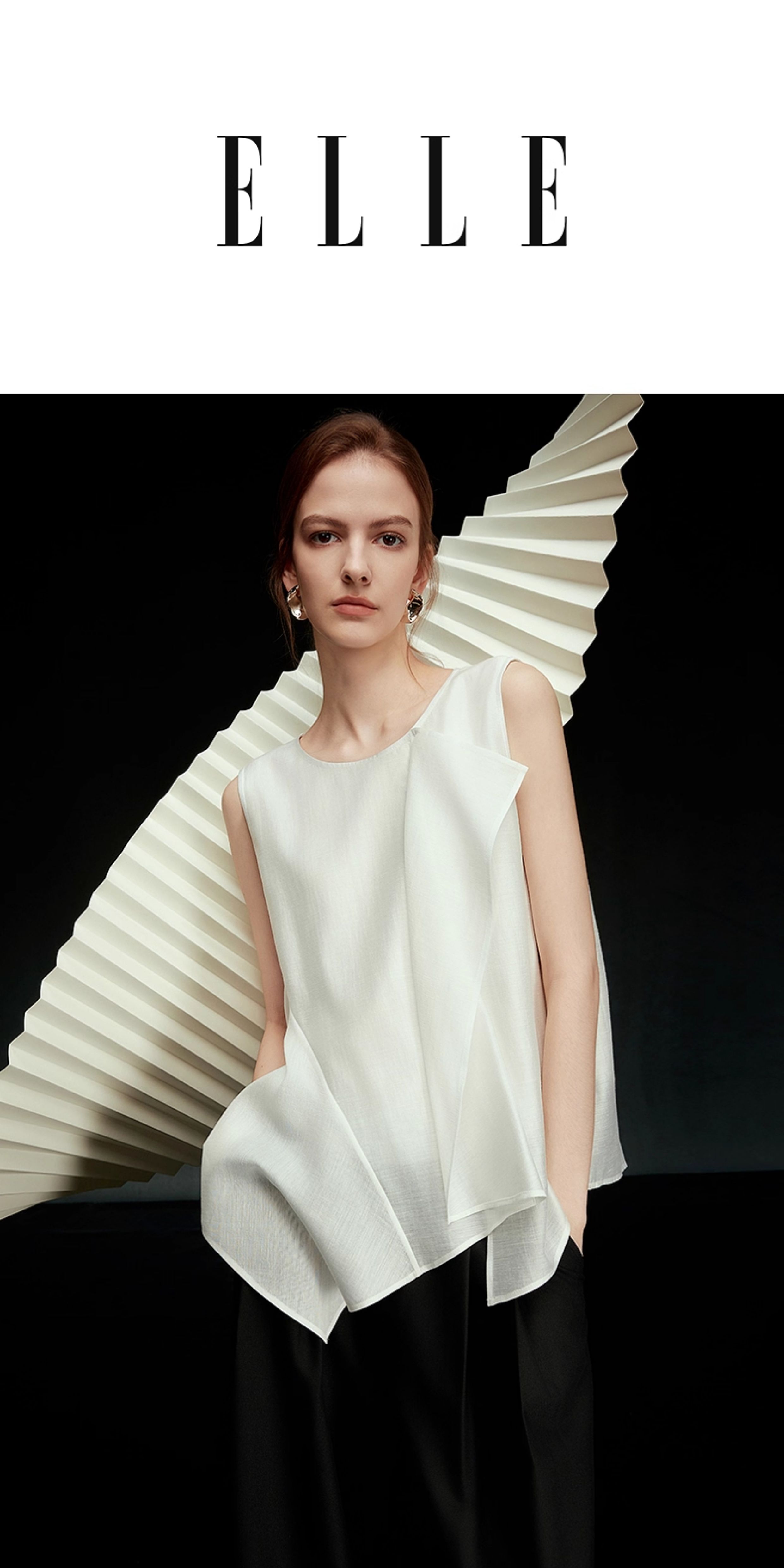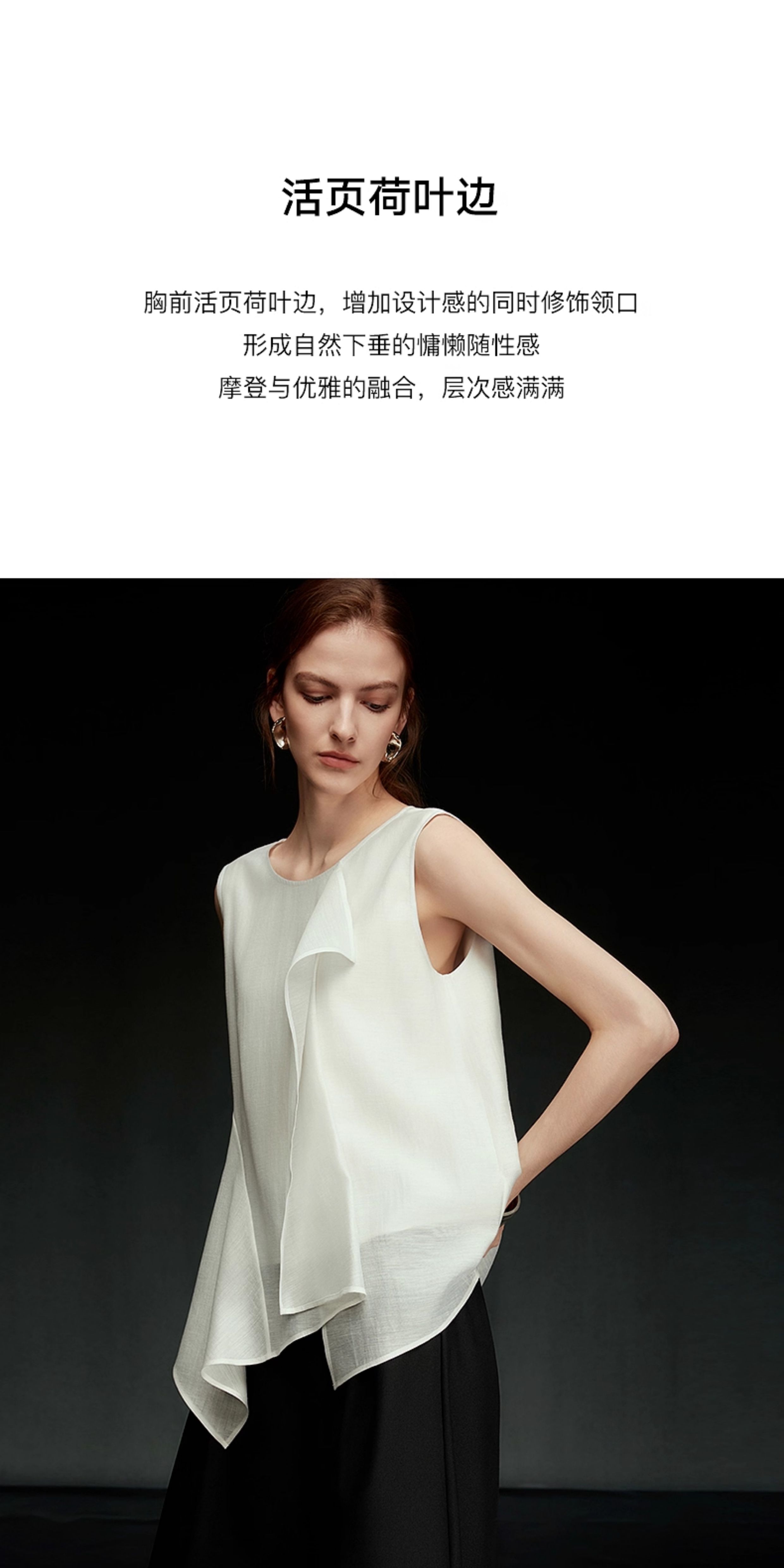 【Pure White Order】Elle Ruffled Acetate Sleeveless Blouse for Women 2025 Autumn New Tencel Chiffon White Shirt