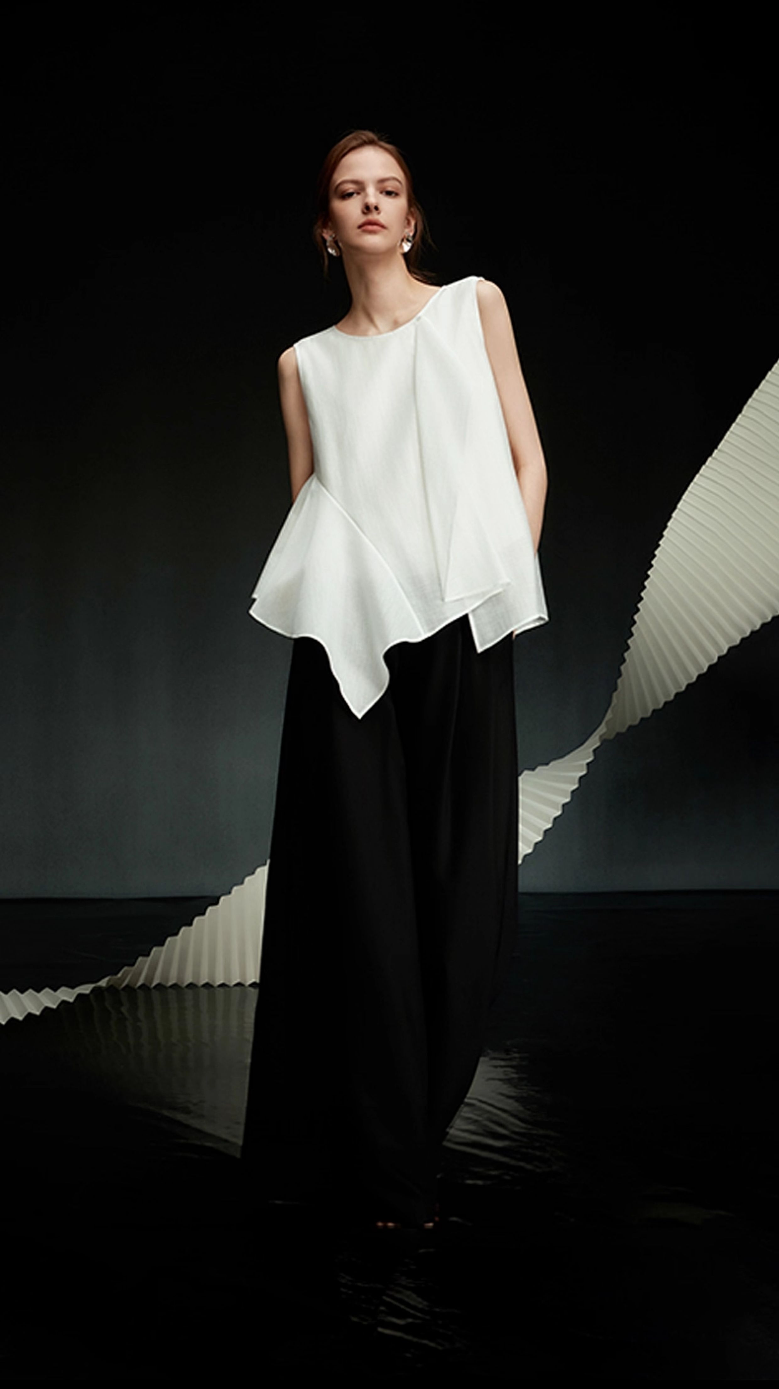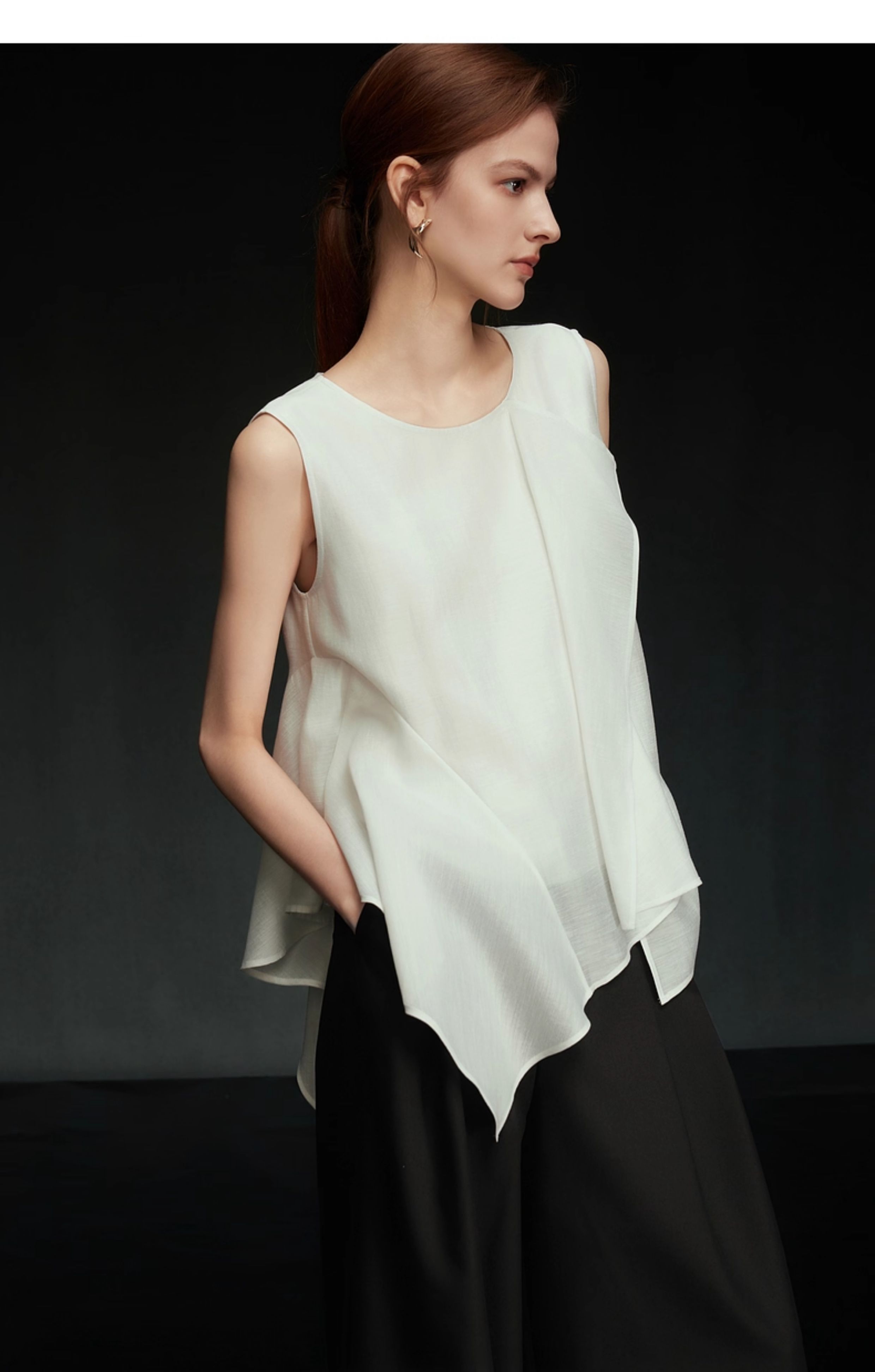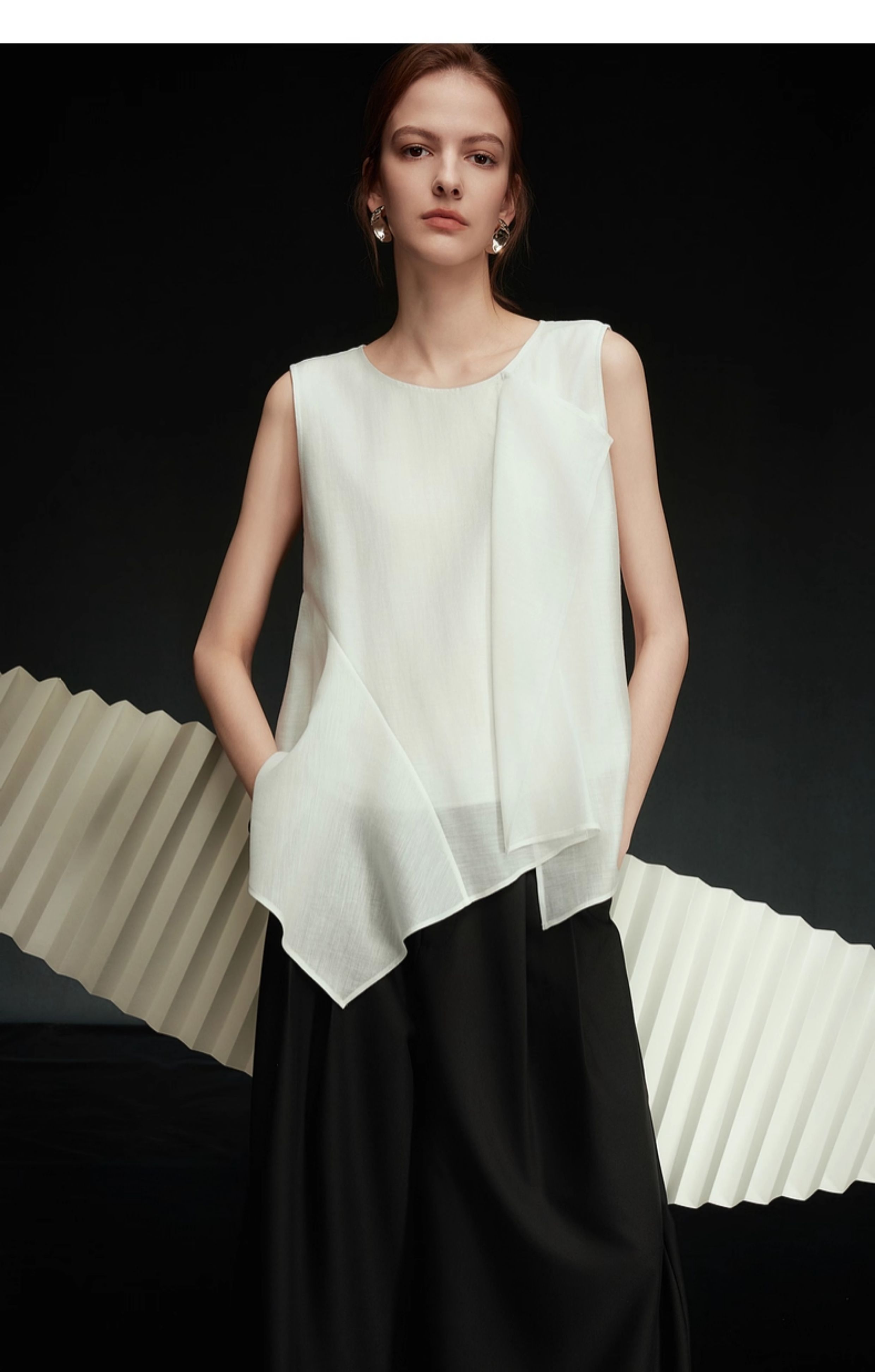 【Pure White Order】Elle Ruffled Acetate Sleeveless Blouse for Women 2025 Autumn New Tencel Chiffon White Shirt
