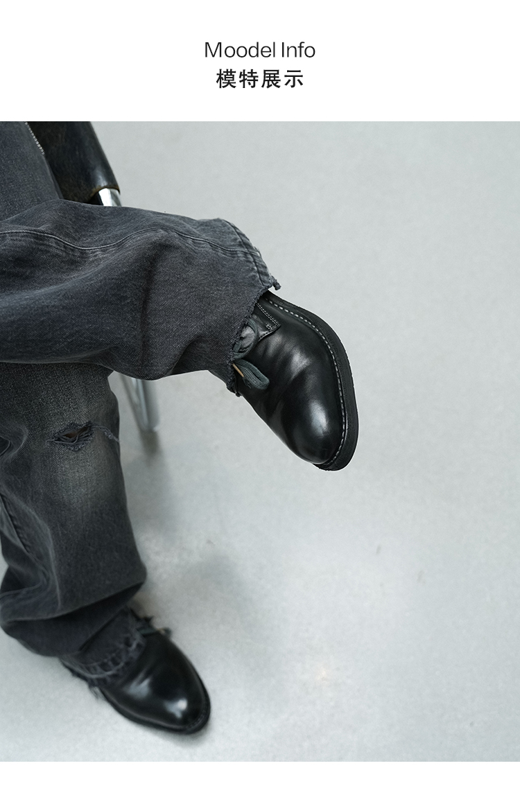 Mkszy Pioneer Goodyear Welted Polish Horse Leather Pointed Toe Shoes Mango Toe Low-Top Derby