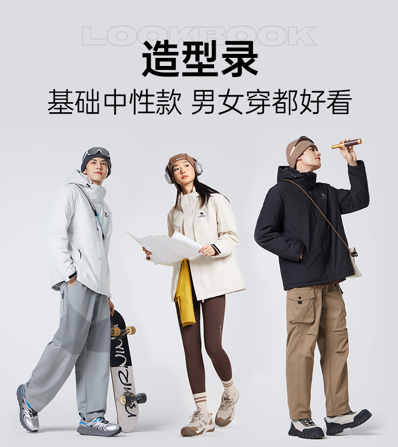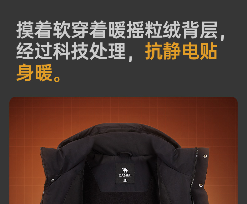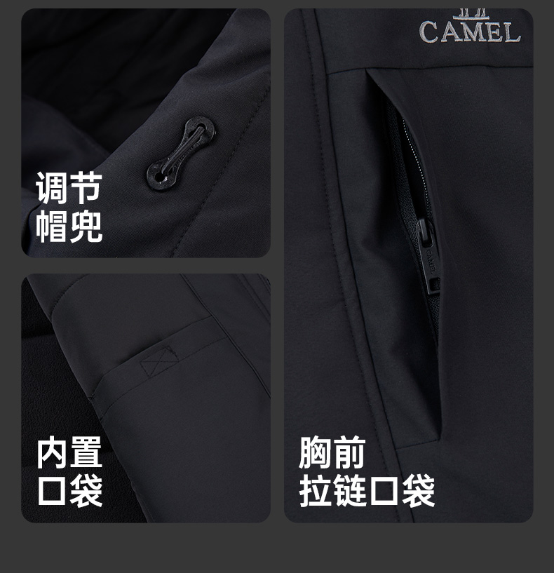 Camel Men's Cotton Jacket Autumn/Winter 2025 Hooded Couple's Fleece-Lined Thickened Warm Jacket Cotton Coat