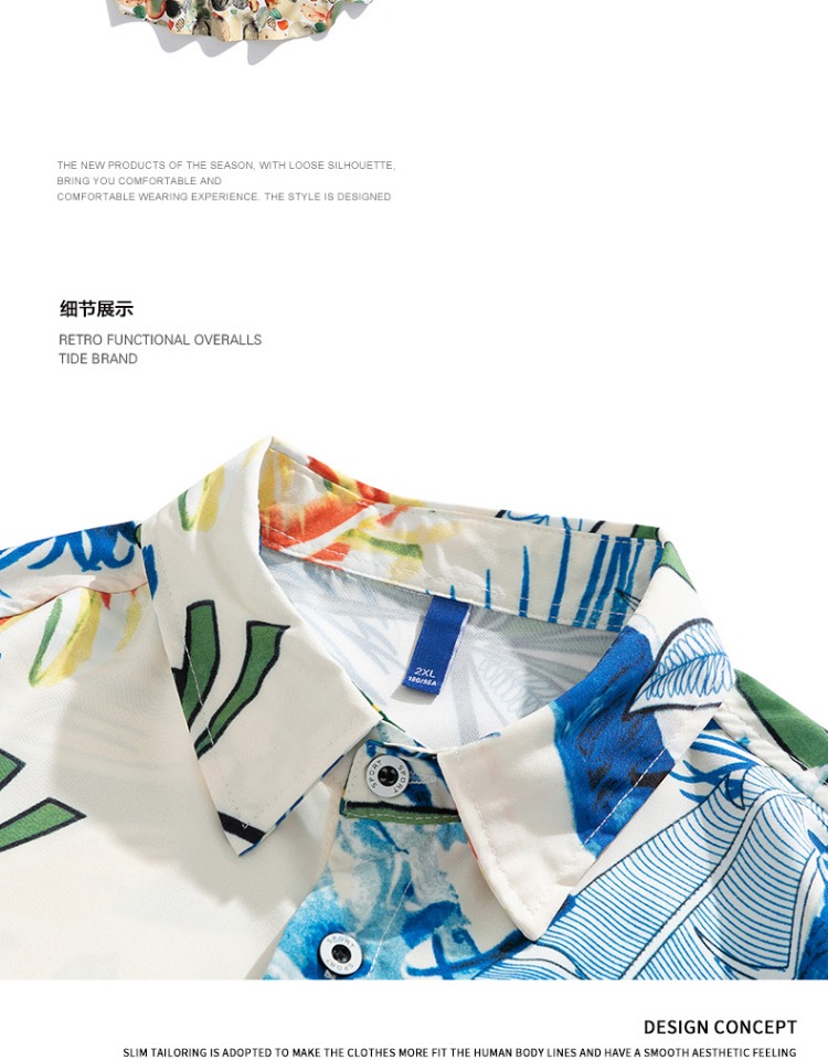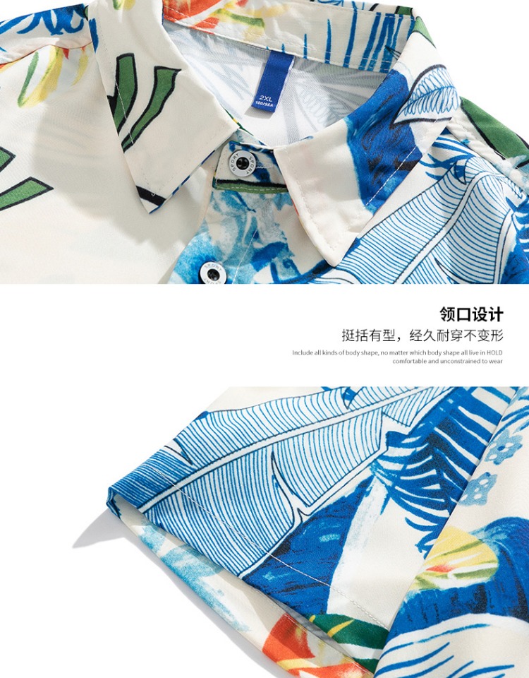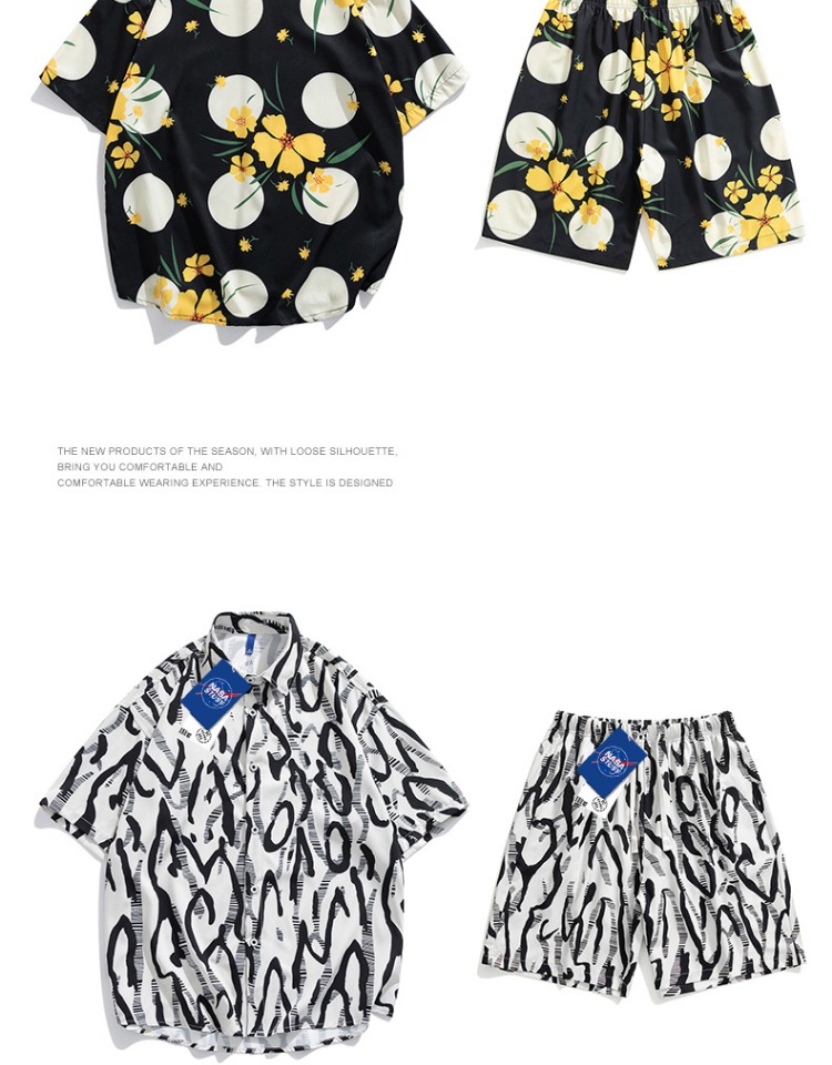 Nasa Stusy Trendy Summer Hawaiian Short-Sleeved Shirt and Shorts Set for Men, Handsome Two-Piece Set