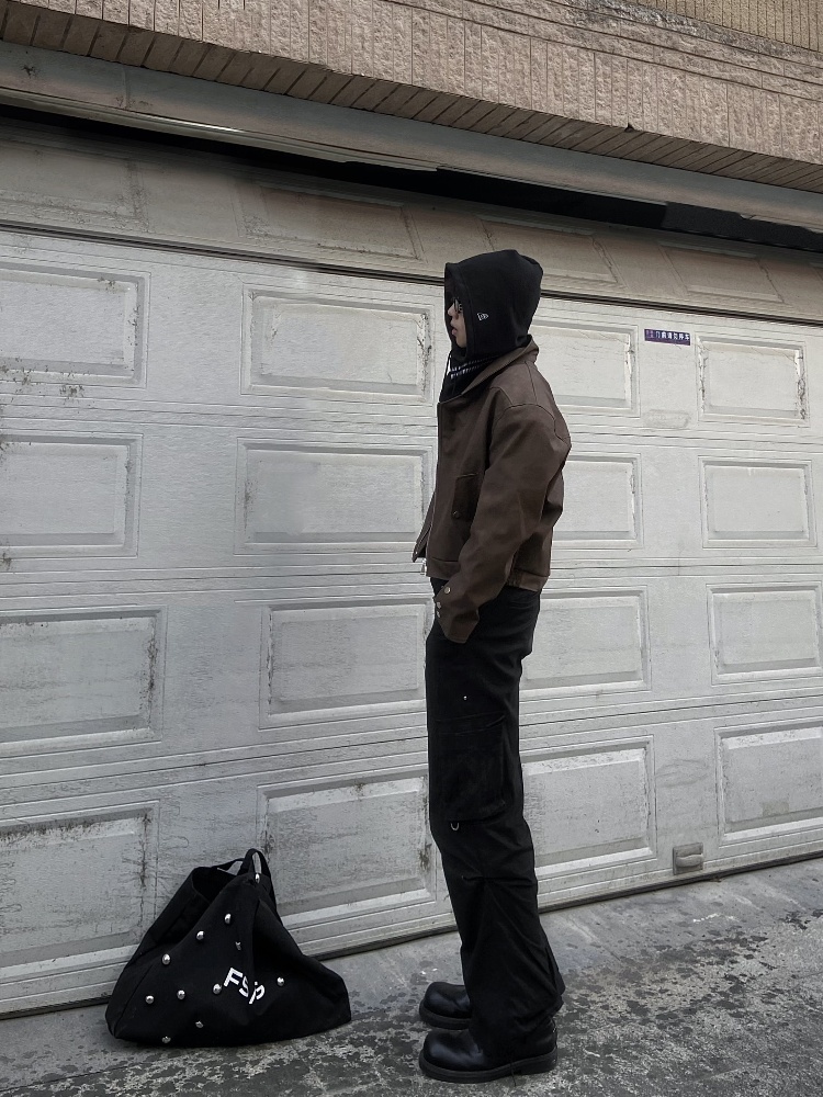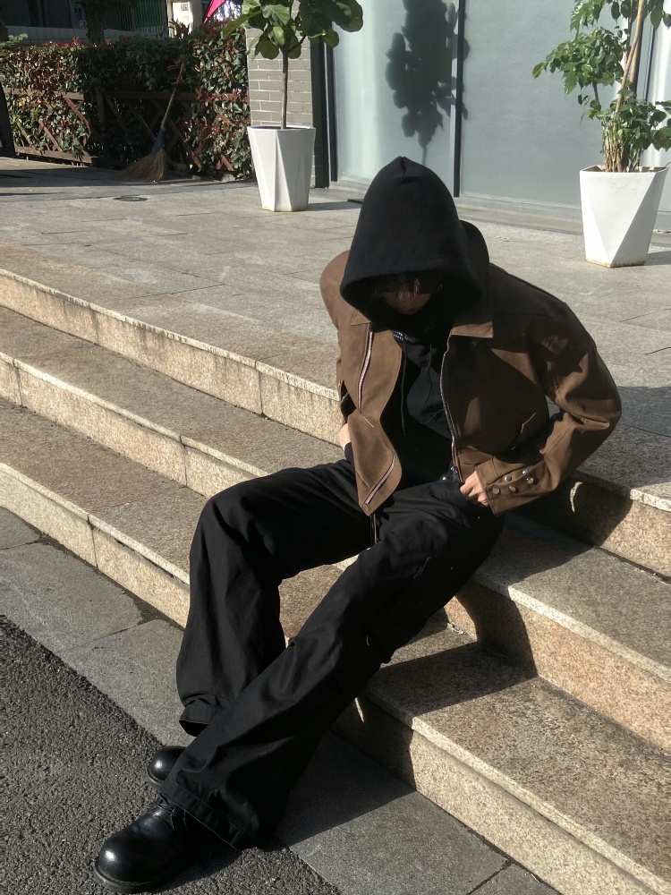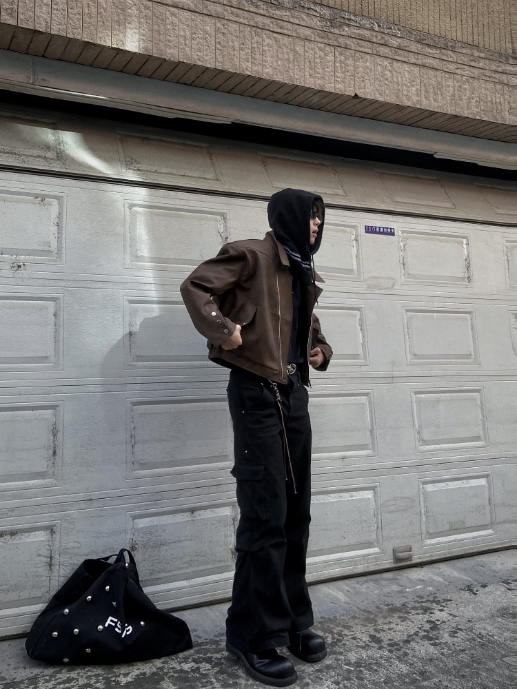 Maillard Spring and Autumn New Short Jacket American Retro Motorcycle Padded Shoulder Coat Men's Niche Trendy Brand Turn-Down Collar Leather Jacket