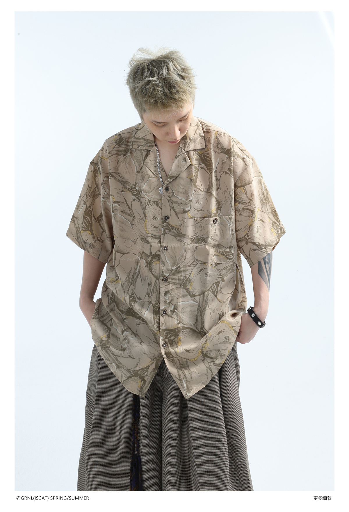 「Grnl」Midsummer Night Out Summer Cool and Loose-Fitting Half-Sleeve Shirt for Men and Women