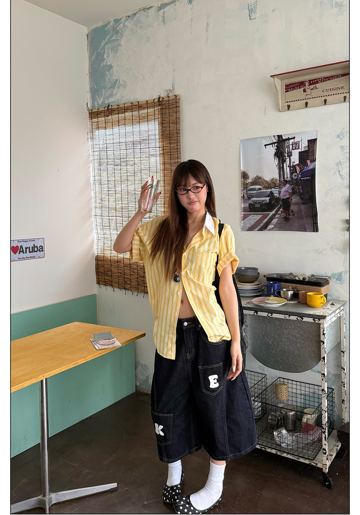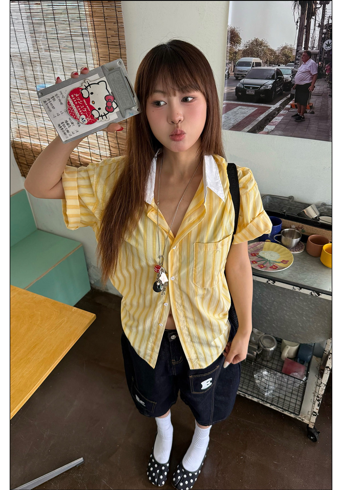 Cgga American Retro Color-Blocked Plaid Short-Sleeved Shirt for Men and Women, Summer Casual Lazy Sunscreen Dopamine Jacket