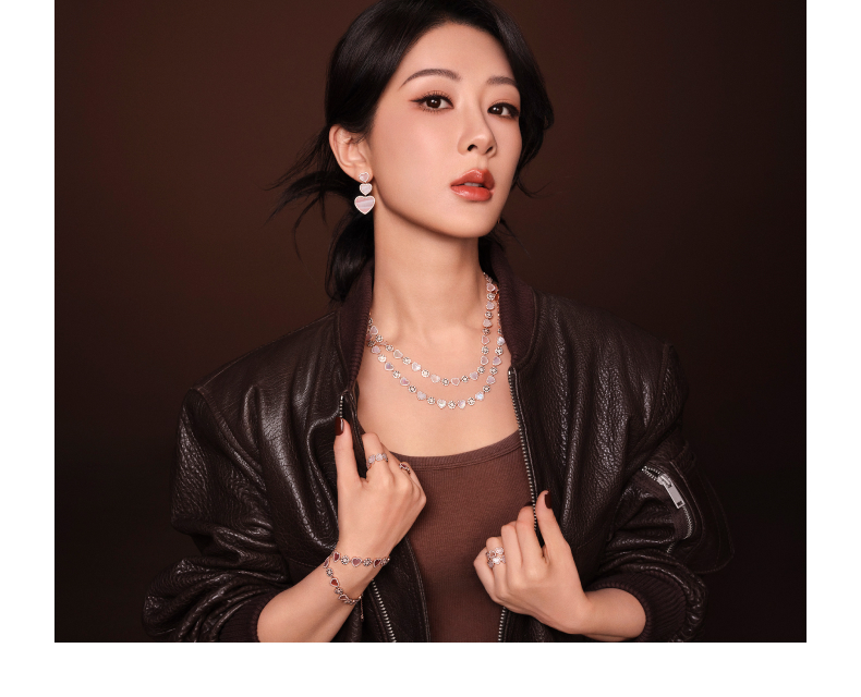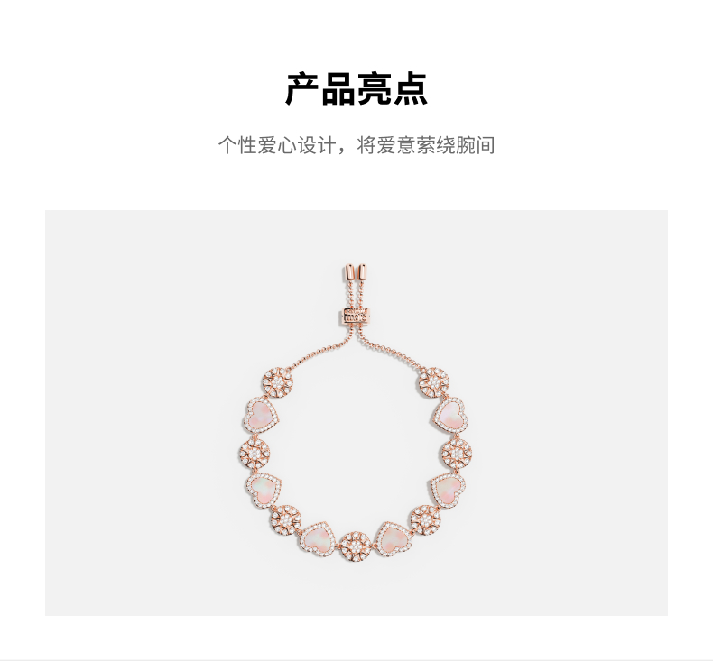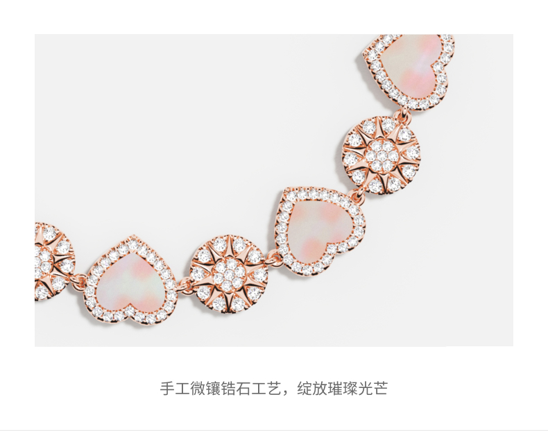 [Double 11] Apm Monaco Pink Mother-Of-Pearl Heart-Linked Adjustable Bracelet for Women, Light Luxury Fashion Birthday Gift