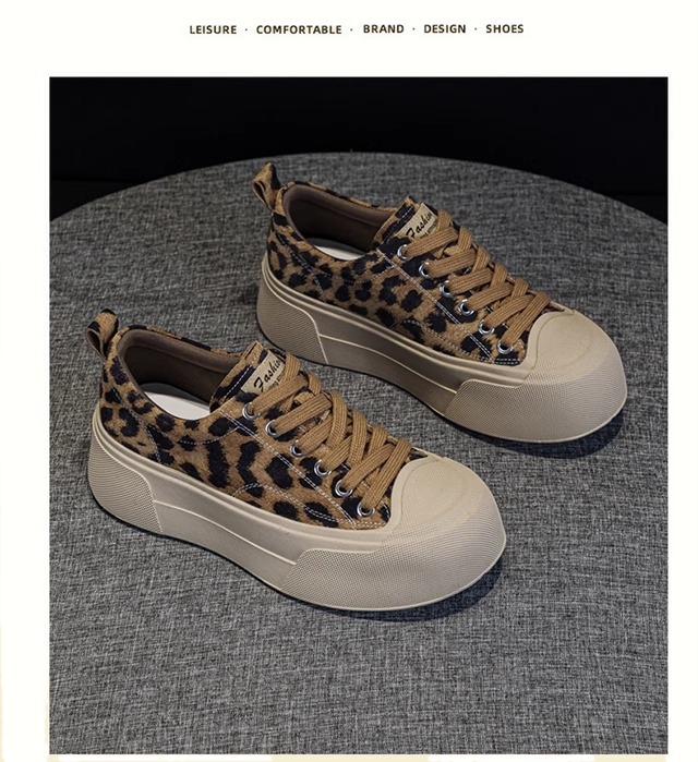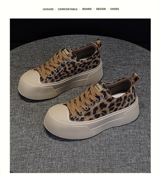 Hong Kong Genuine Leather Leopard Print Thick-Soled Fashion Sneakers for Women 2025 Spring and Autumn Versatile Height-Increasing Comfortable Casual Shoes