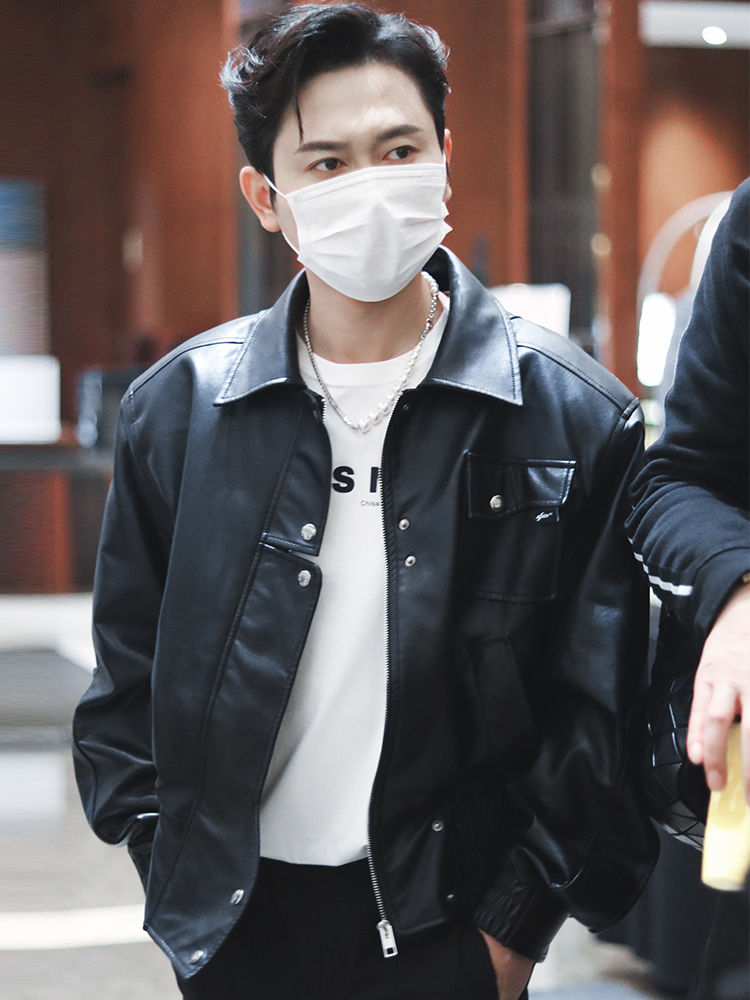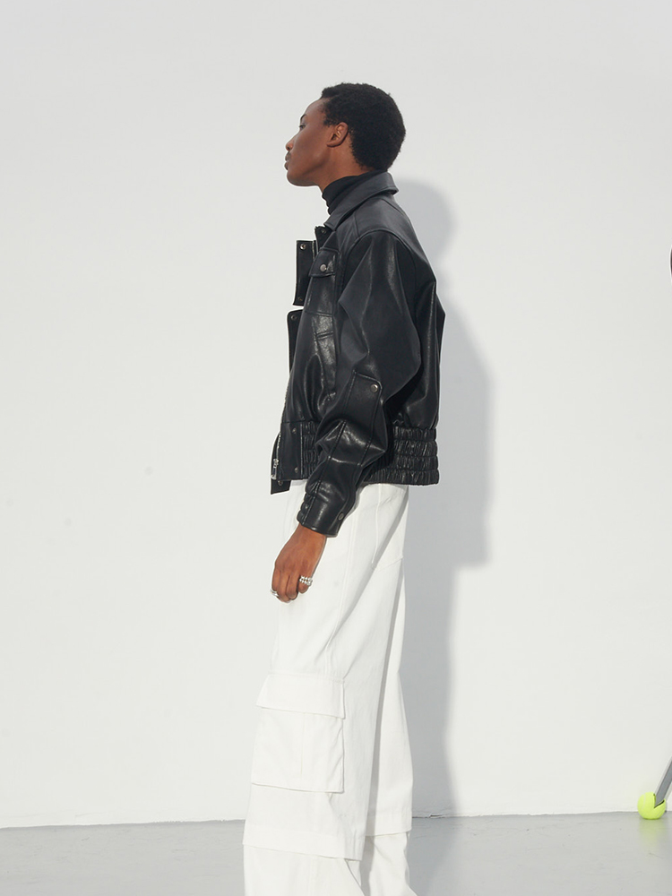Asseen Designer Original Design Wide-Shoulder Vintage Biker Leather Jacket, Same Style as Worn by Wang Yibo, Fan Chengcheng, and Gong Jun