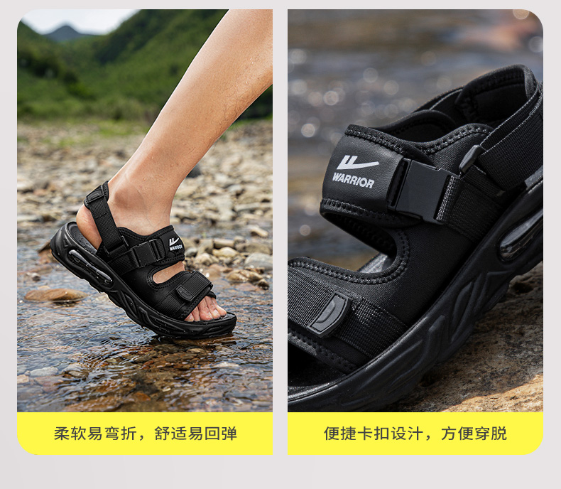 Warrior Men's Shoes 2025 New Summer Breathable Sports Sandals Men's Thick-Soled Height-Increasing Men's Slip-On Sandals Men's Shoes