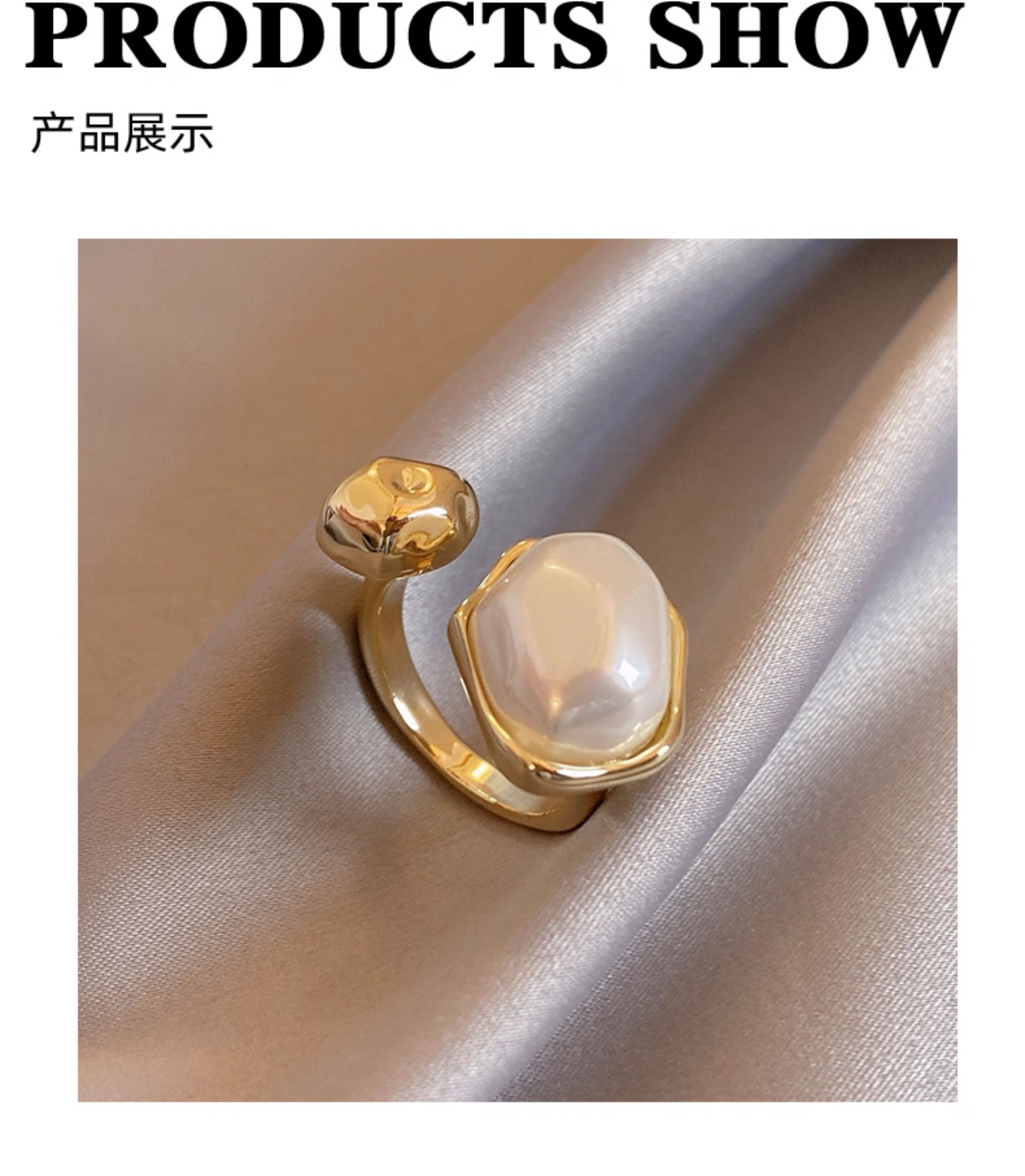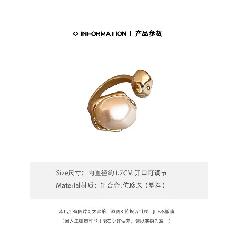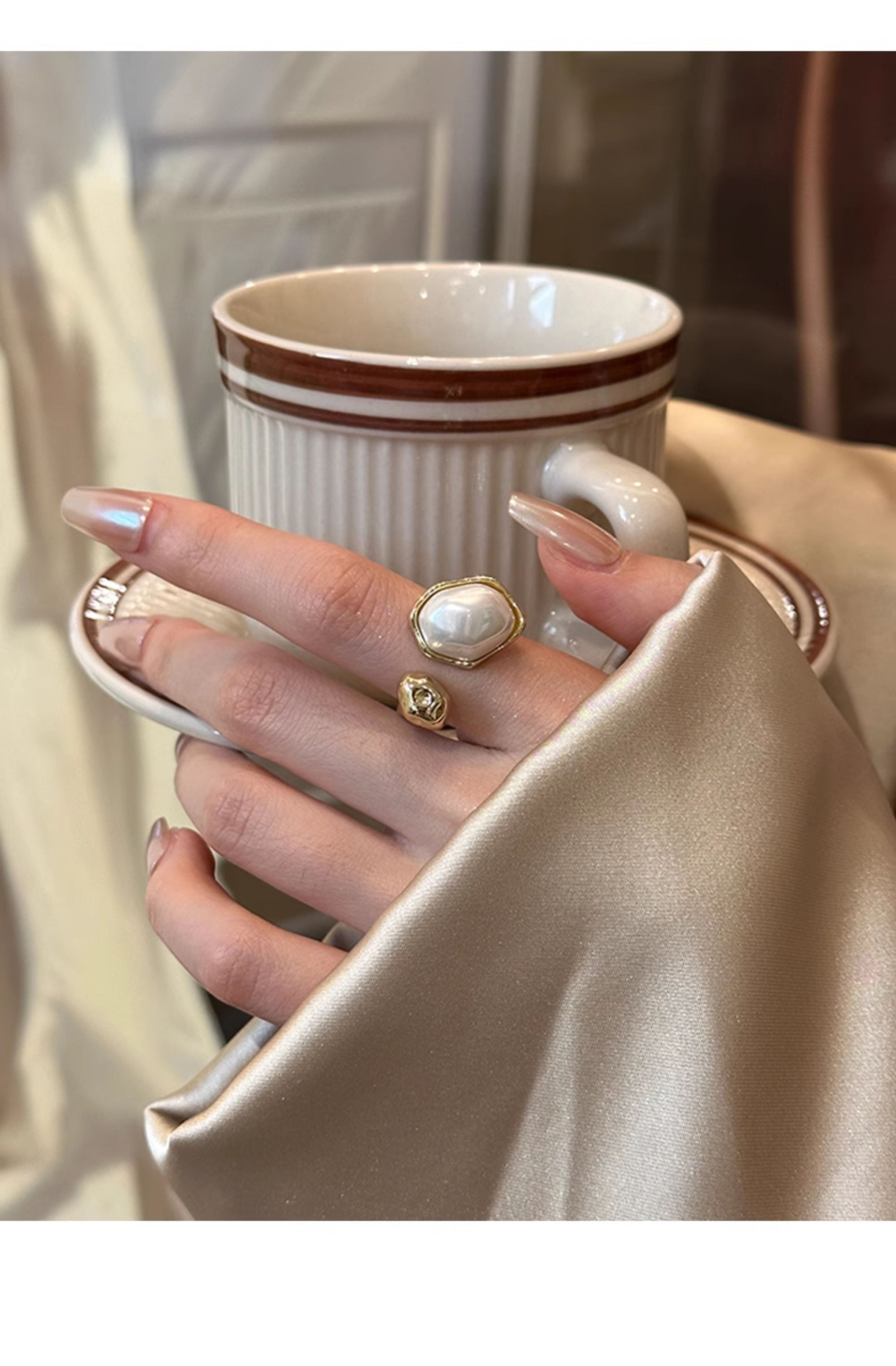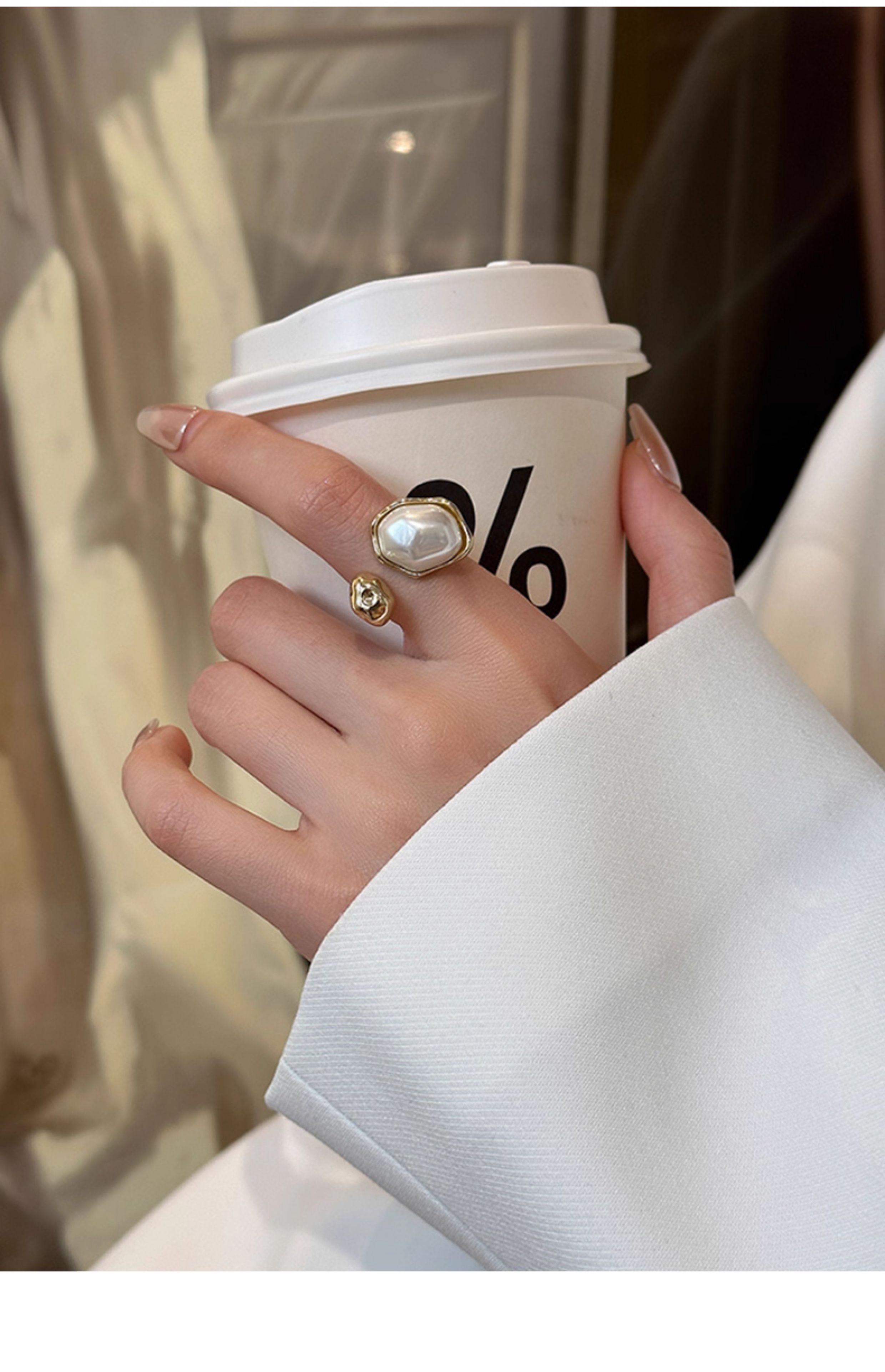 Baroque Imitation Pearl Ring for Women, Niche Design, Light Luxury, High-End Feel, Open-Ended Index Finger Ring, 2025 New Model Ring