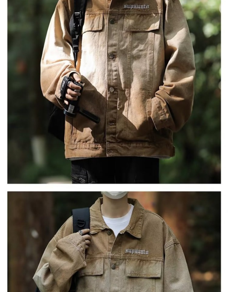 Fleece-Lined Denim Jacket for Men, High-End, Cool and Trendy, Large Size, American Retro, Loose Casual Workwear Jacket for Autumn and Winter