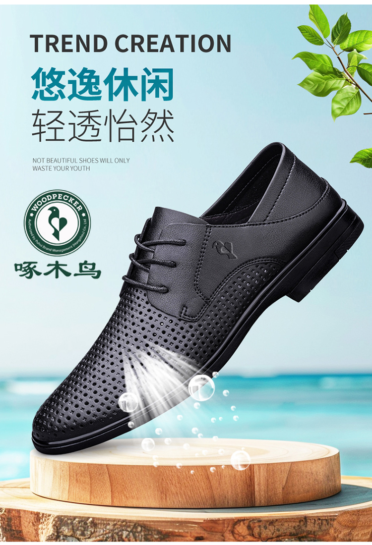 Woodpecker Men's Shoes 2025 Summer New Genuine Leather Hollow Breathable Casual Leather Shoes Soft Leather Soft Sole Two-Way Wear Dad Shoes