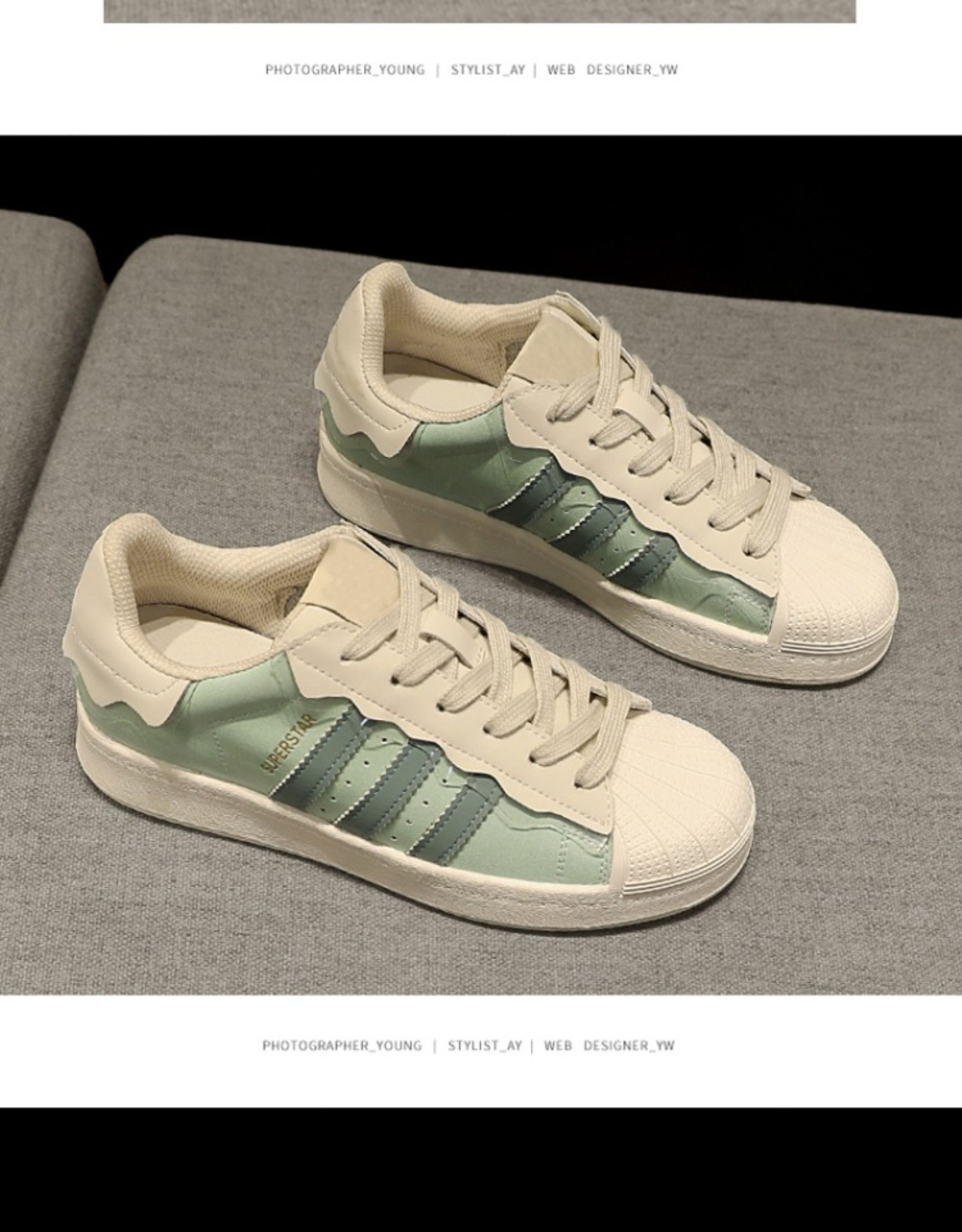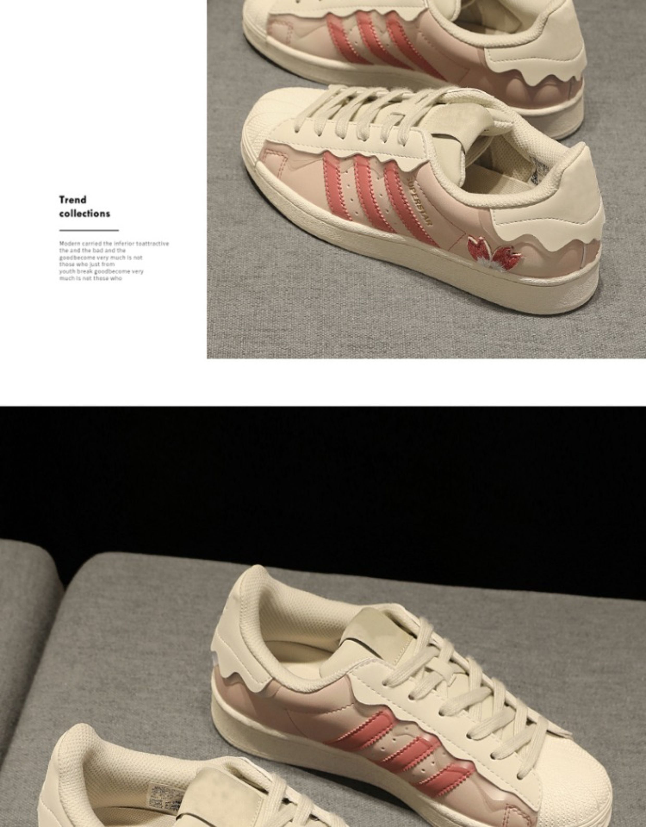 Hong Kong 2025 Spring and Autumn New Style Cherry Blossom Pink Shell Toe Cream Lace Genuine Leather White Sneakers Women's Sports Casual Shoes