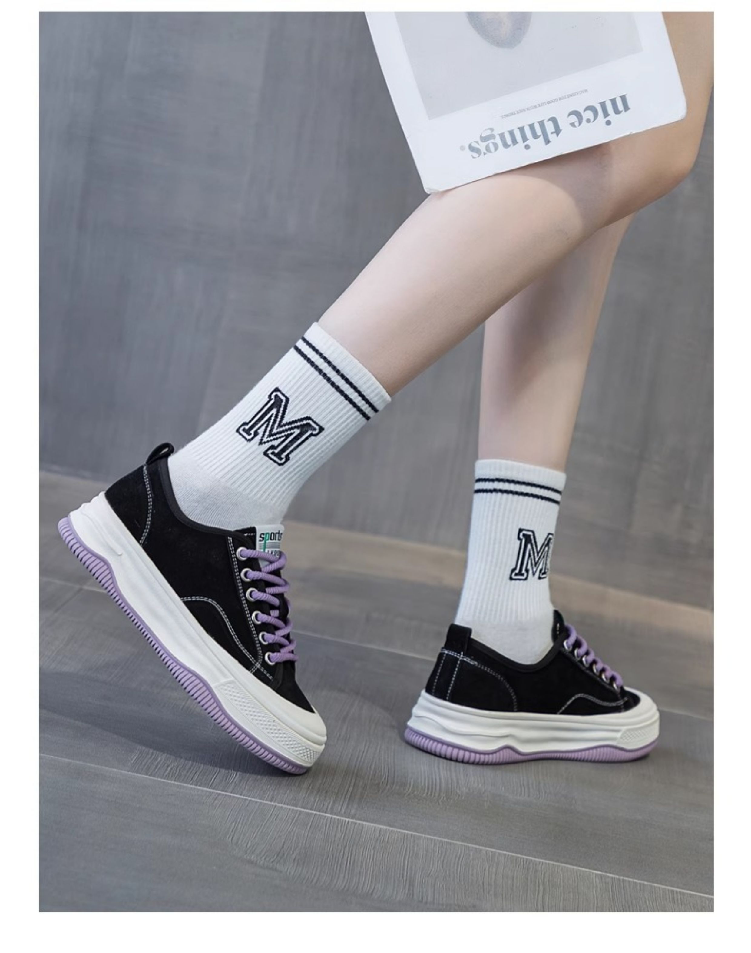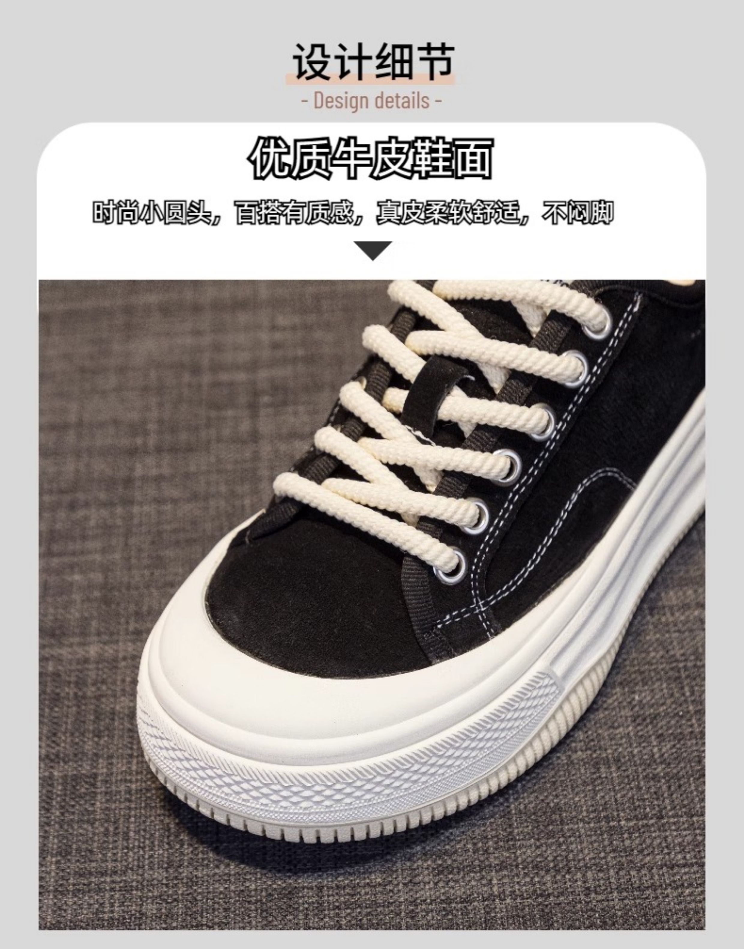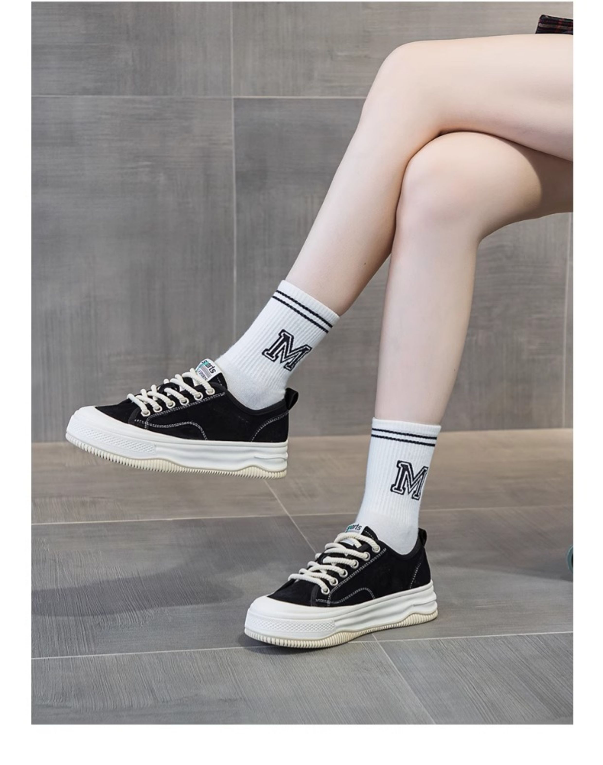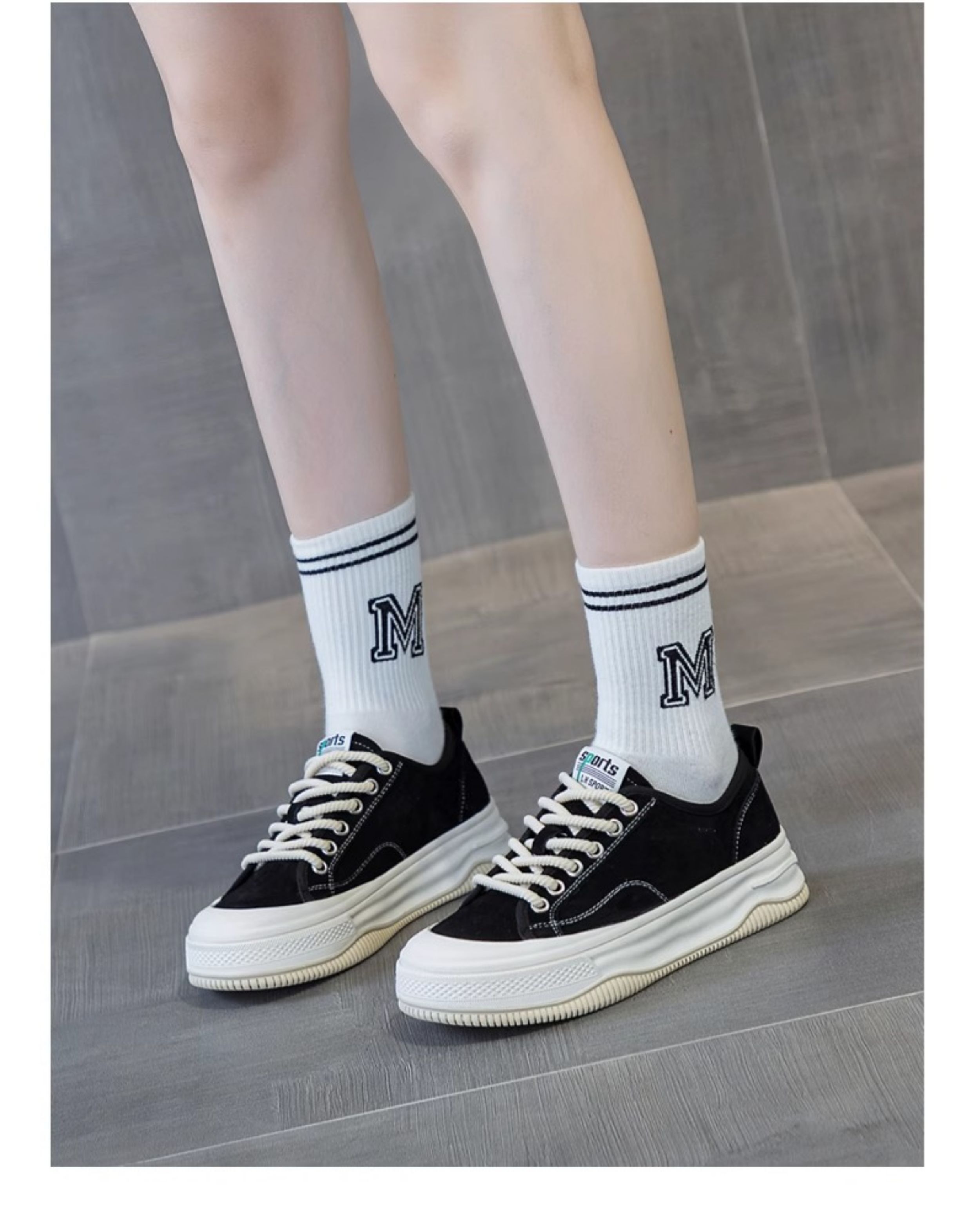 Hong Kong Genuine Leather Sneakers for Women 2025 Spring and Autumn New Versatile Korean Style Lace-Up Flat Shoes Thick-Soled Sports Casual Shoes
