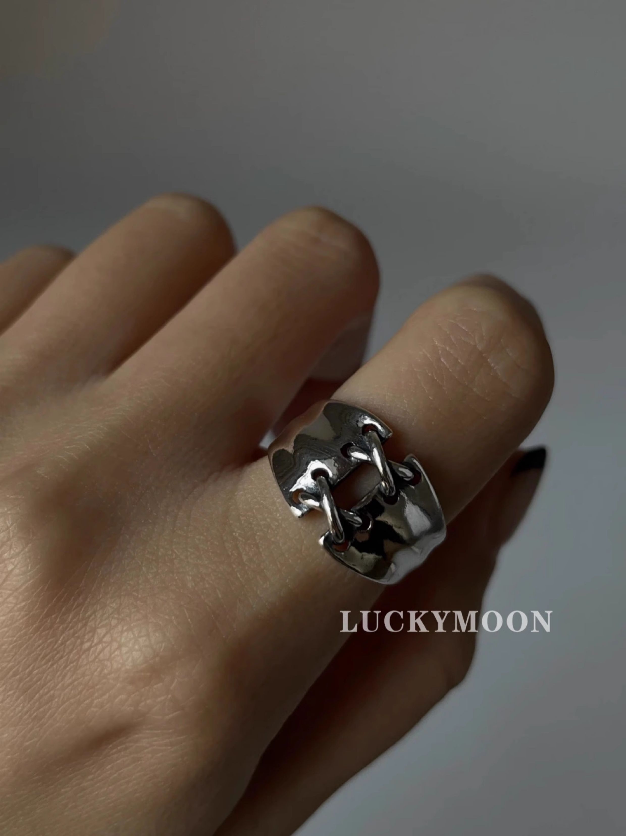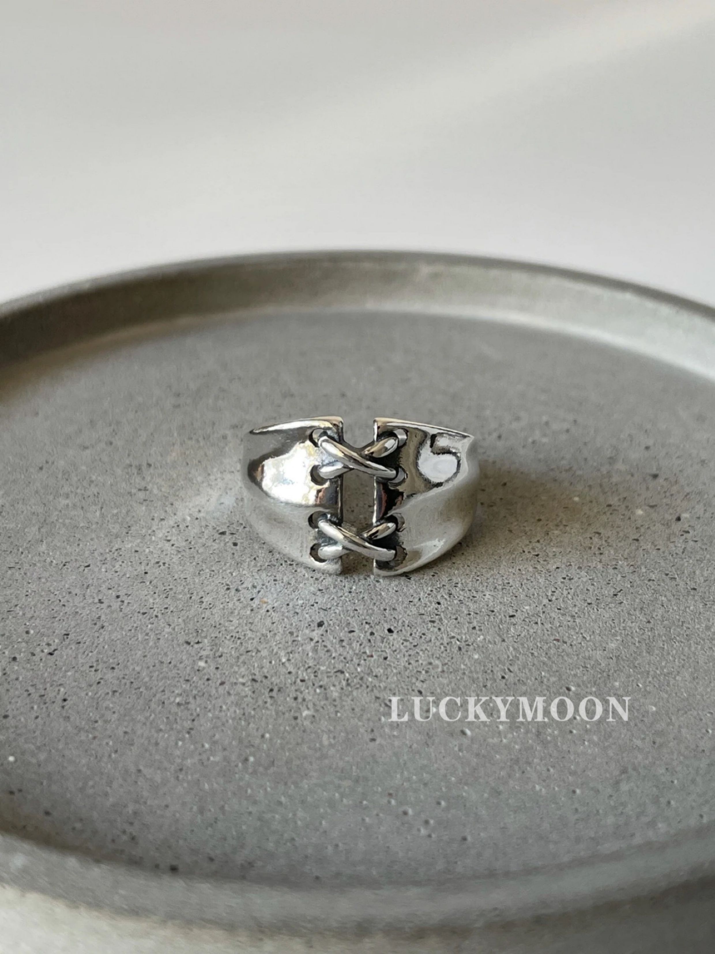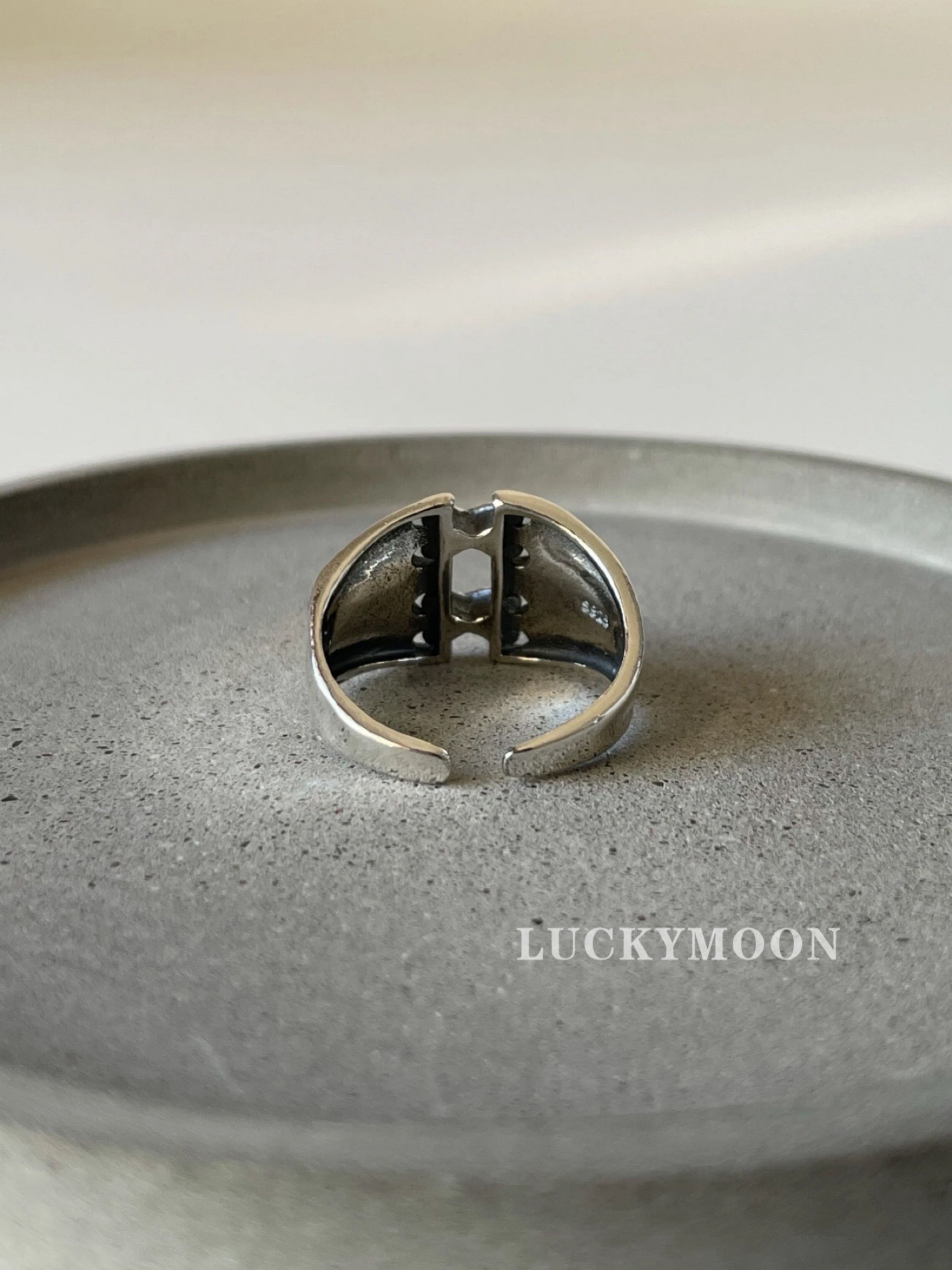 Luckymoon Vintage Distressed Strap Ring S925 All-Over Sterling Silver Open Adjustable R094