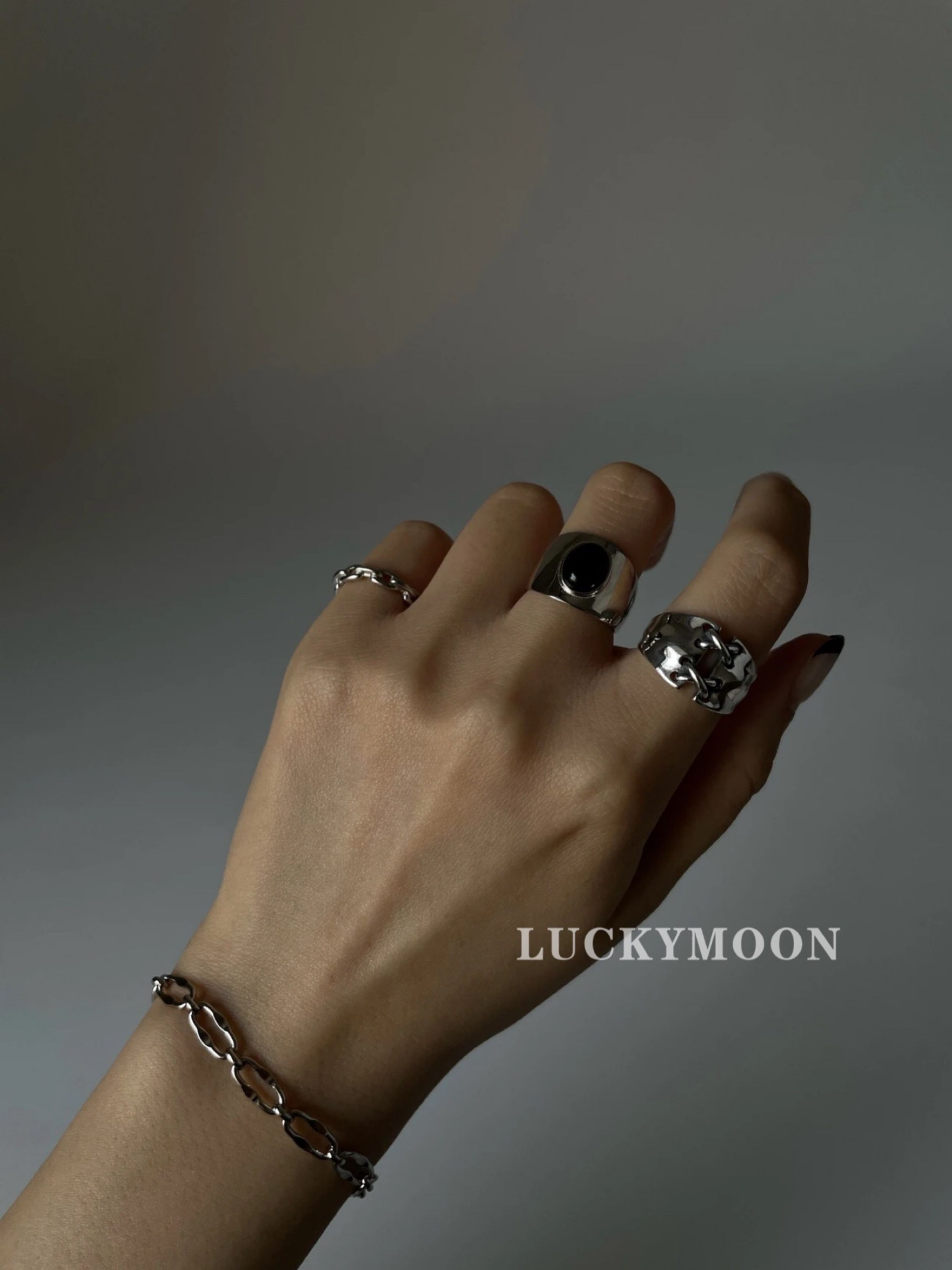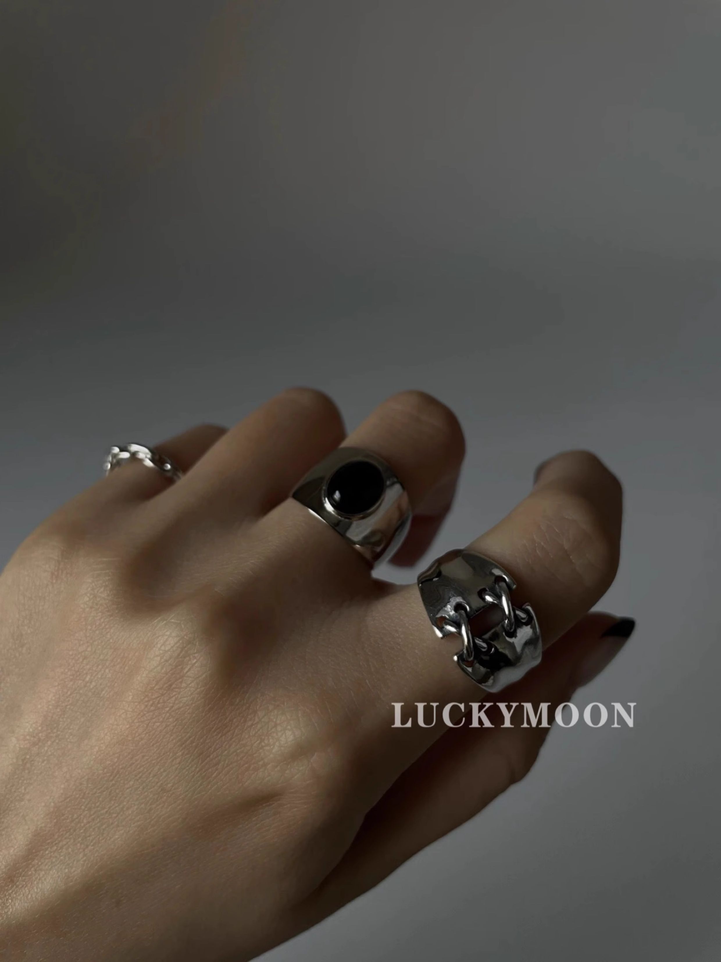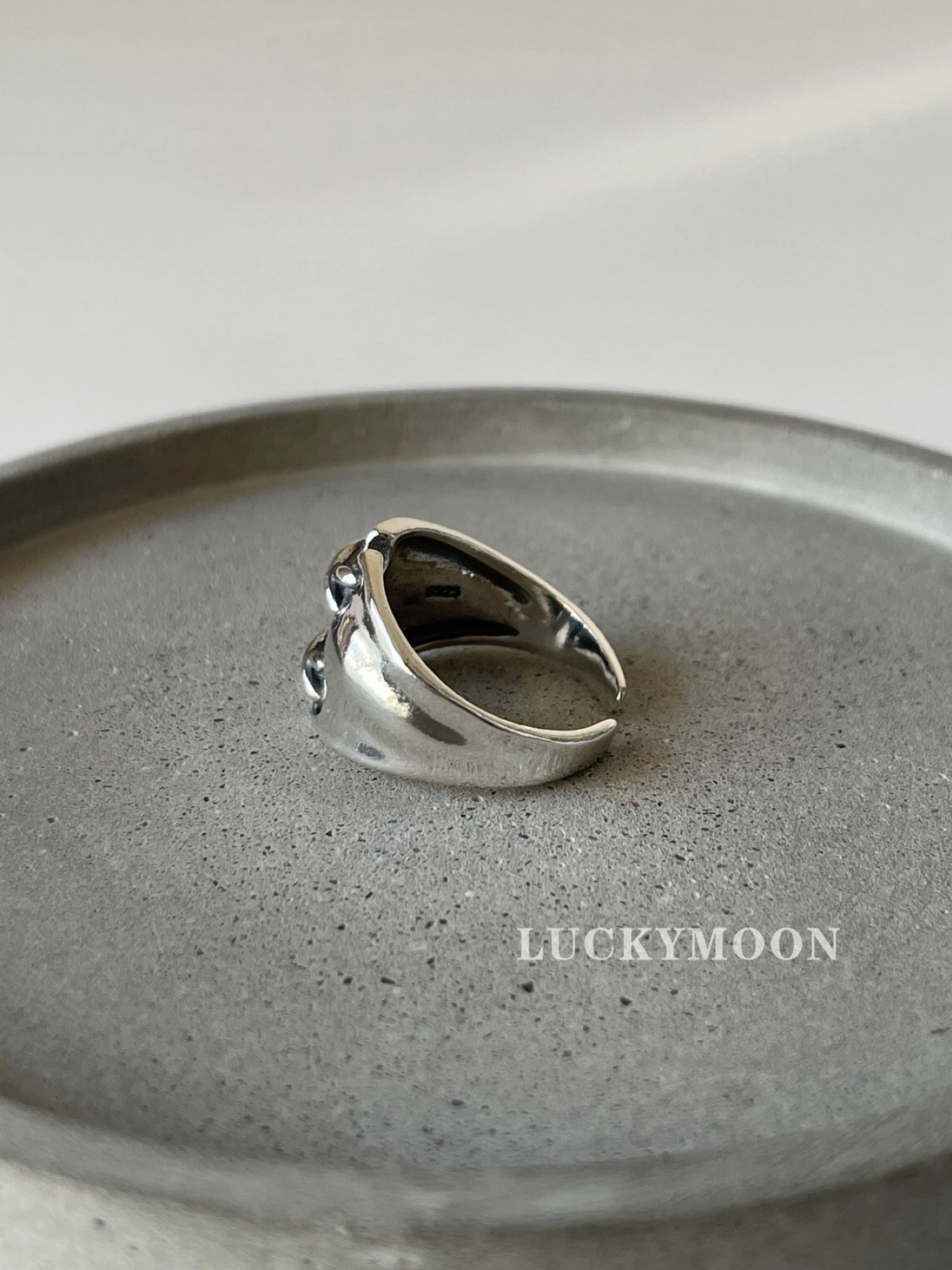 Luckymoon Vintage Distressed Strap Ring S925 All-Over Sterling Silver Open Adjustable R094