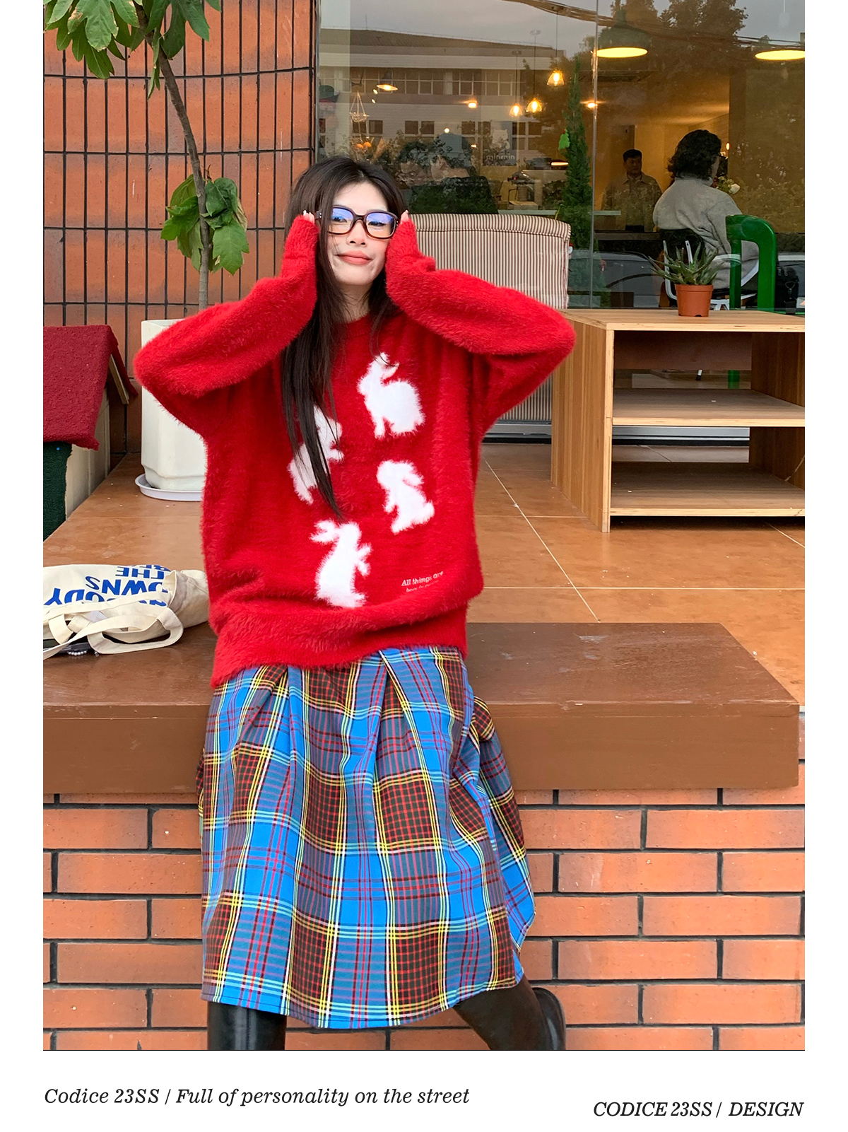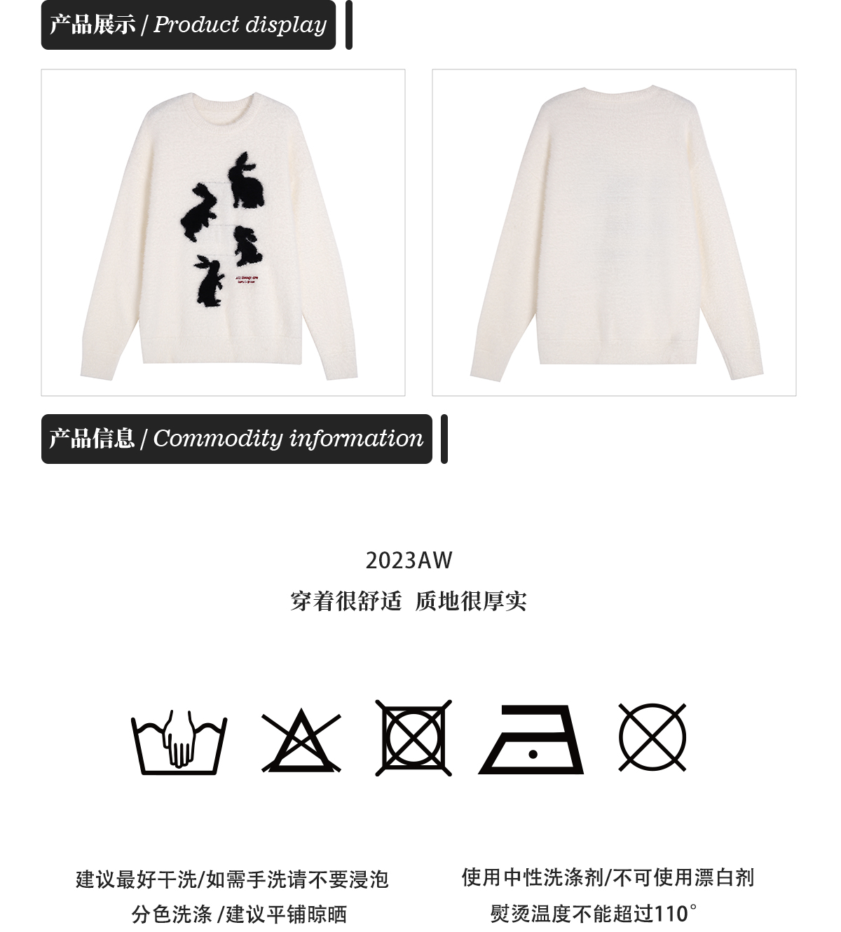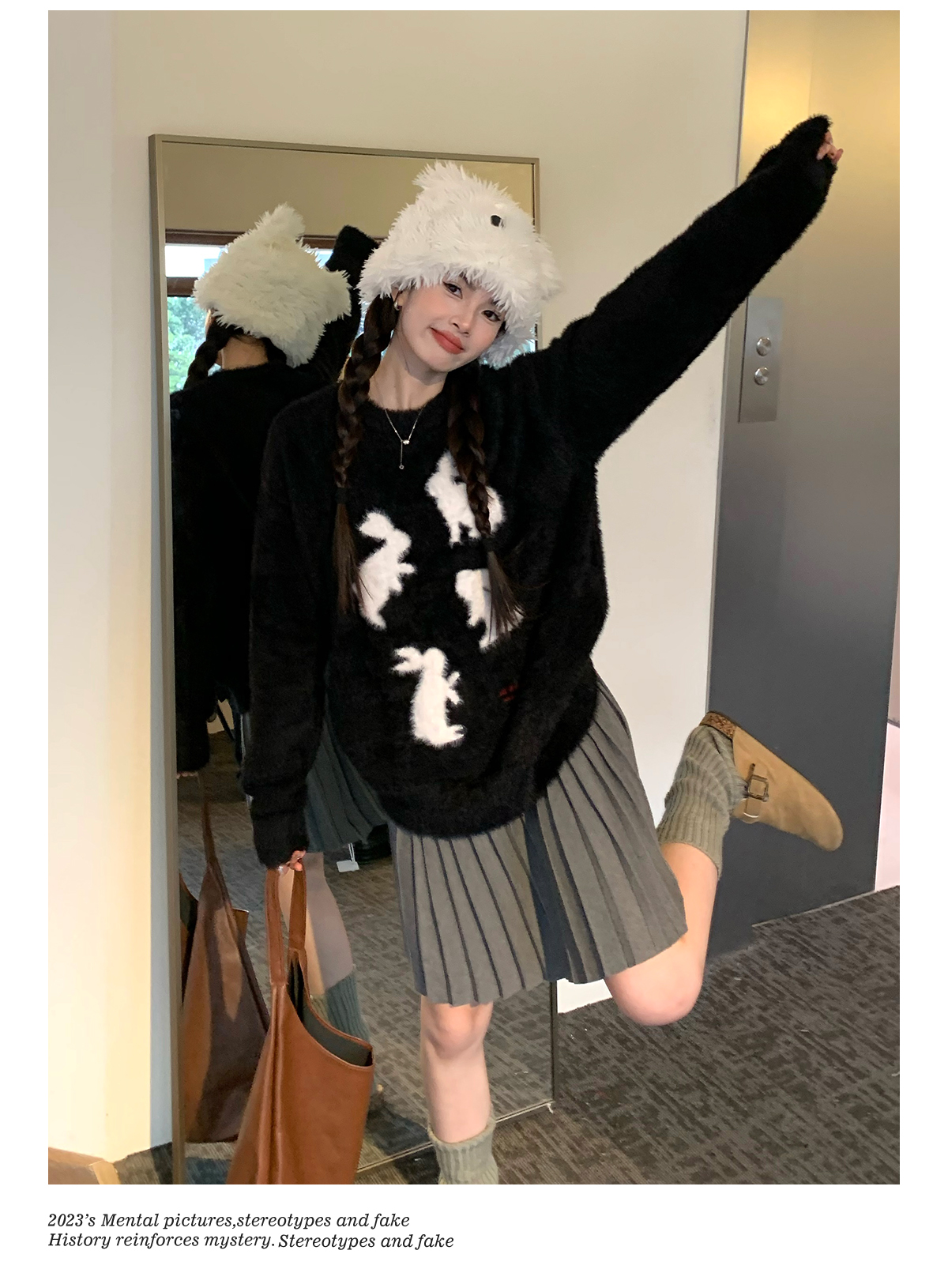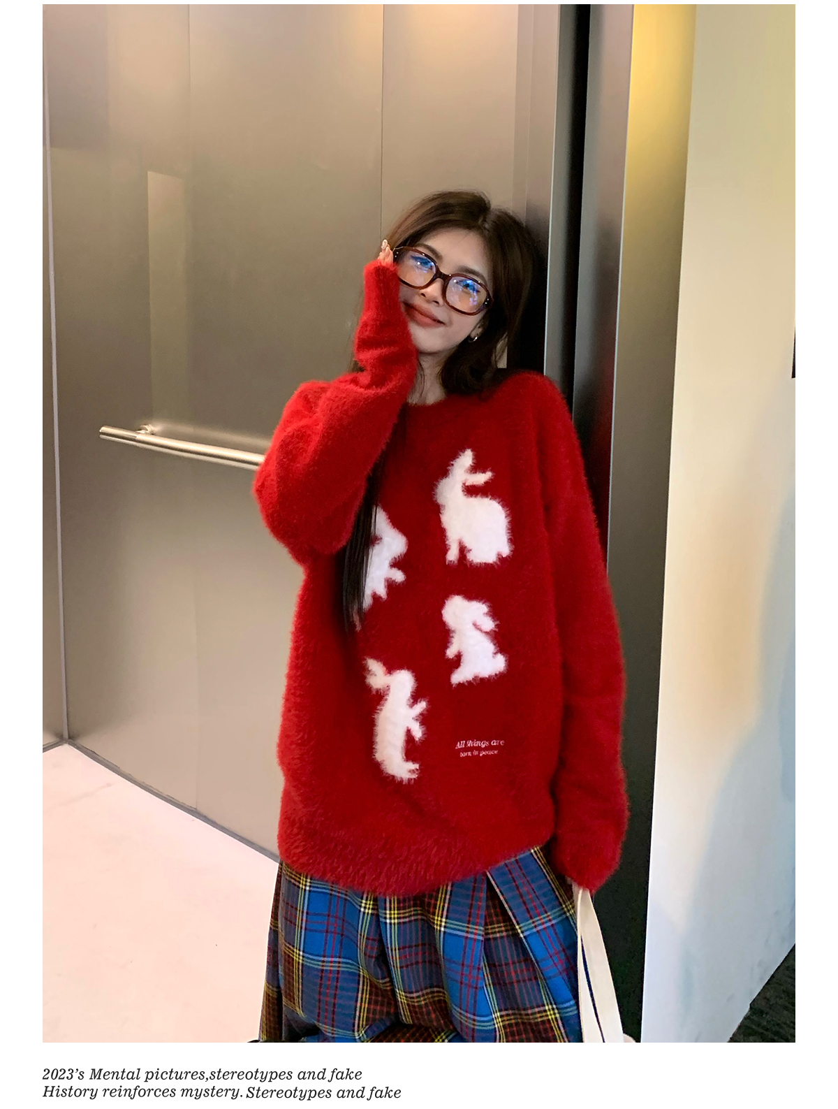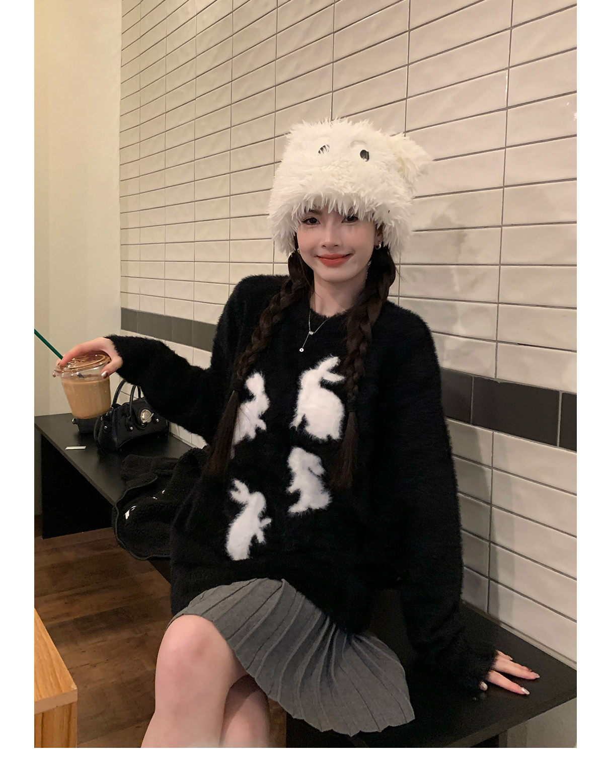 Codice Lab Rabbit Retro Silhouette Mink Fur Round Neck Sweater Versatile Cute Lazy Sweater Women's Knitwear