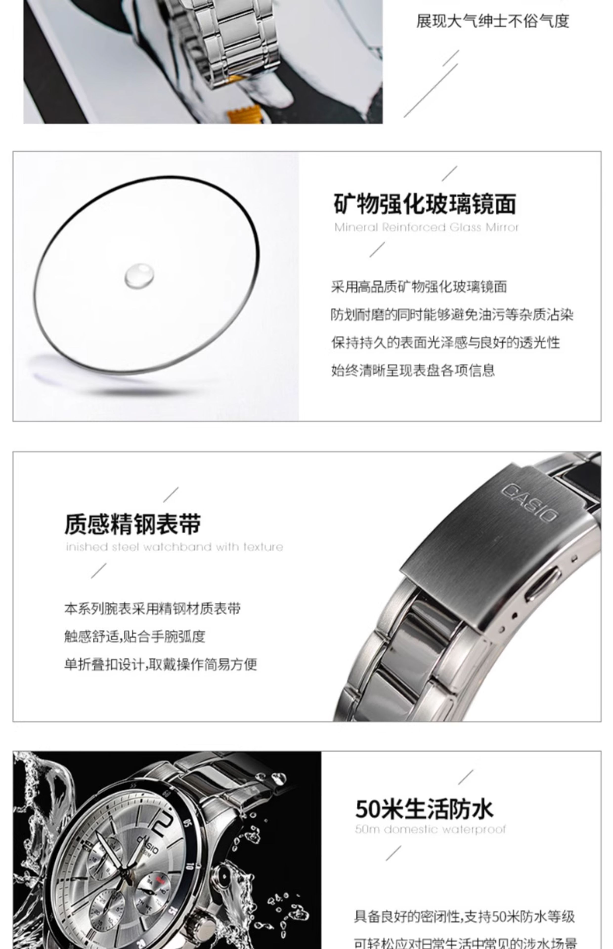 Casio Watch Men's Watch Official Flagship Genuine Business Quartz Analog Watch Exam Watch Student Watch Men's Gift