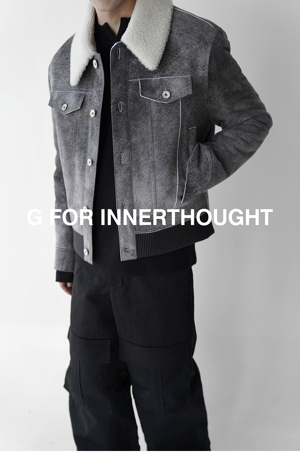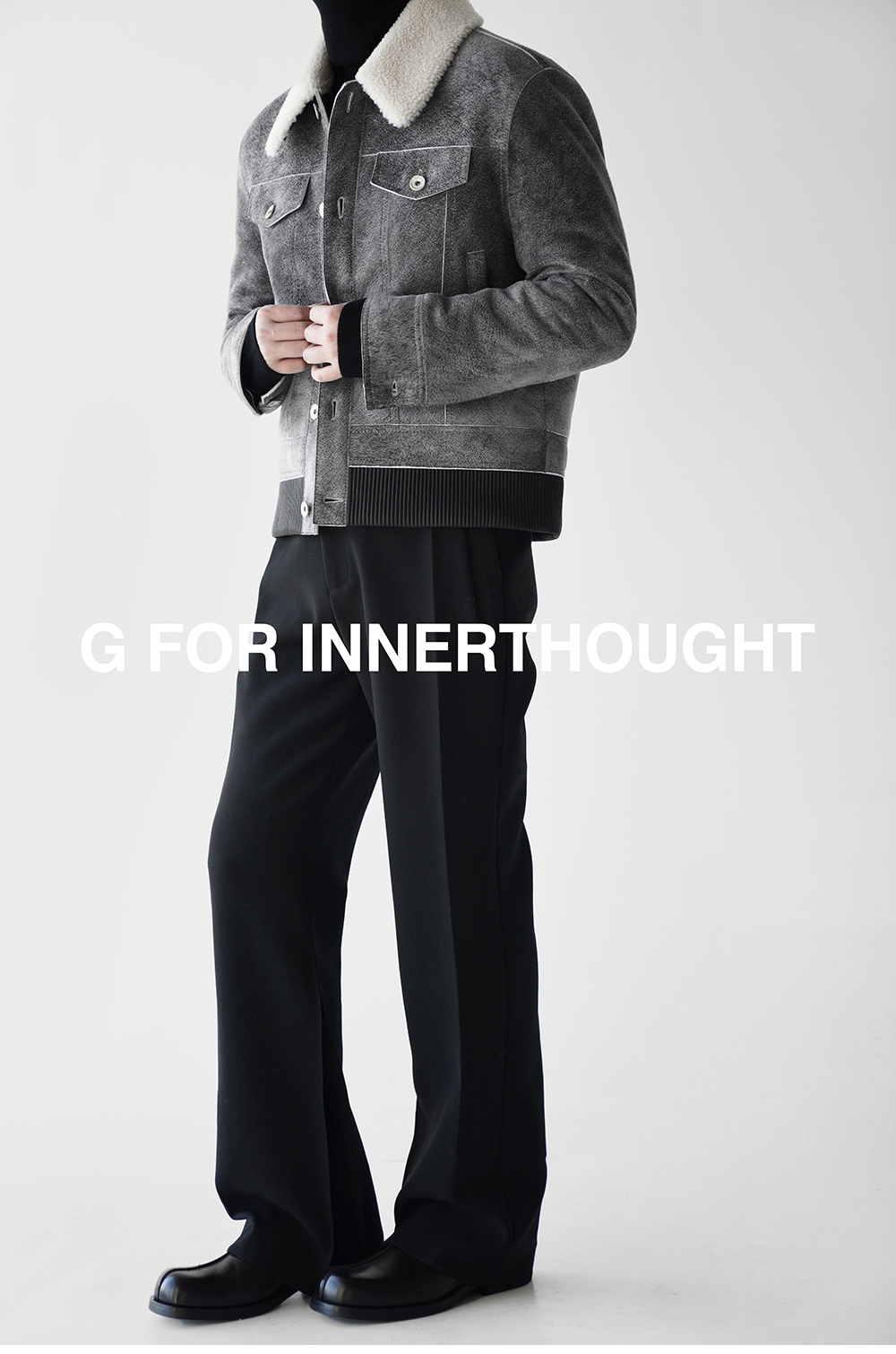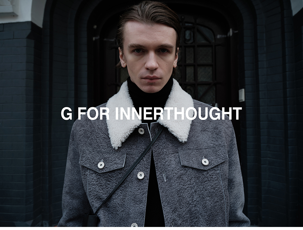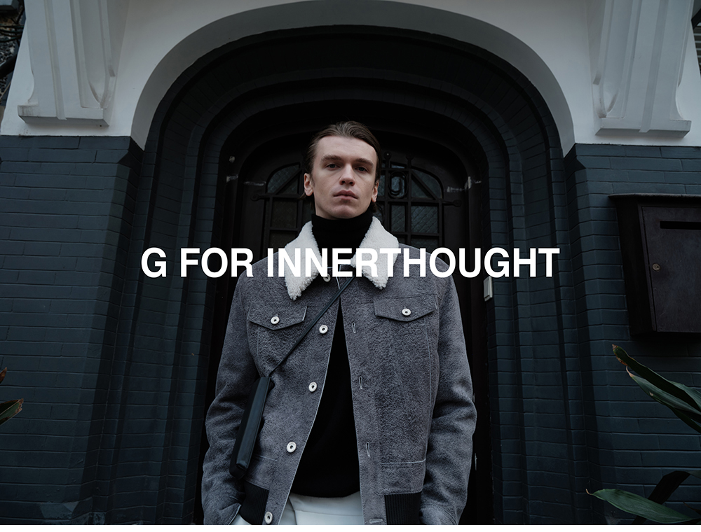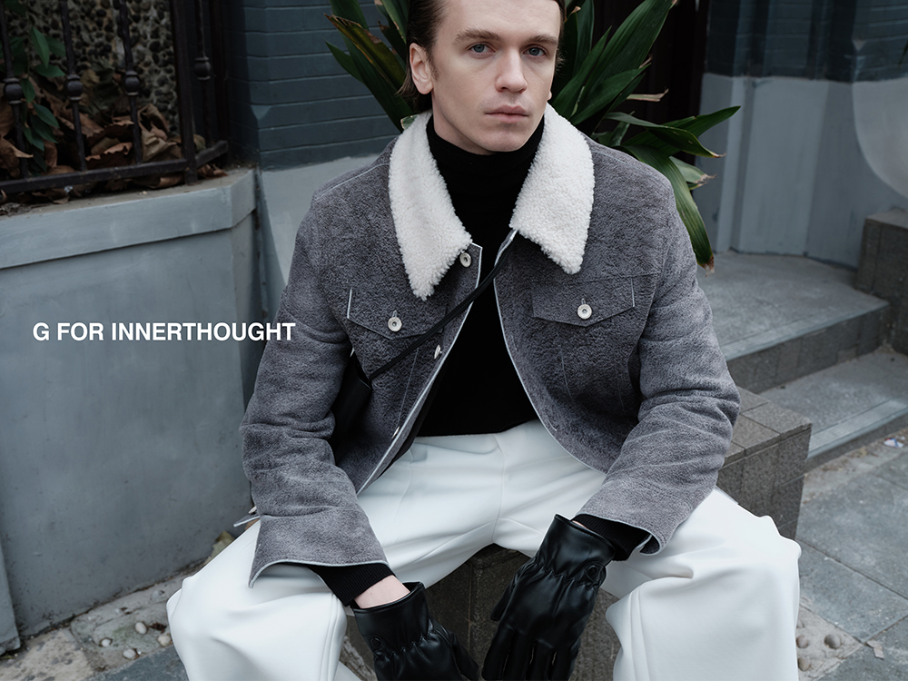 G for Inner Thought | Italian Md Leather Factory Denim Gray Blue Cashmere Leather Camel Hair Jacket for Men