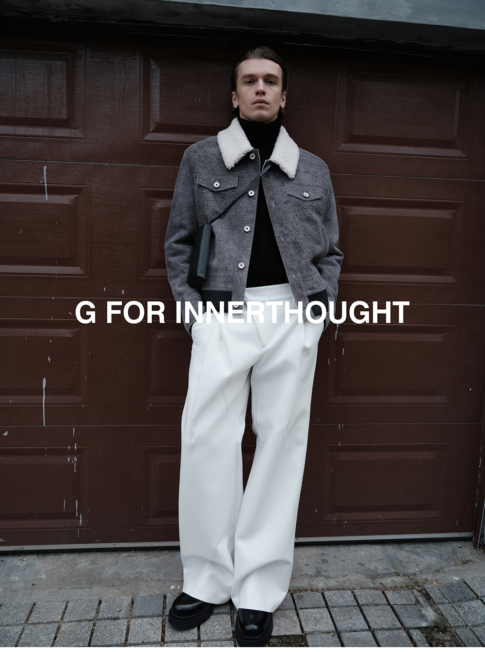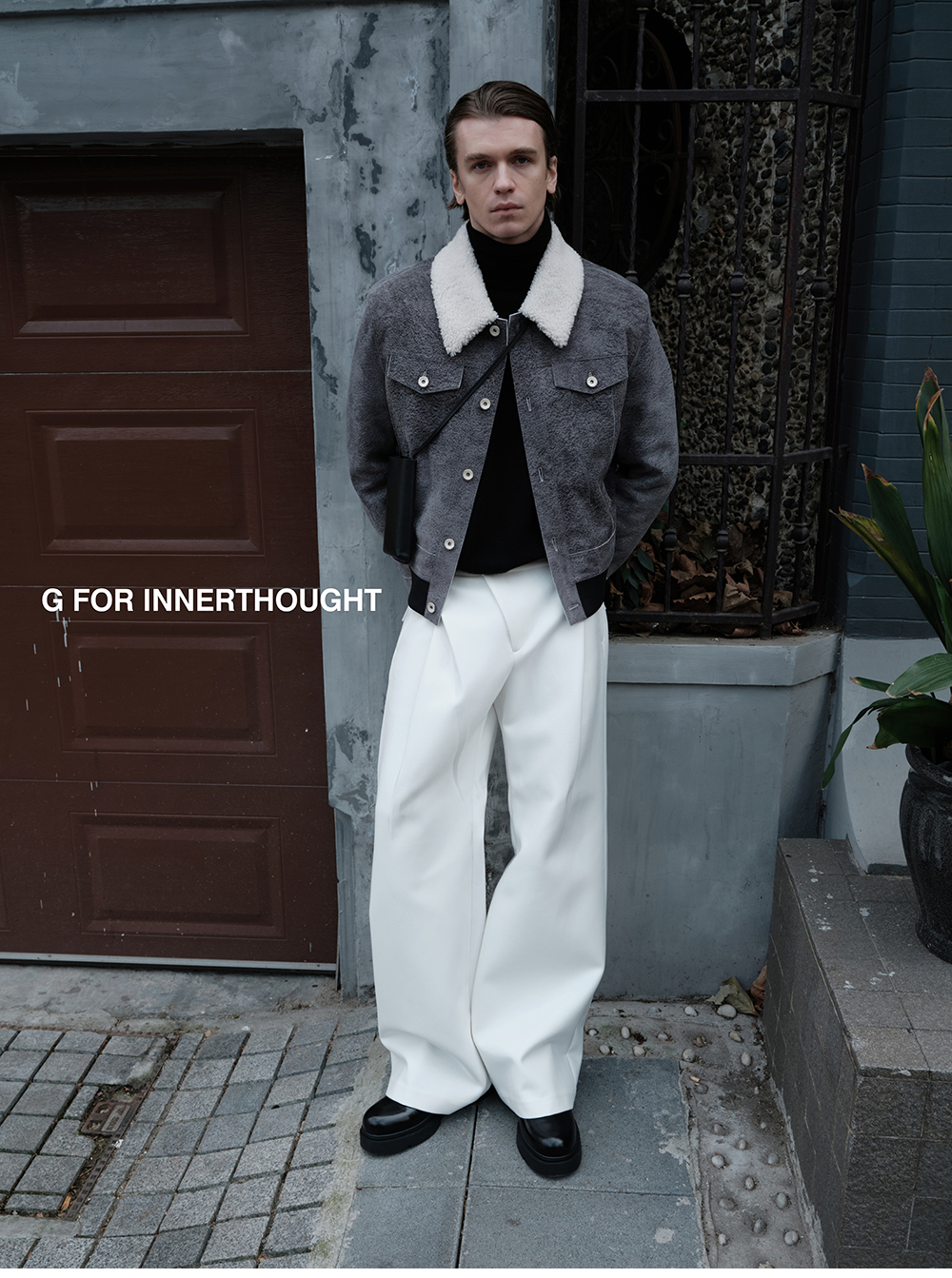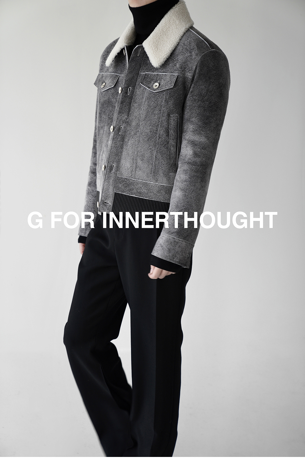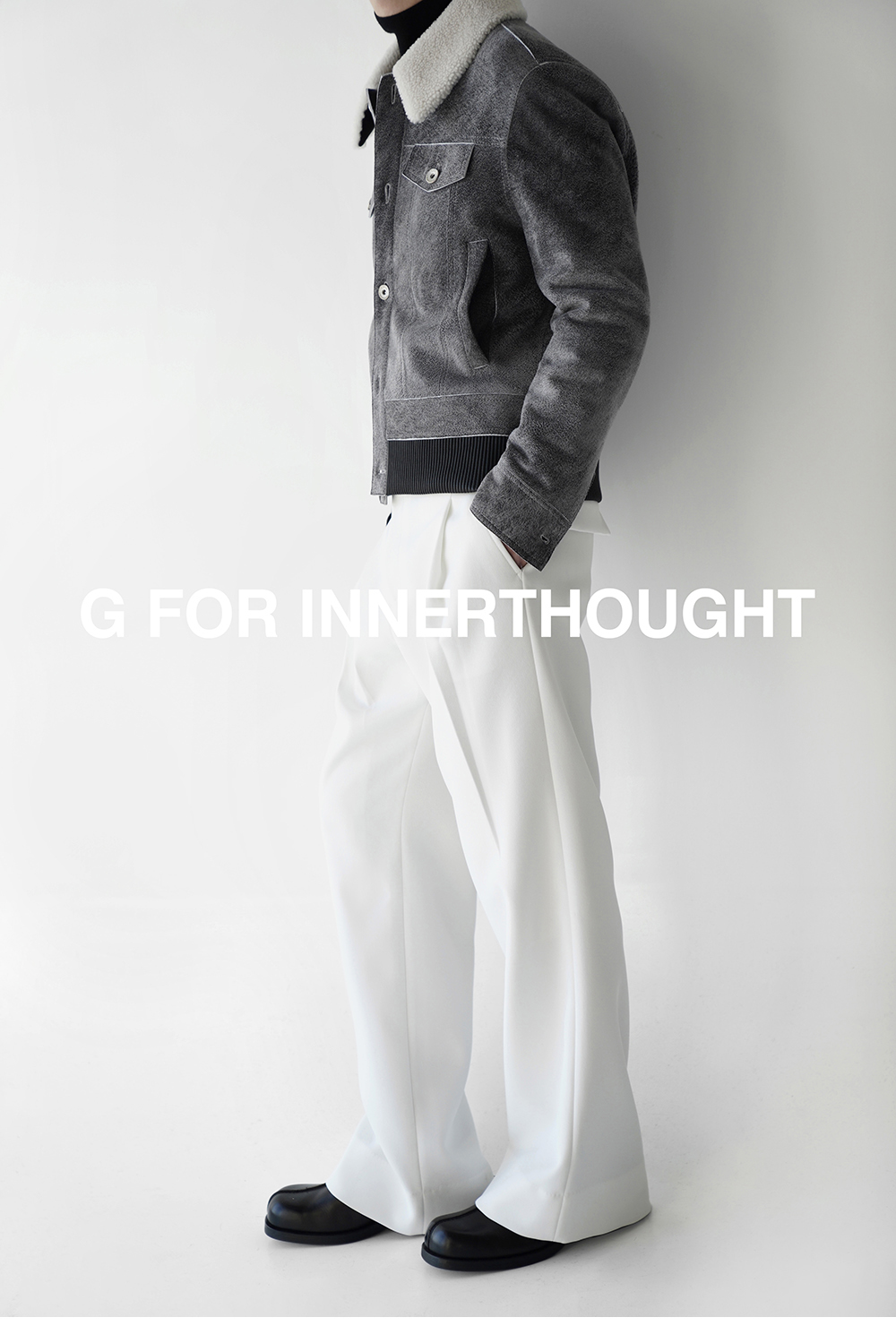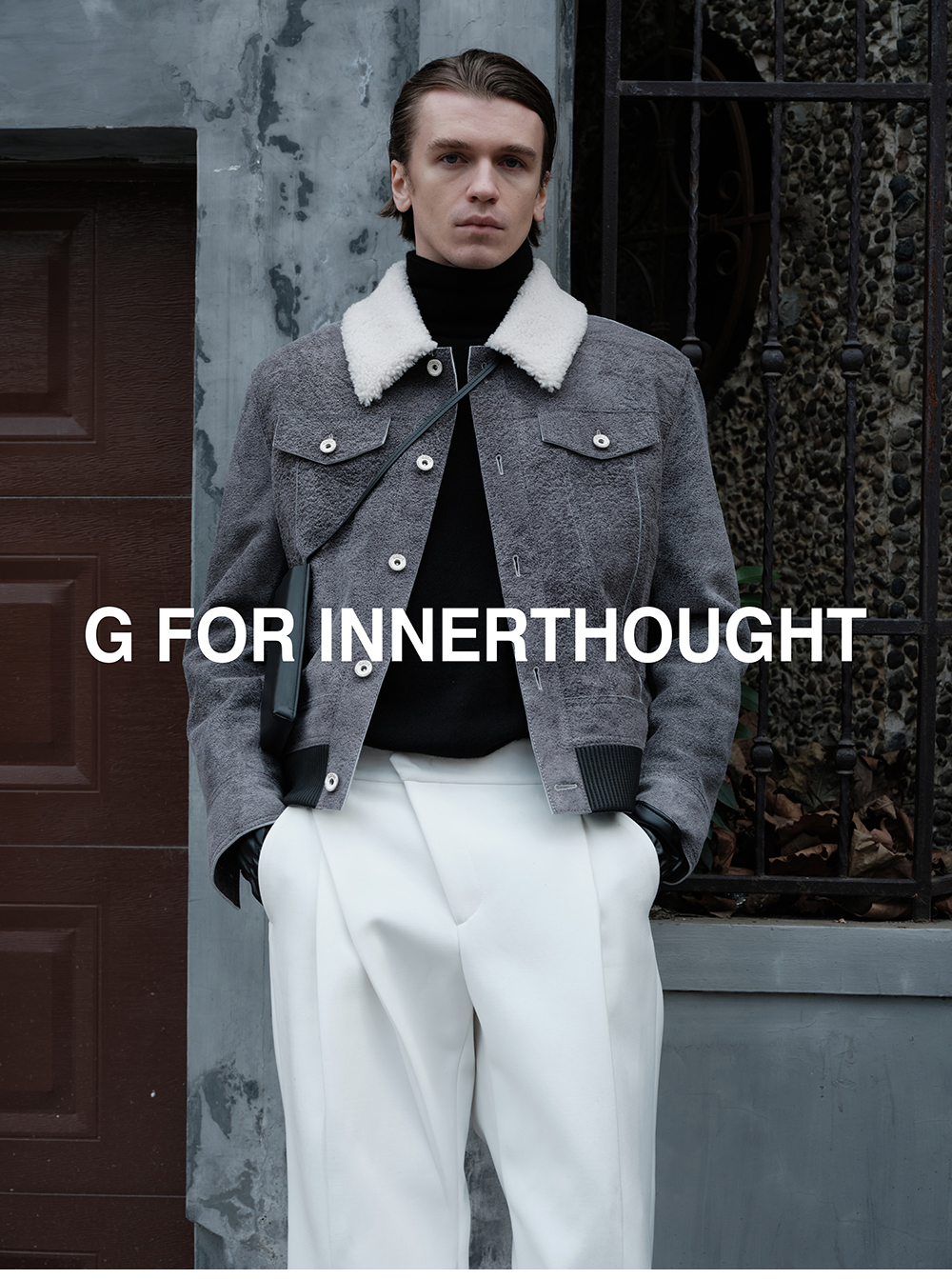 G for Inner Thought | Italian Md Leather Factory Denim Gray Blue Cashmere Leather Camel Hair Jacket for Men