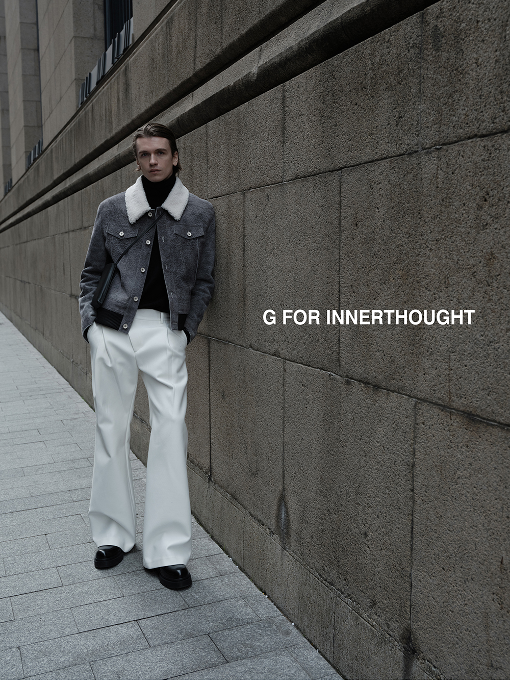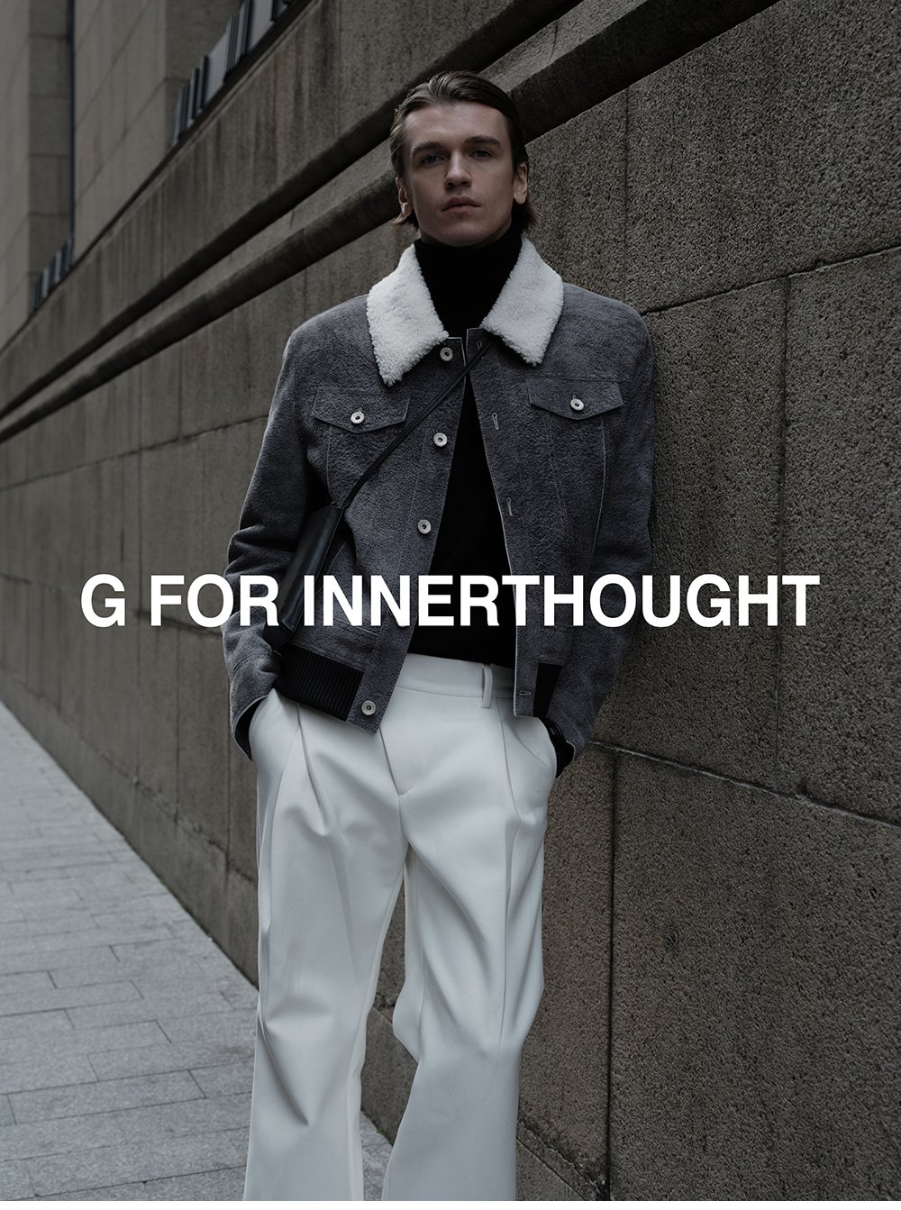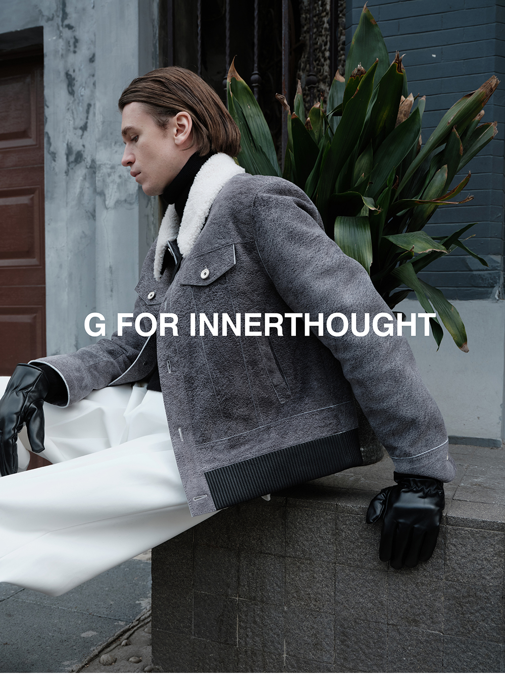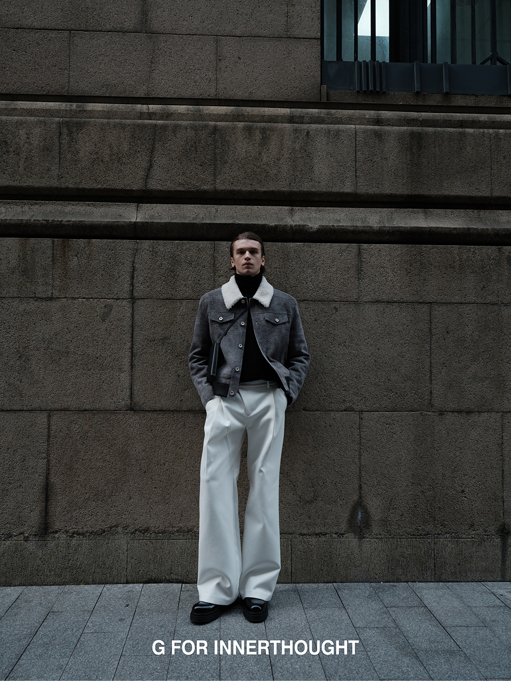 G for Inner Thought | Italian Md Leather Factory Denim Gray Blue Cashmere Leather Camel Hair Jacket for Men