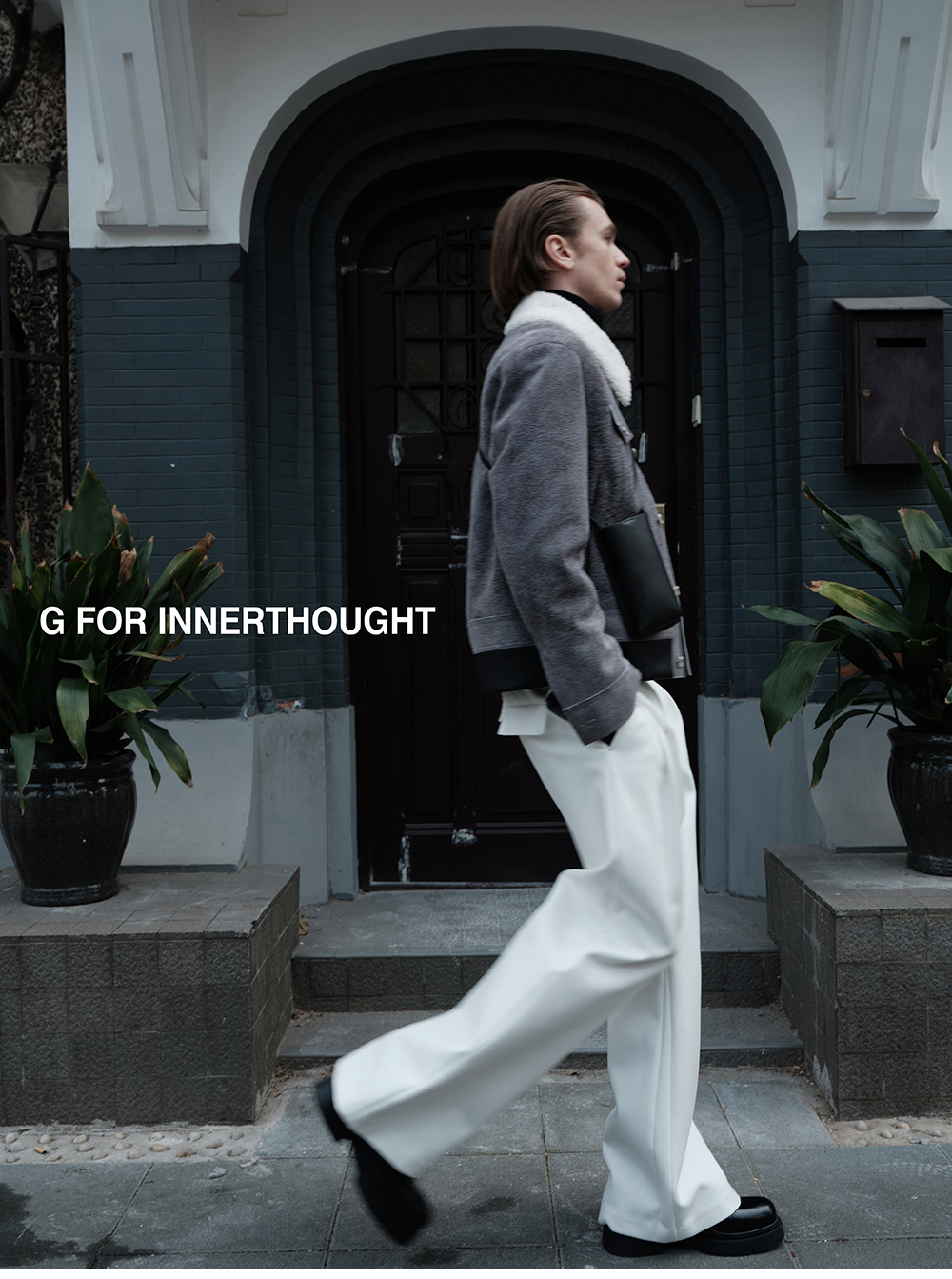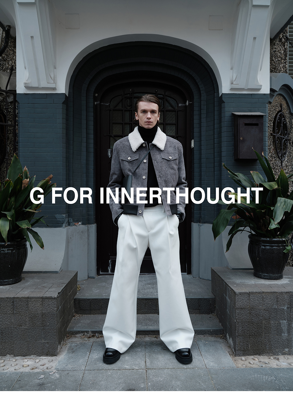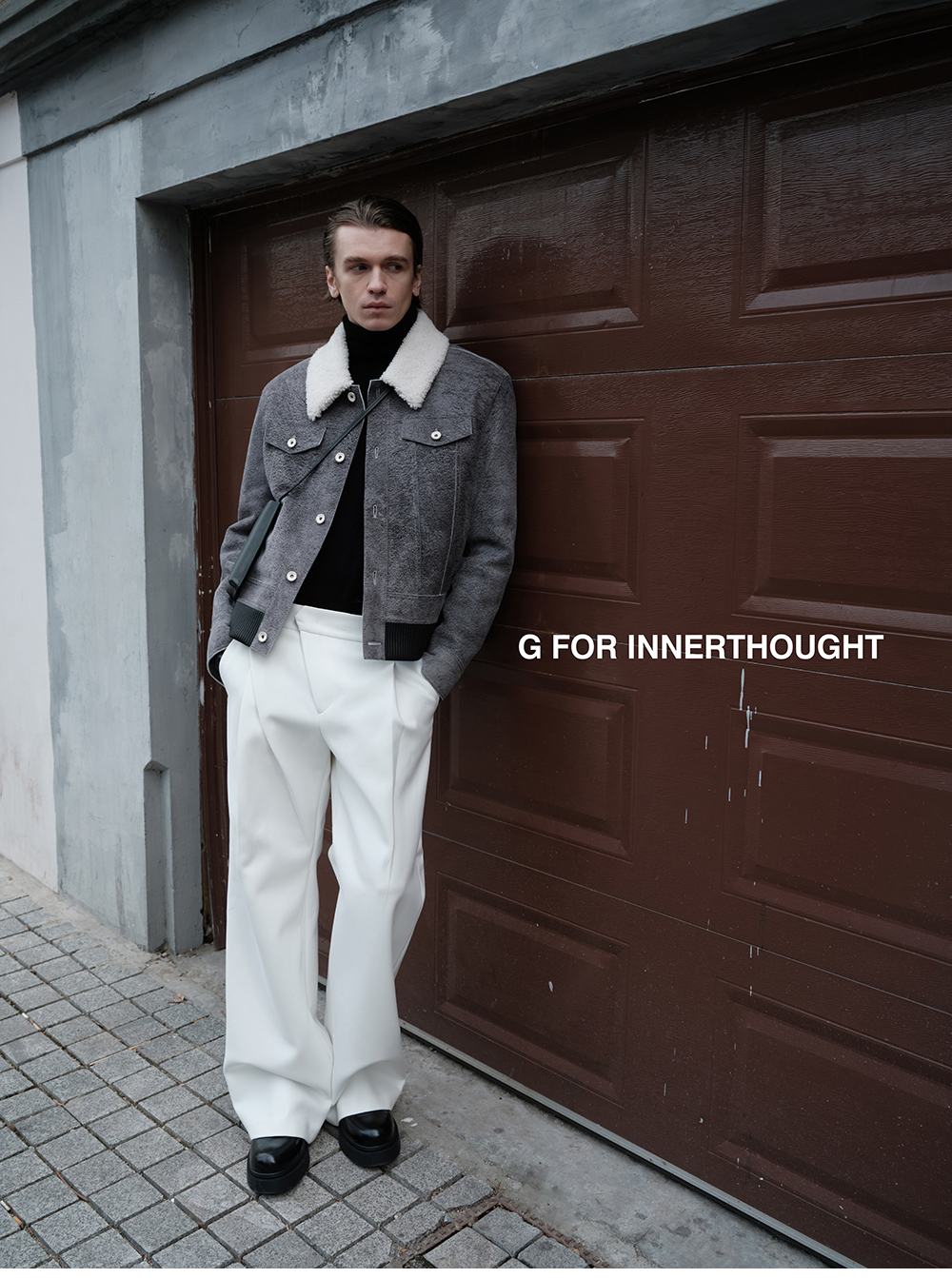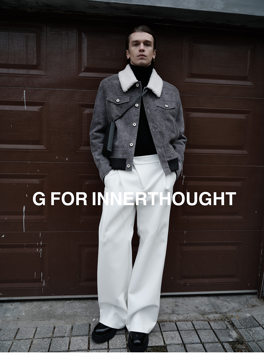 G for Inner Thought | Italian Md Leather Factory Denim Gray Blue Cashmere Leather Camel Hair Jacket for Men