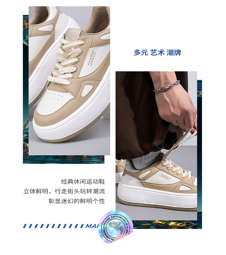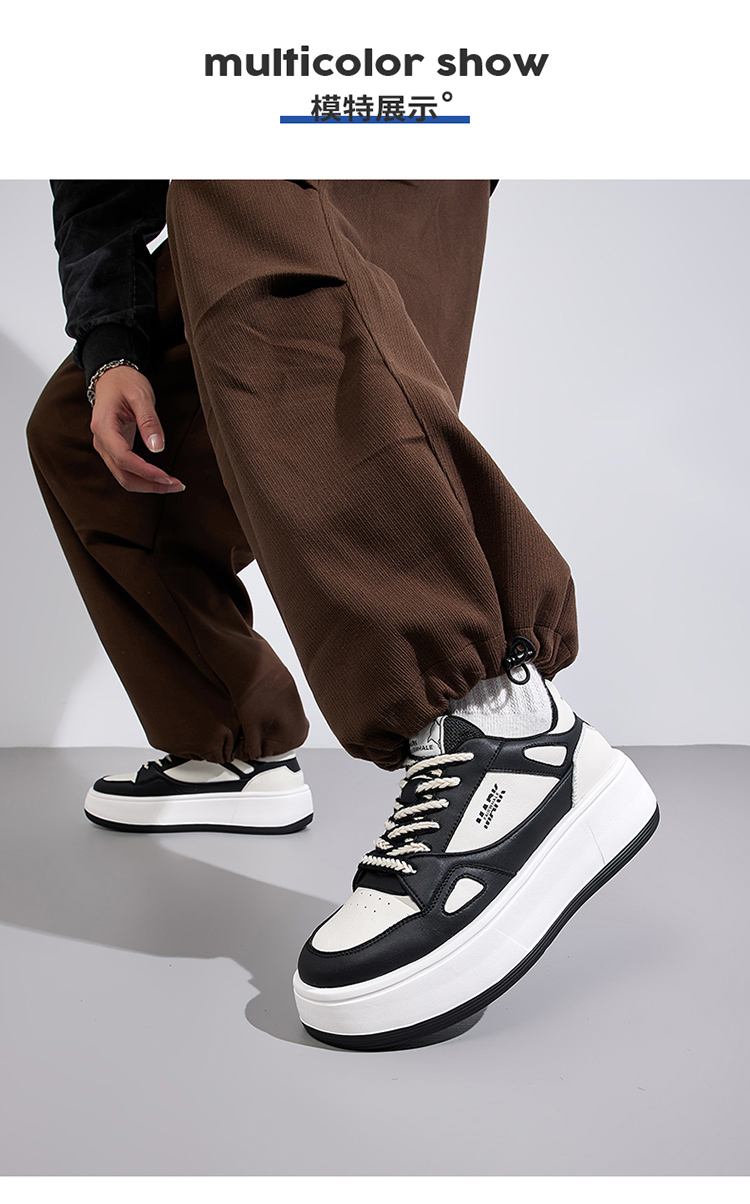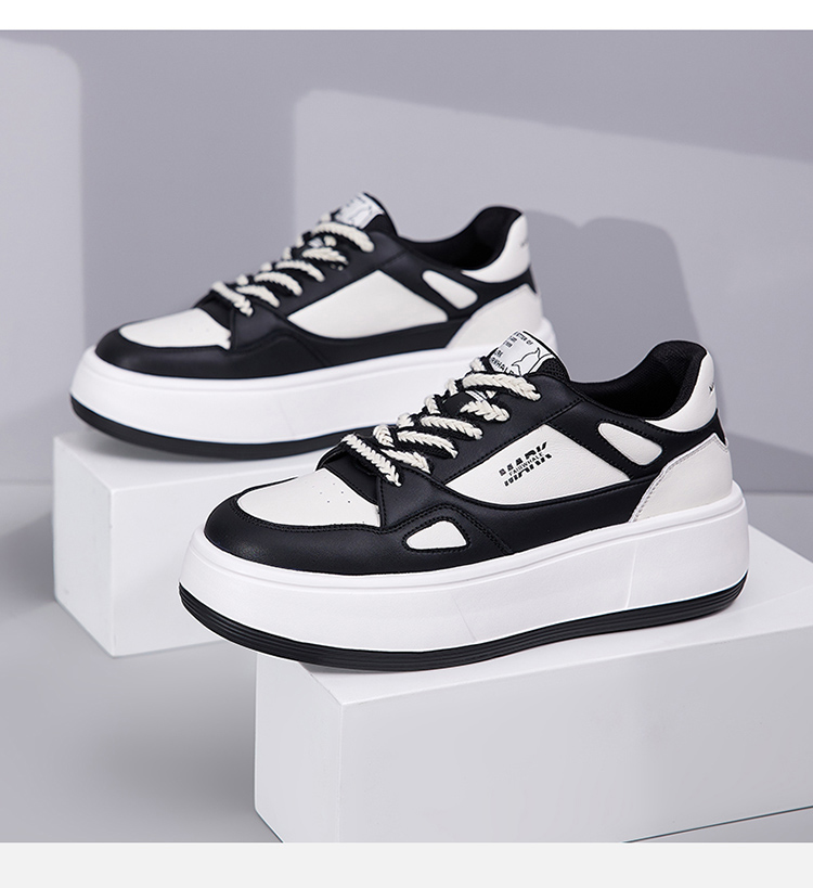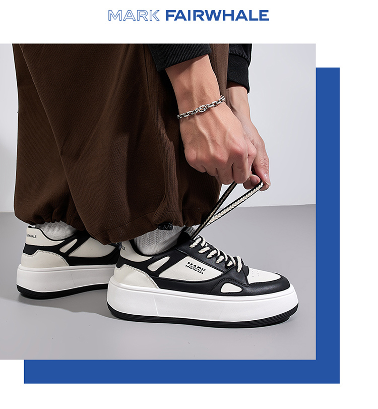 Mark Hua Fei Mall Same Style Genuine Leather Panda Shoes, Fashionable White Sneakers, Thick-Soled Loafers, Men's Sports Sneakers, Trendy